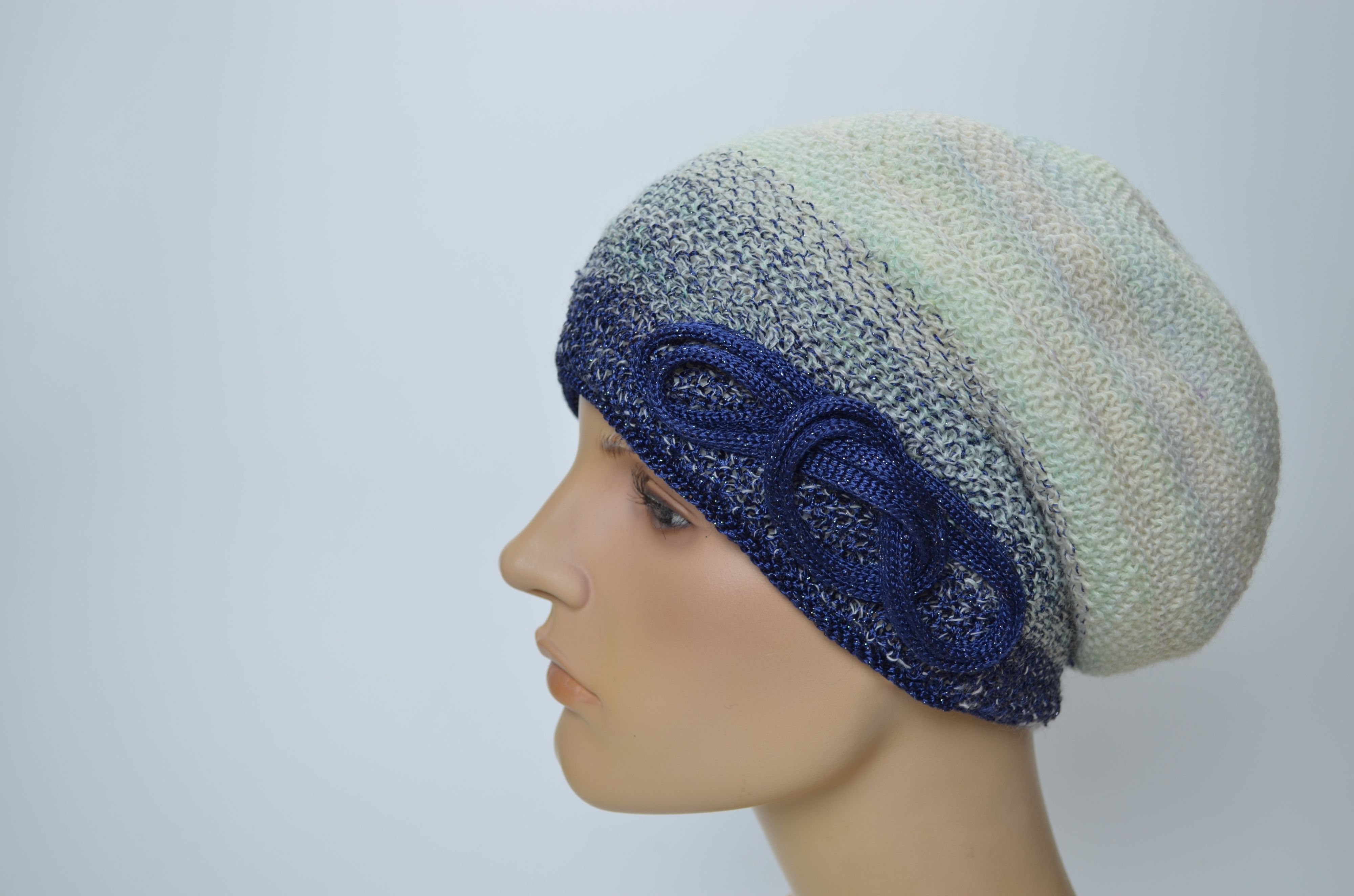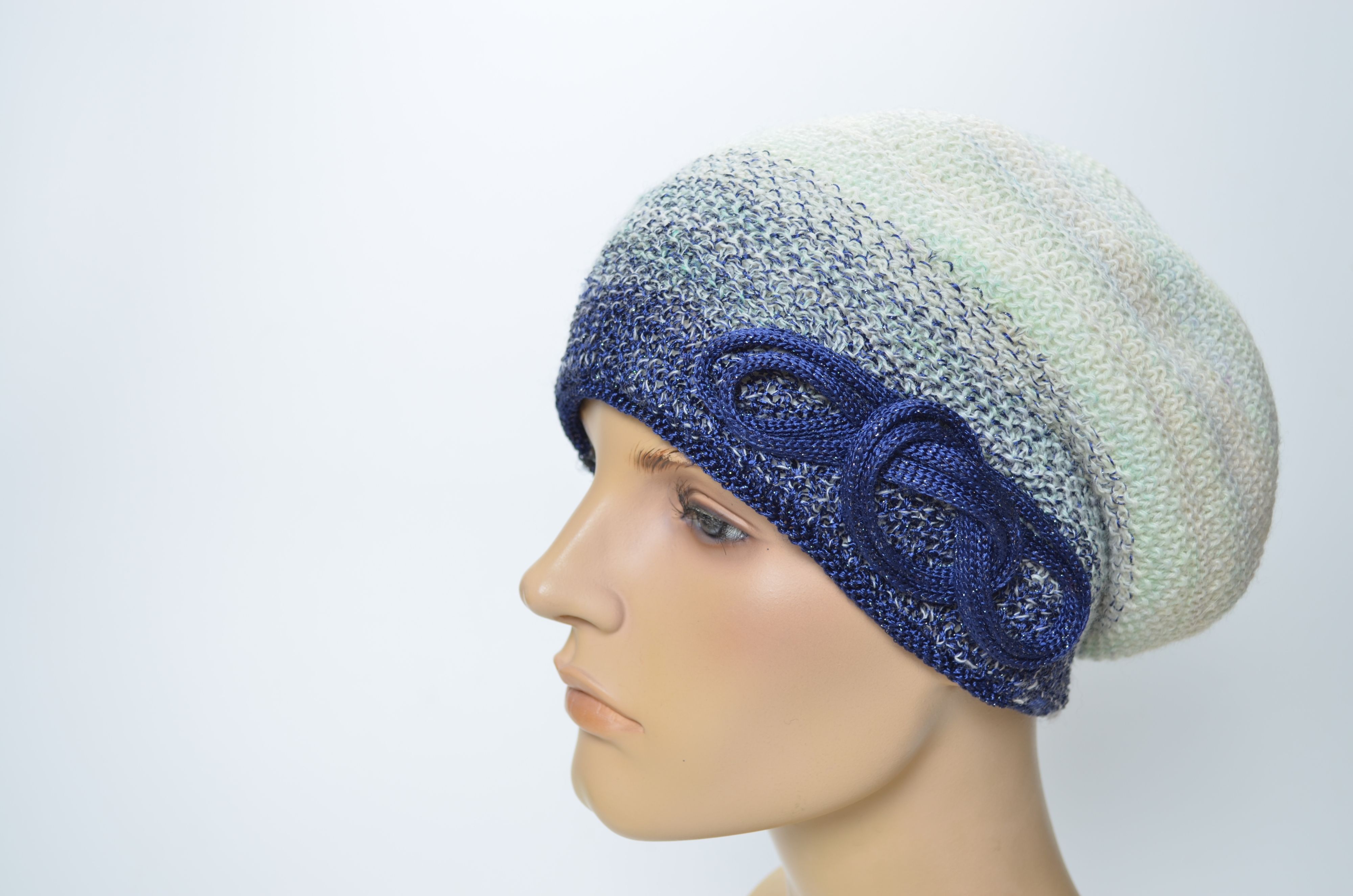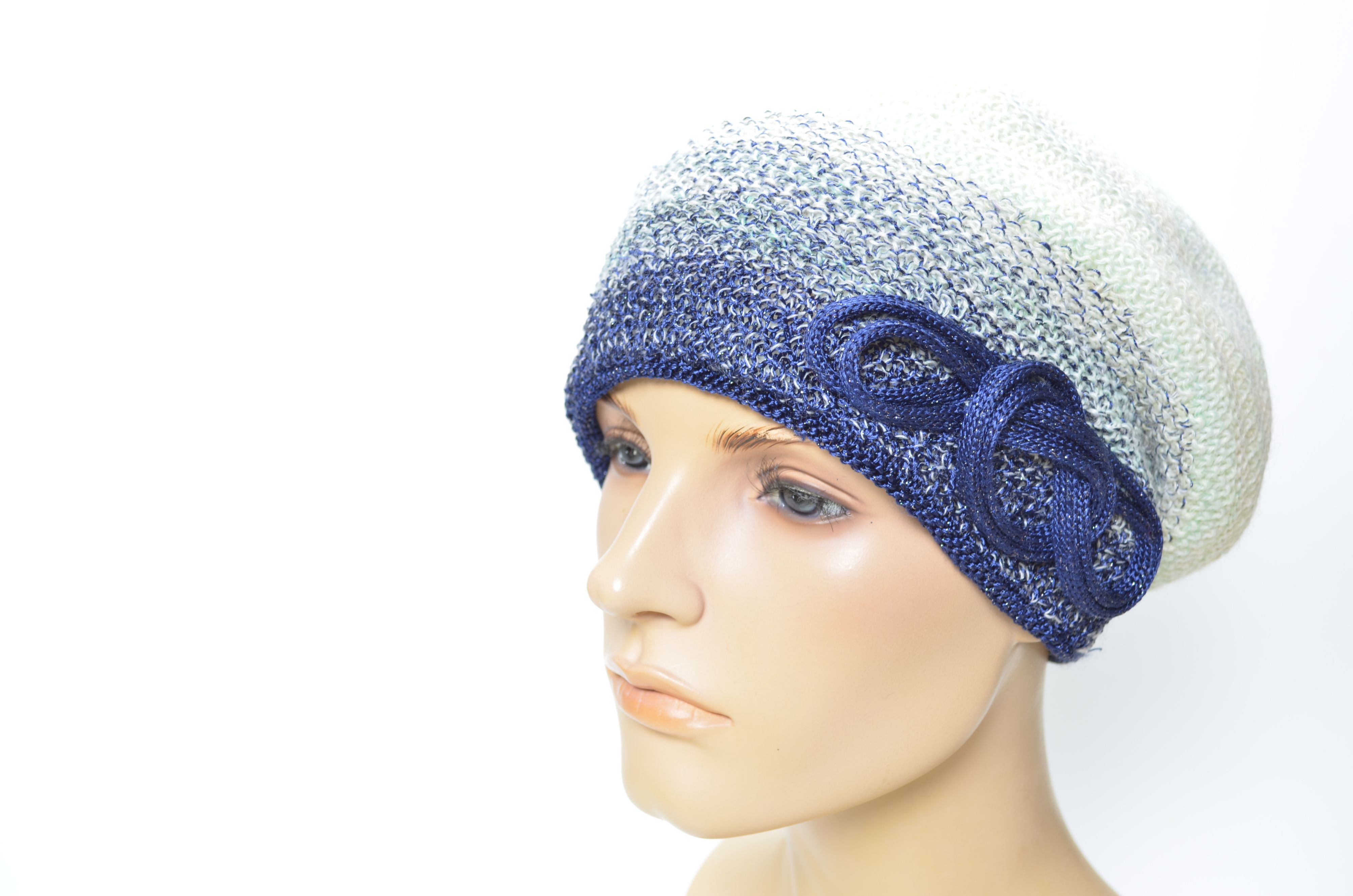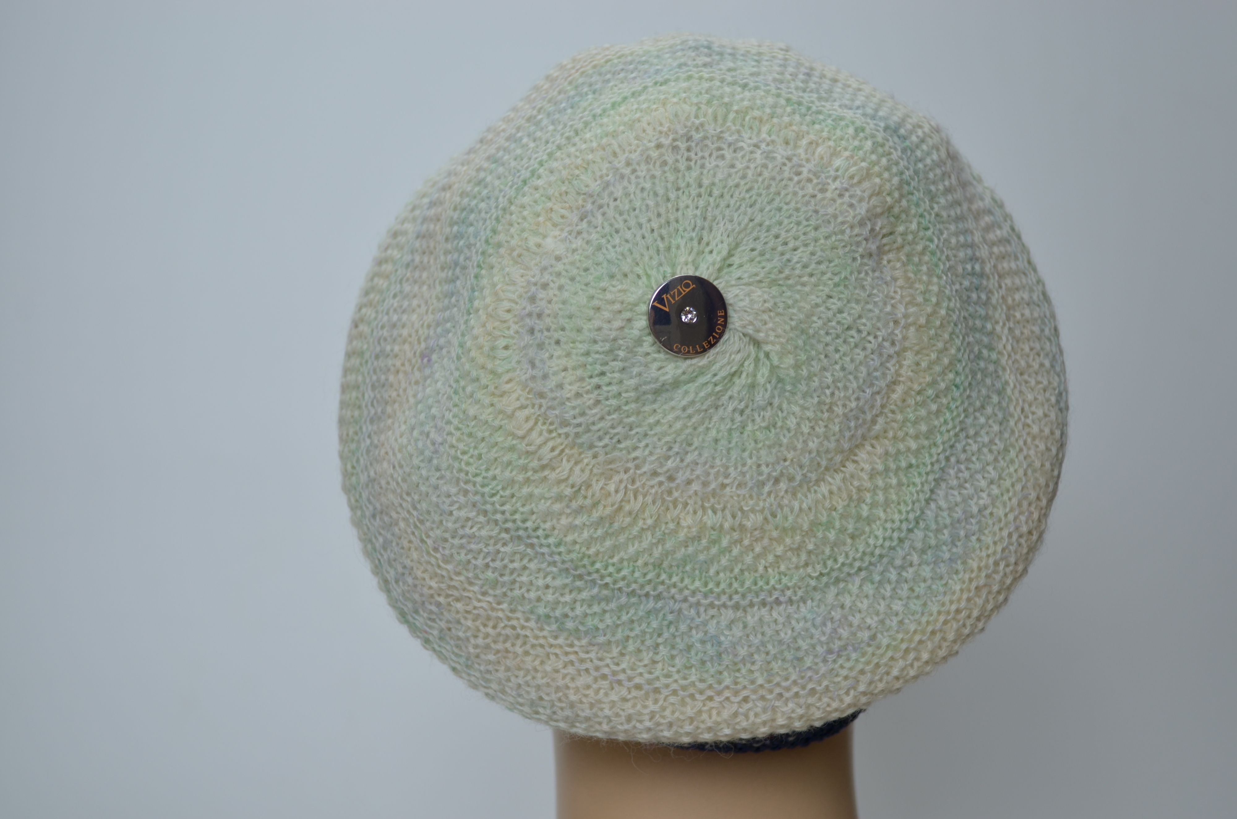 Женский берет с бантом вязаный разноцветный синий с белым Визио 5167 коллекция модных головных уборов Vizio Италия