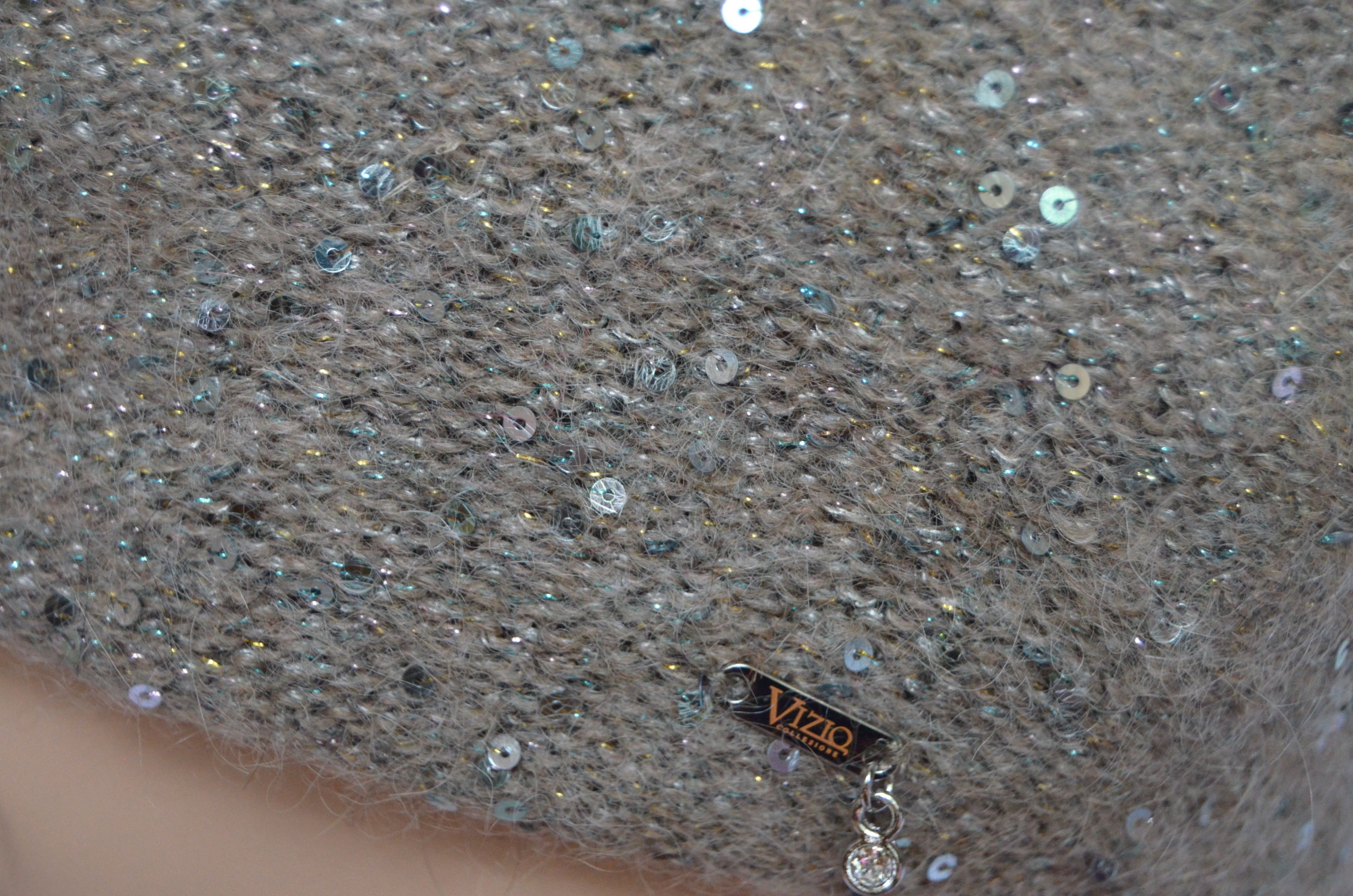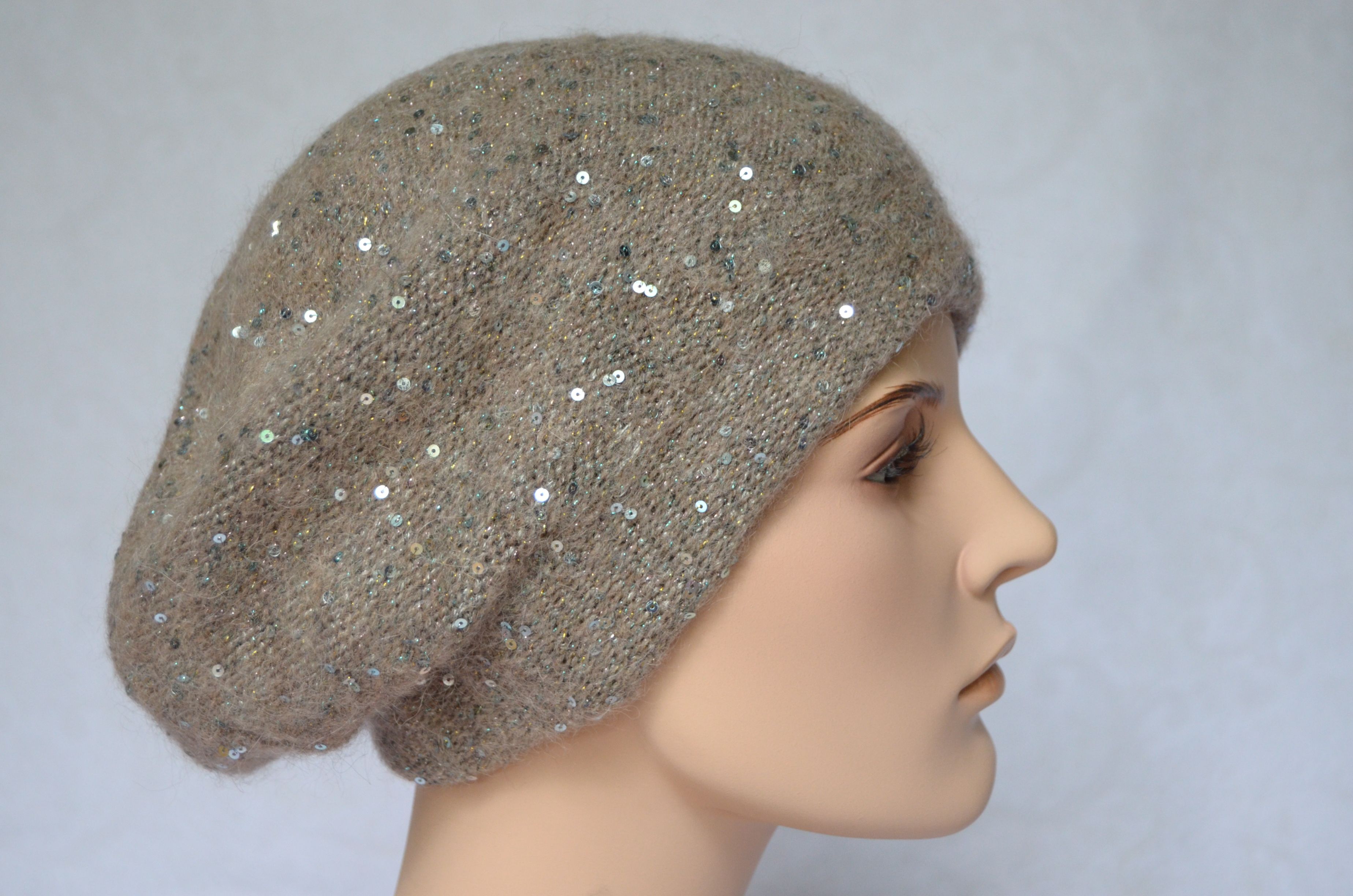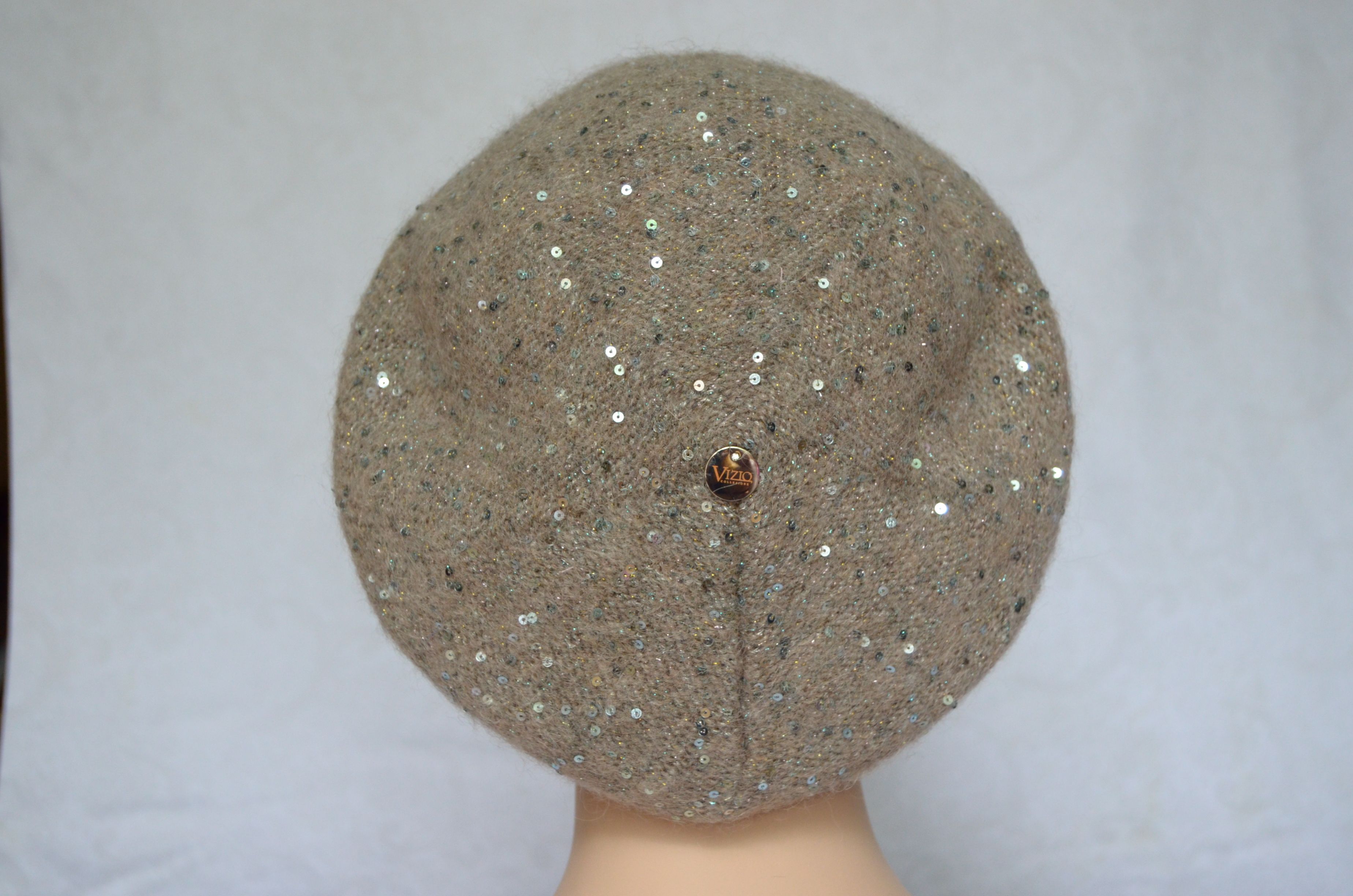 Вязаный ореховый берет с пайетками зимний Vizio Италия 6917 новая коллекция итальянских головных уборов с пайетками осень - зима 2021 - 2022 купить в интернет магазине стильных женских шапок и беретов для женщин