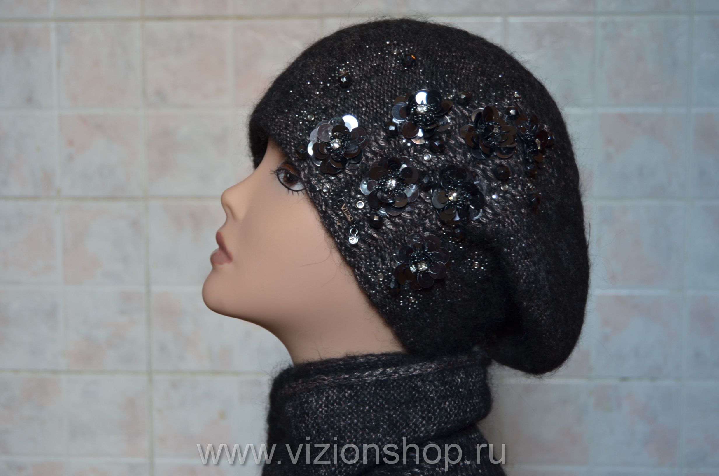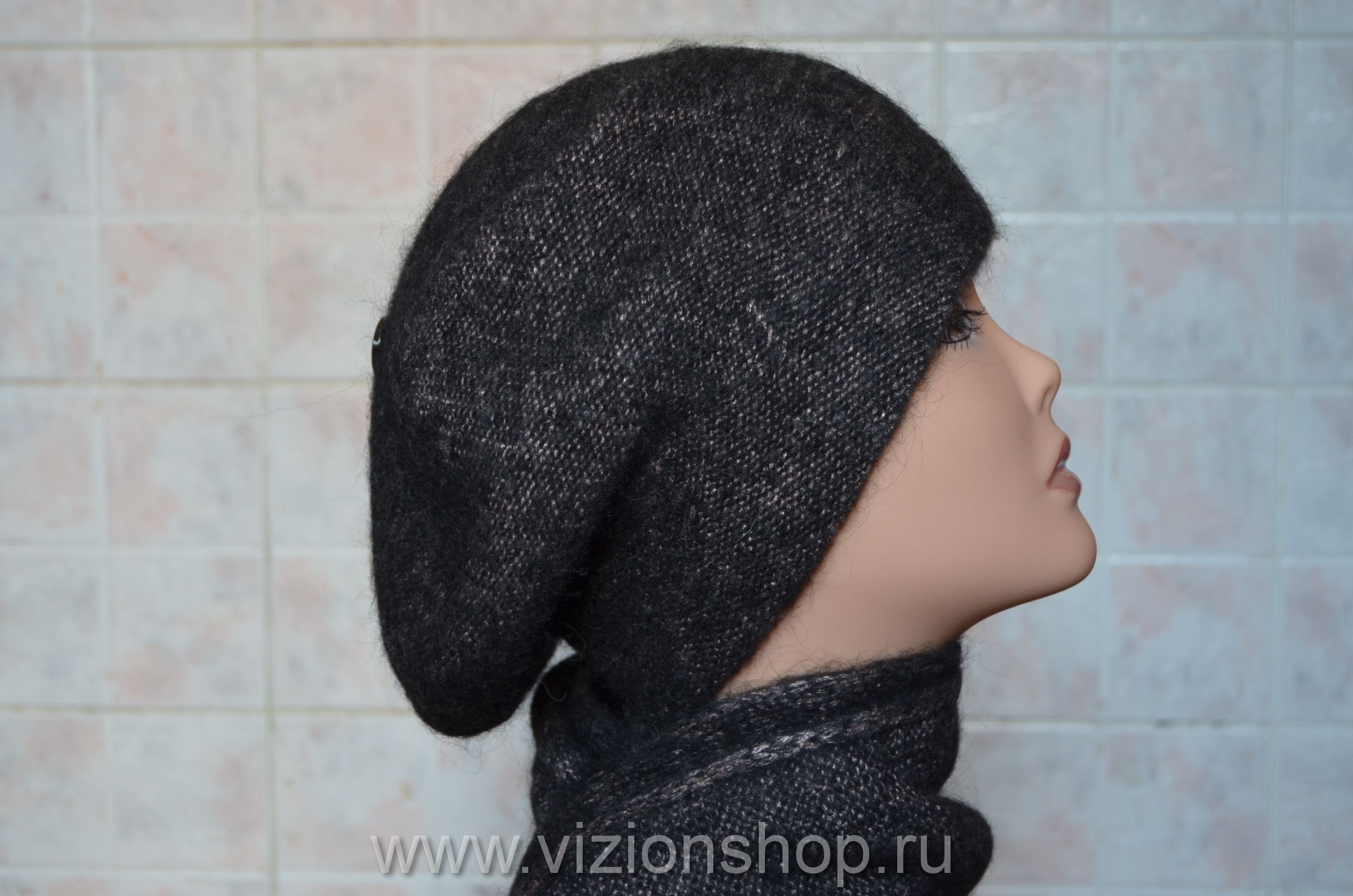 Берет и шарф вязаный комплект для женщин осень - зима 2018 от производителя модных женских беретов и шарфов Vizio Collezione в интернет магазине итальянских головных вязаных уборов для женщин