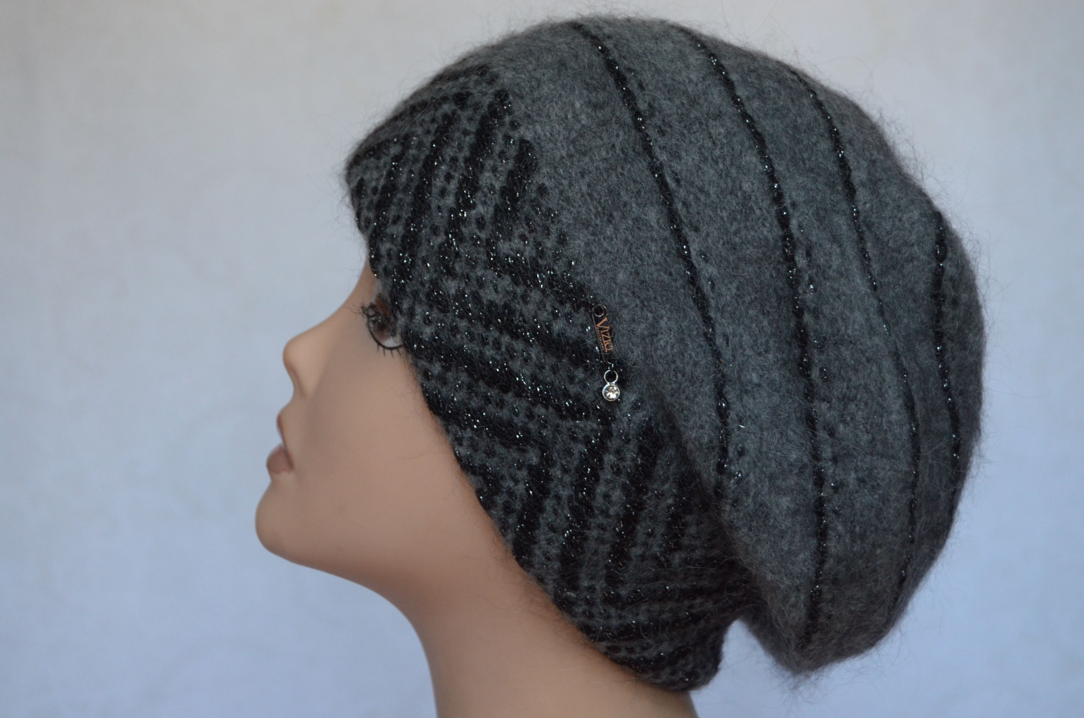 Женский теплый темно - серый берет Италия Vizio 5854 вязаный берет антрацитового цвета из коллекции беретов для женщин осень - зима Vizio Collezione купить в интернет магазине женских головных уборов в Москве и с бесплатной доставкой по России