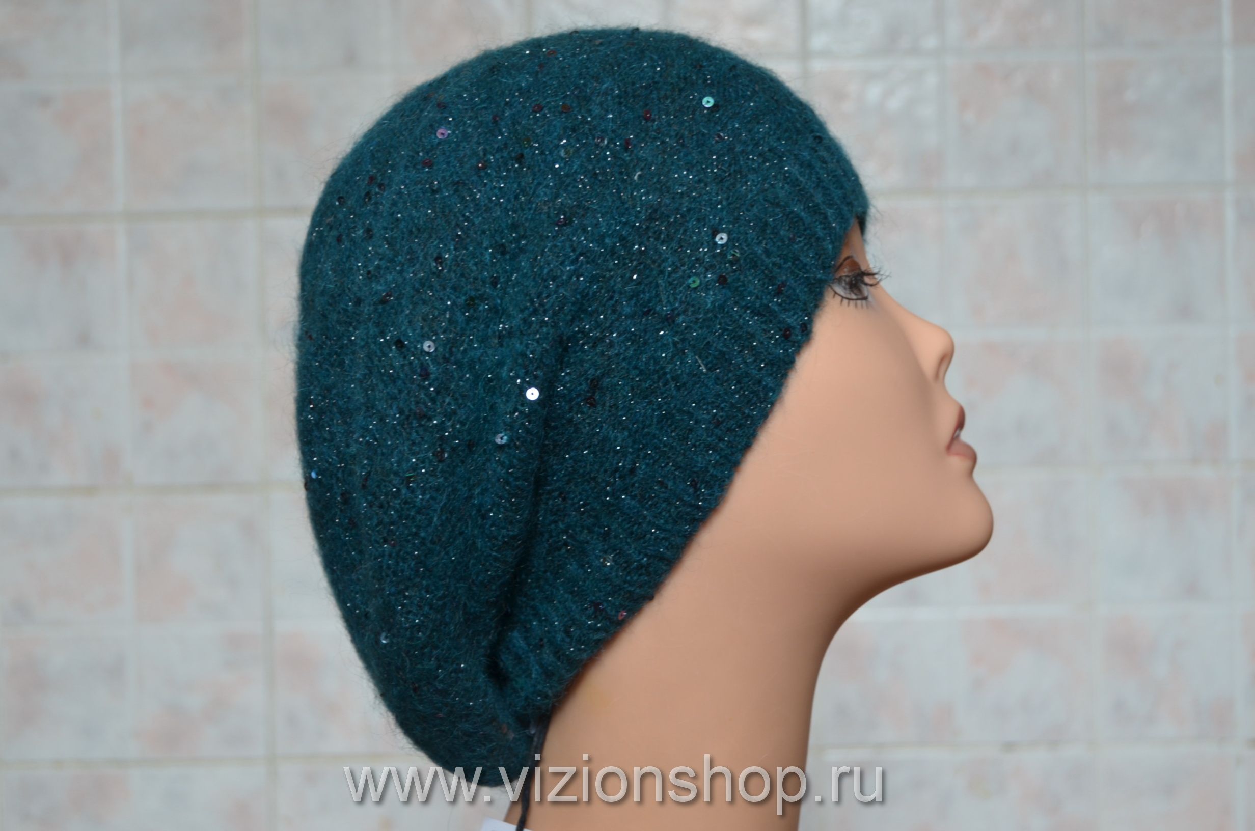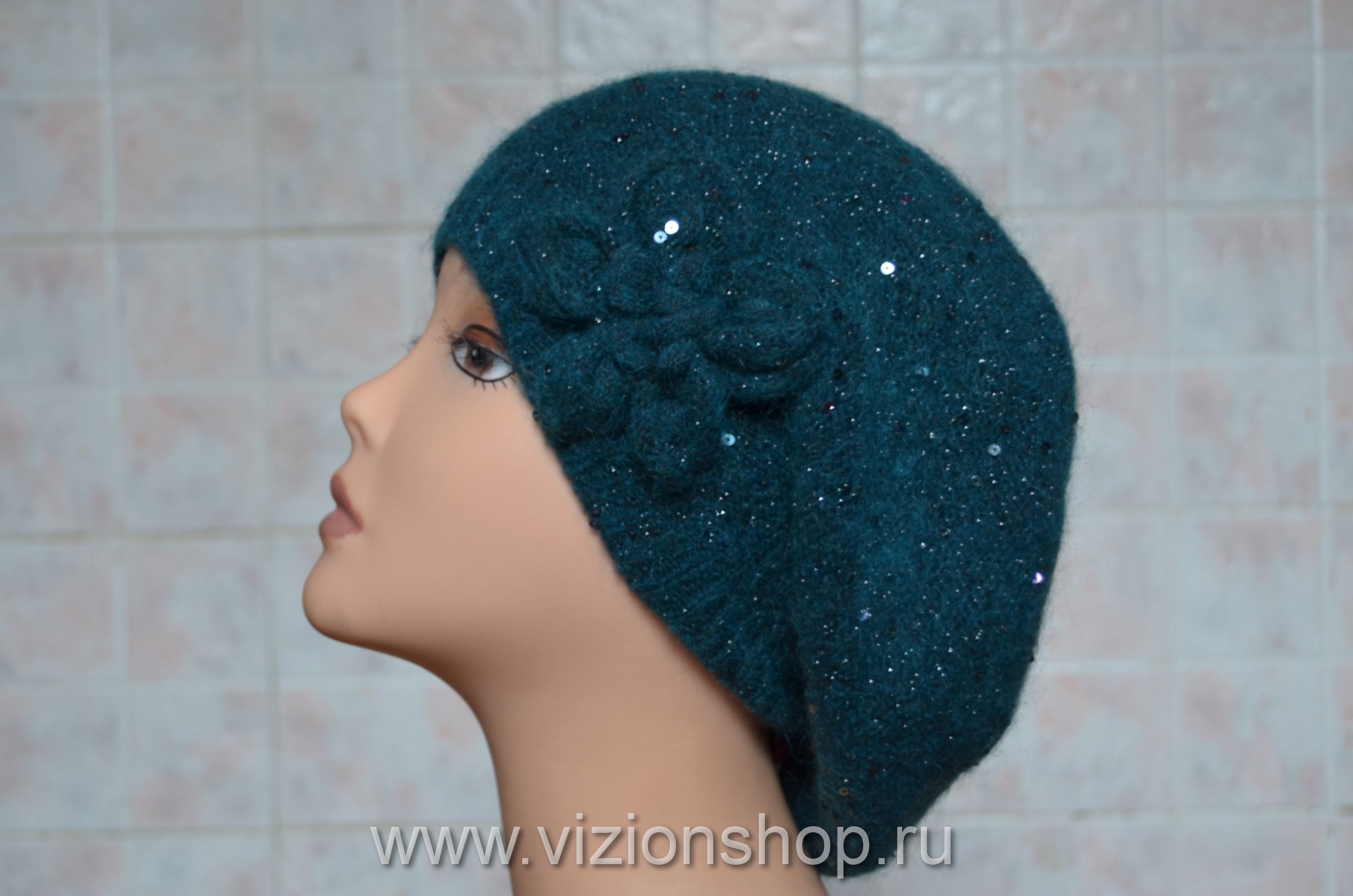 Берет изумрудного цвета тонкий для женщин вязаный 2018 от производителя вязаных женских беретов Vizio Collezione в интернет магазине головных уборов в Москве