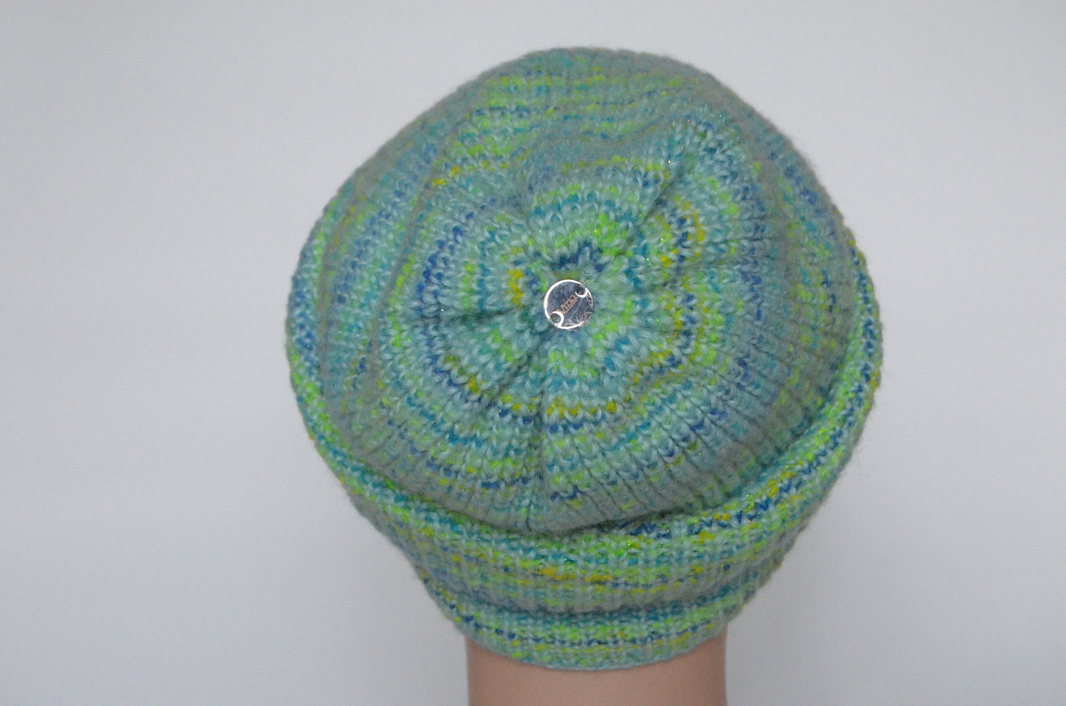 Мятная разноцветная зимняя шапка с вязаным подкладом Визио Италия 6914 в интернет магазине итальянских головных уборов для женщин Vizio Collezione