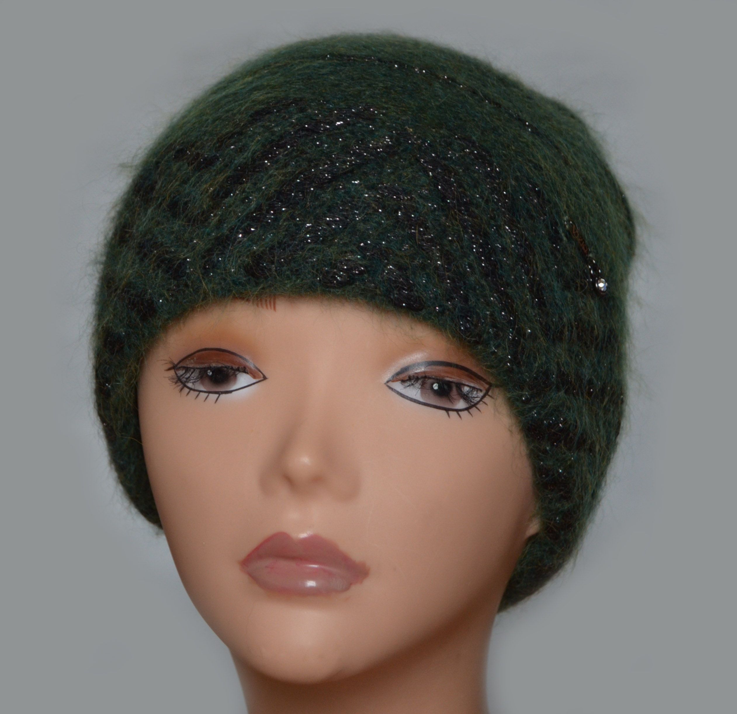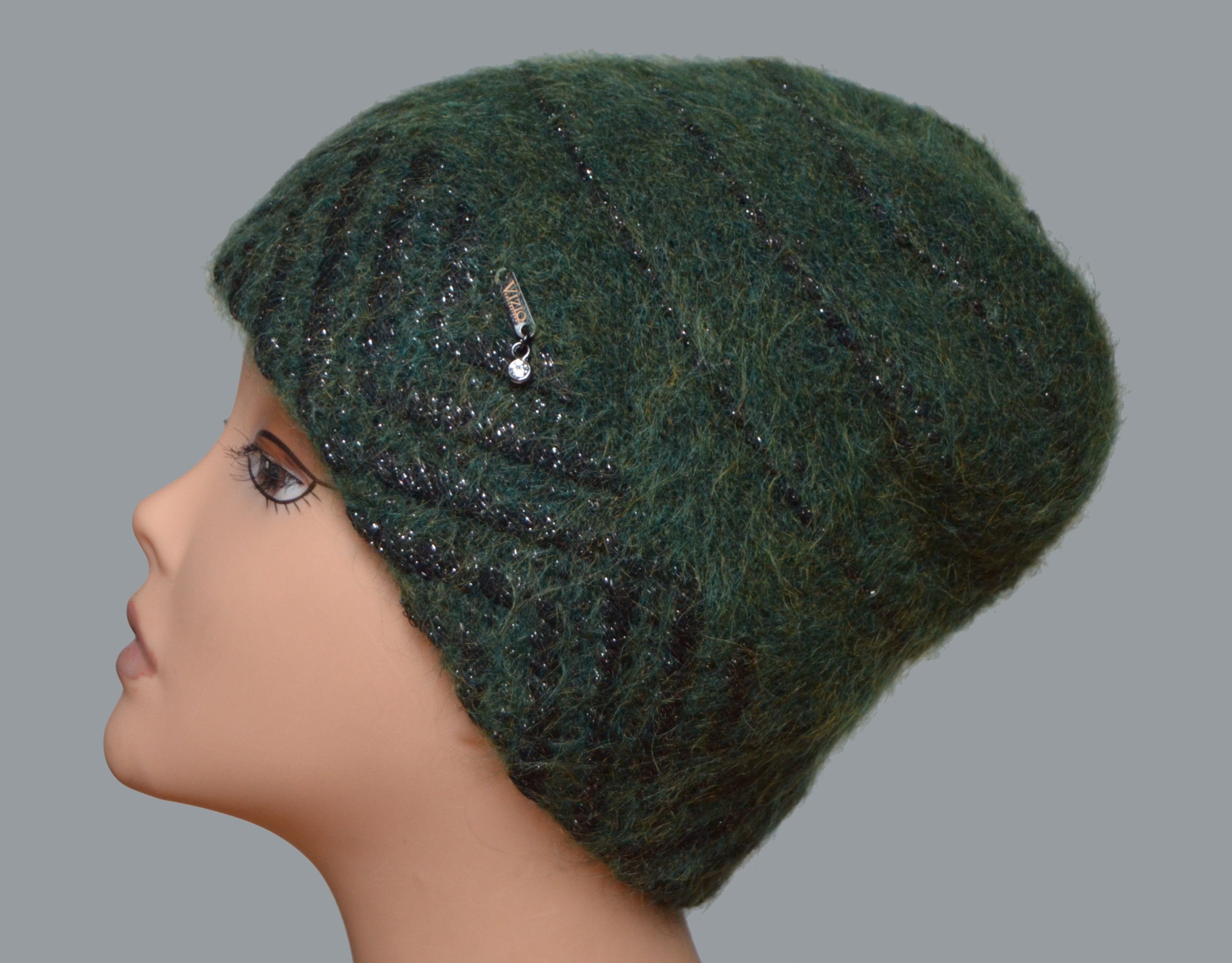 Шапка зеленая Италия Визио 5854 производителя итальянских женских шапок Vizio купить Нижневартовск, Ханты - Мансийск, Сургут, Москва и Россия. Теплая непродуваемая зимняя шапка для женщин с вязаной подкладкой из неалергенной шерсти