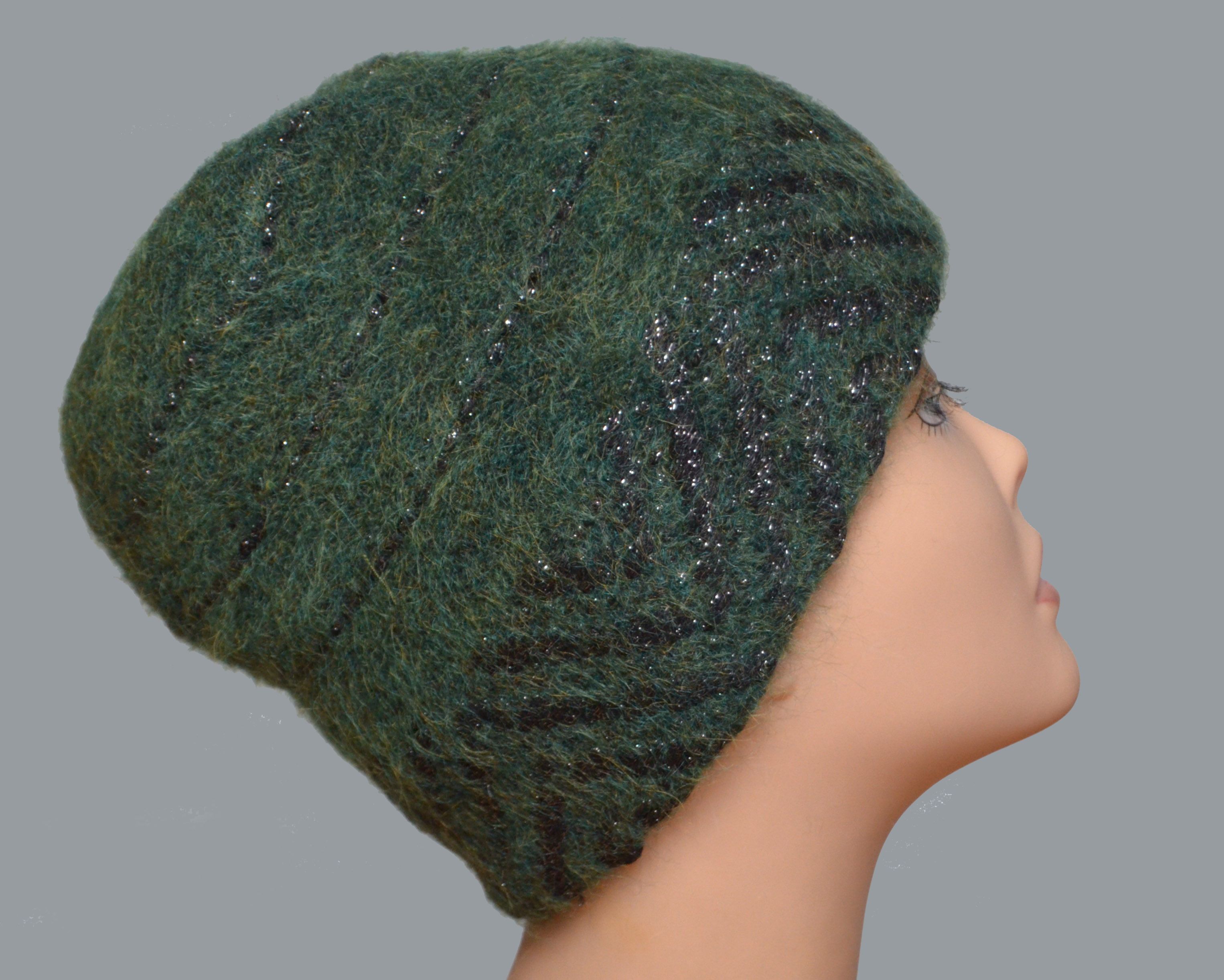 Шапка итальянская зеленая женская зимняя из коллекции шапок Италии для женщин в интернет магазине итальянских вязаных головных уборов в Москве и России