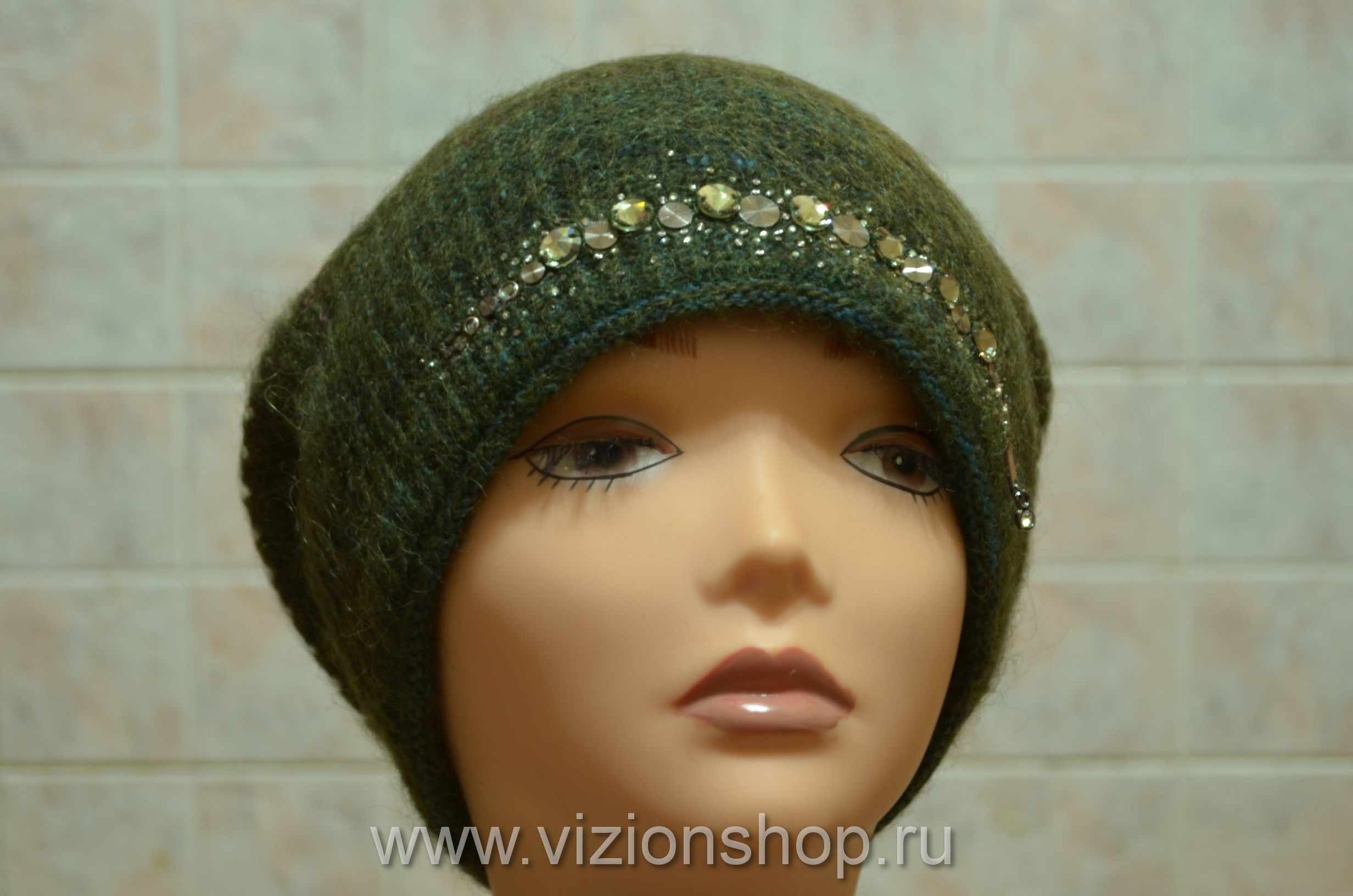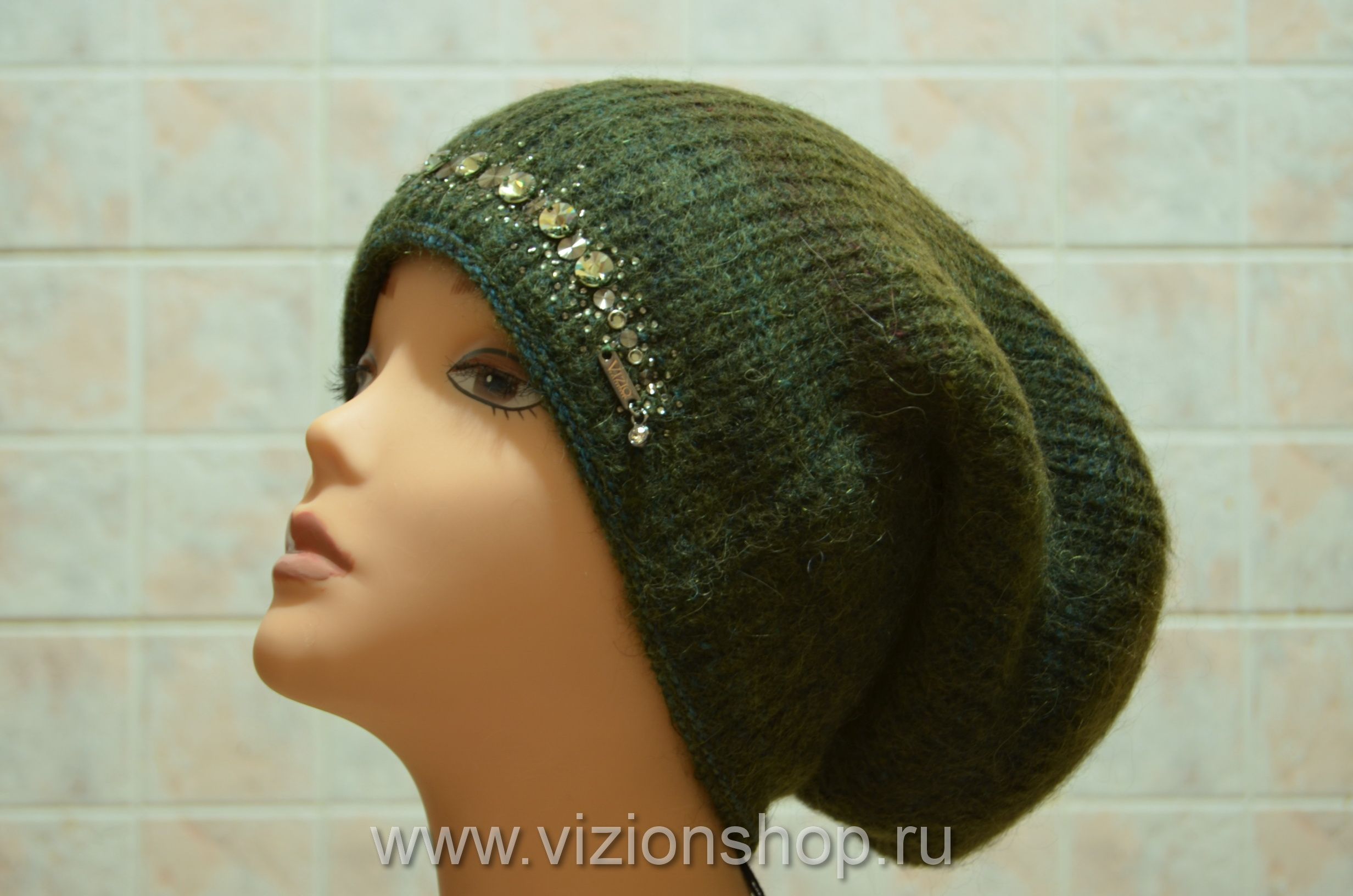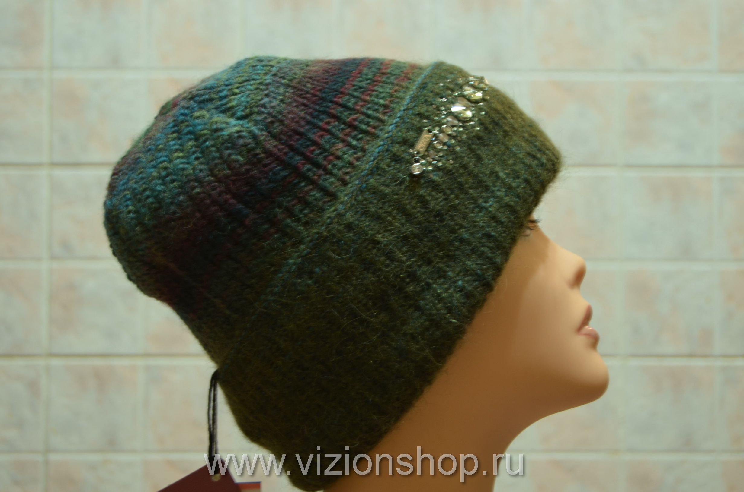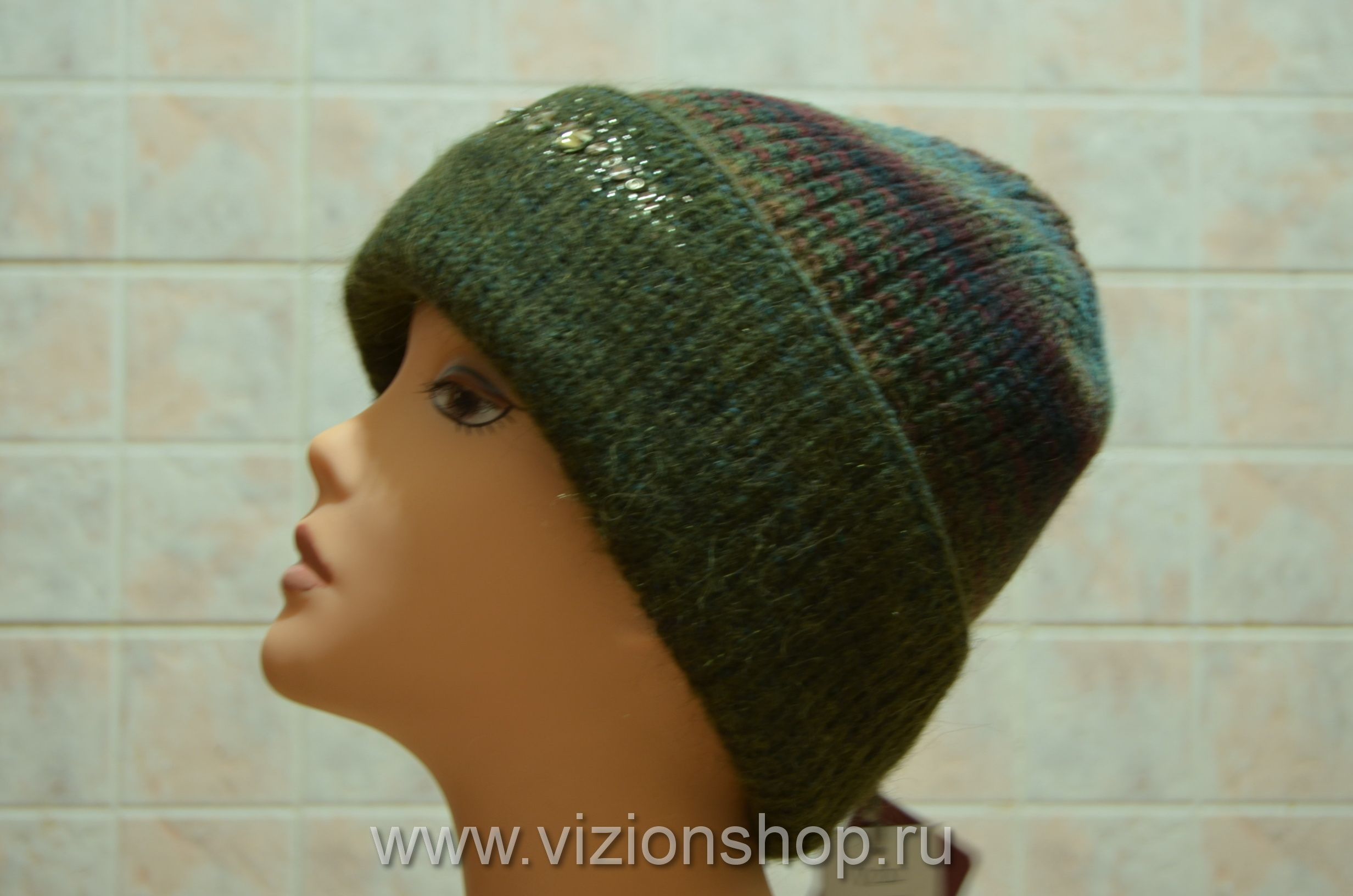 Зеленая женская шапка зимняя чулок Vizio Италия 5872 от производителя шапок Италии Vizio осень - зима