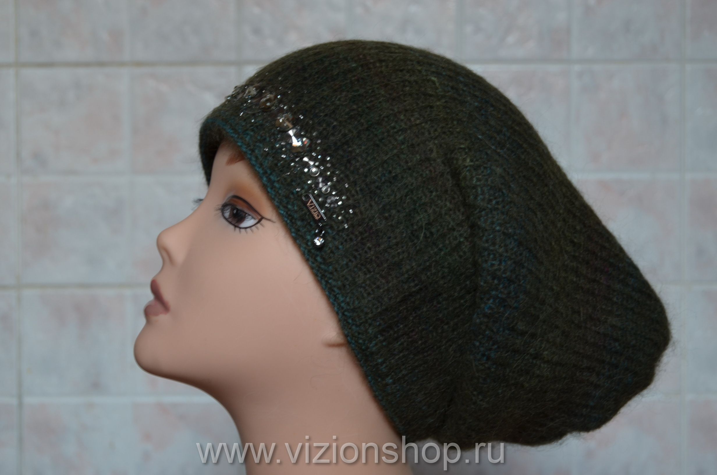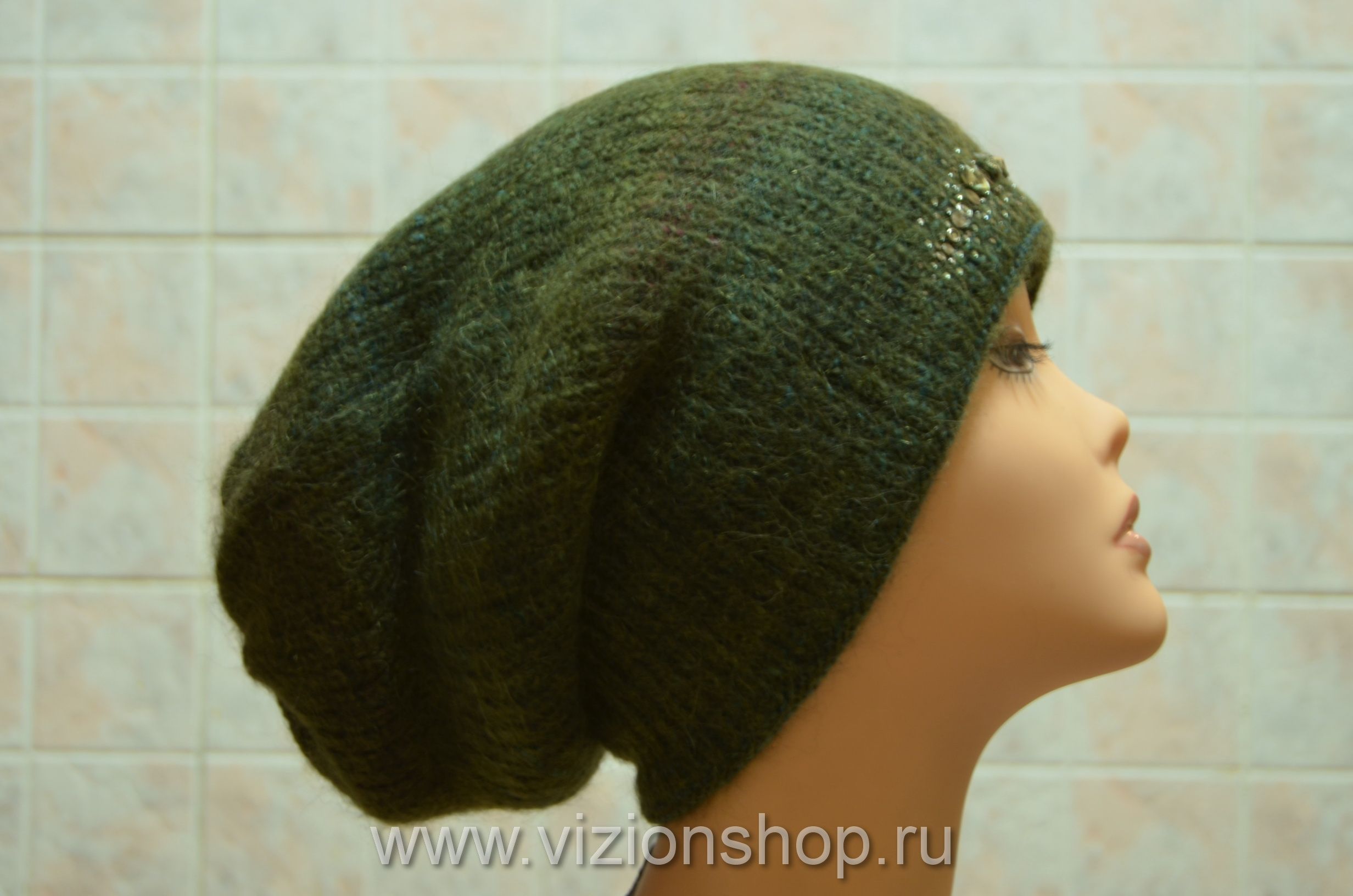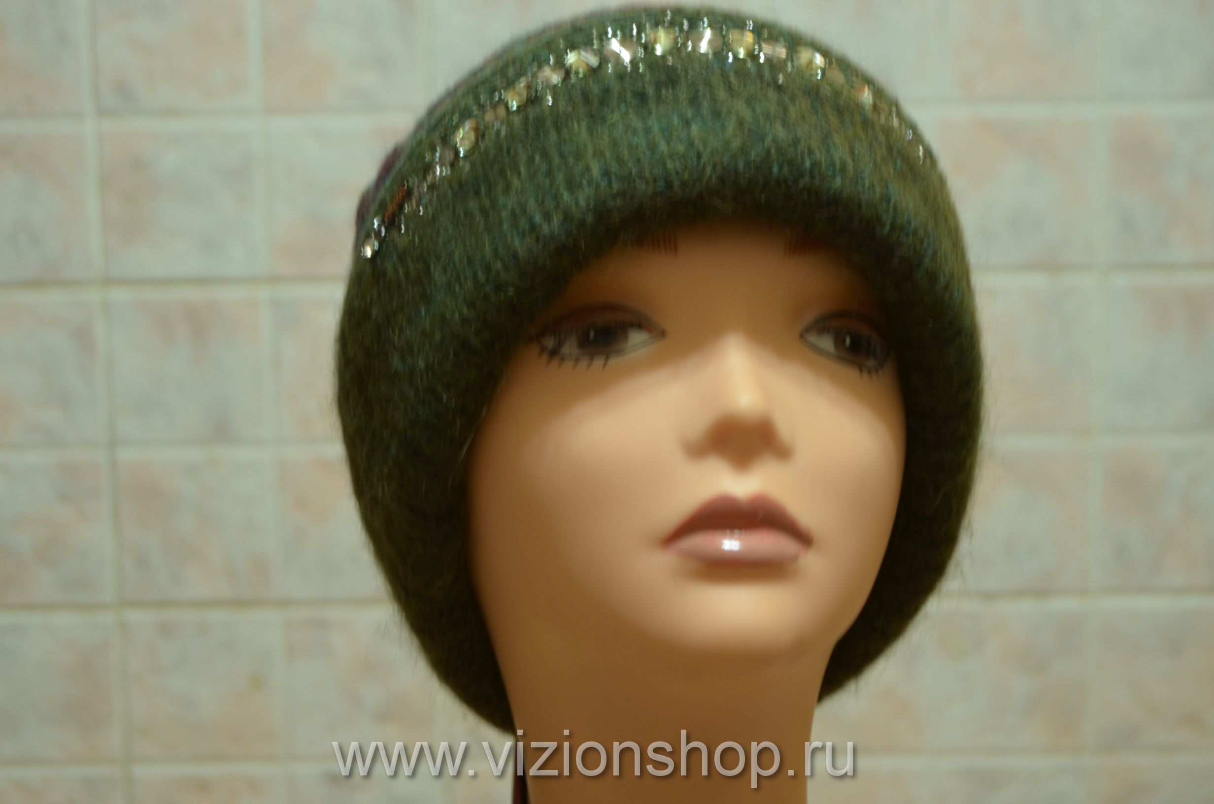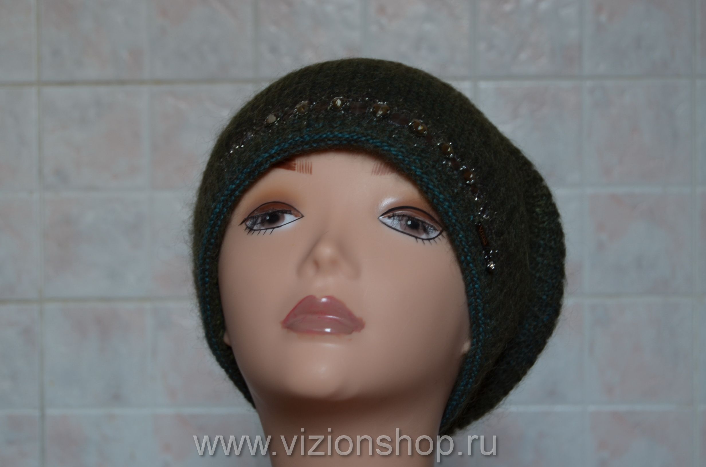 Зеленая женская шапка зимняя чулок Vizio Италия 5872 от производителя шапок Италии Vizio осень - зима