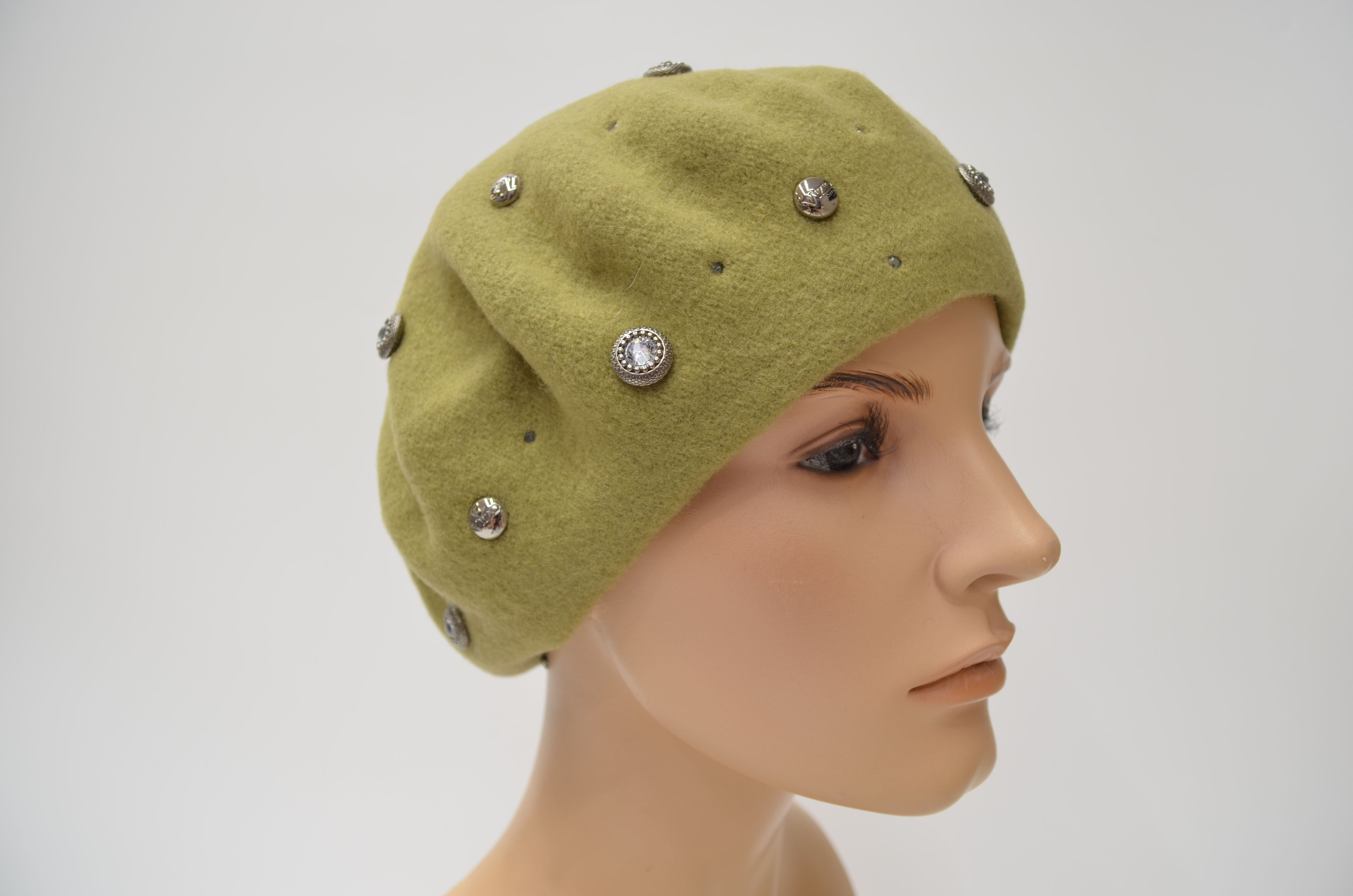 Женский зеленый берет хаки фетровый