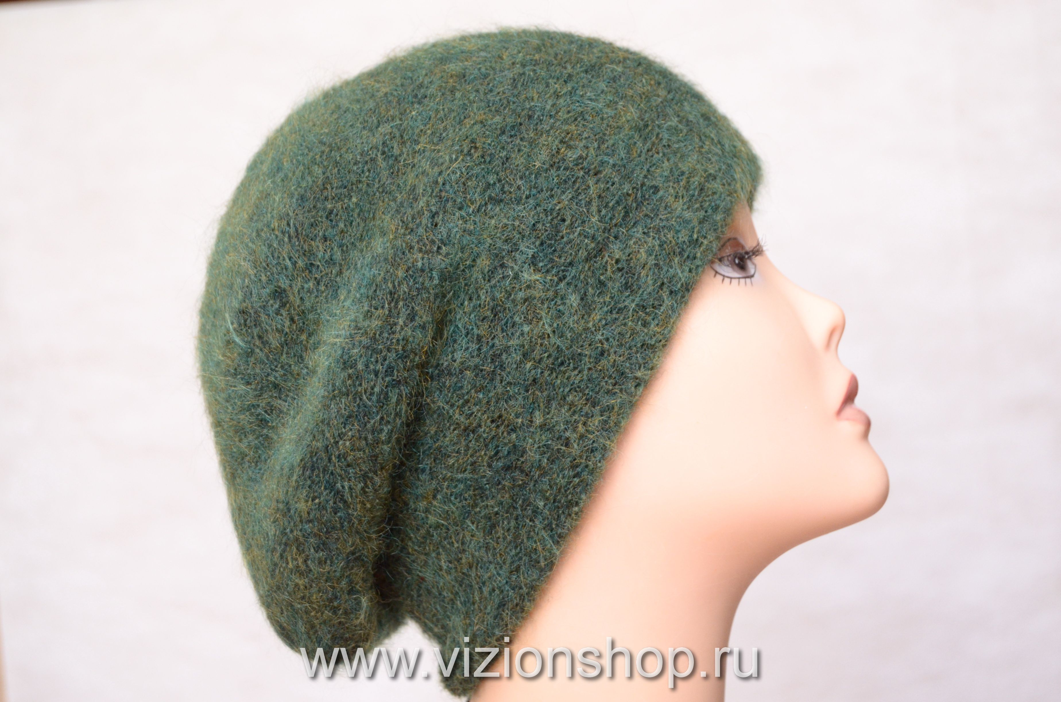 Женский берет зеленый из мохера зима 2019 Визио Италия 36187 из коллекции вязаных беретов с пчелками для женщин осень - зима от дизайнера итальянских головных уборов Vizio Collezione