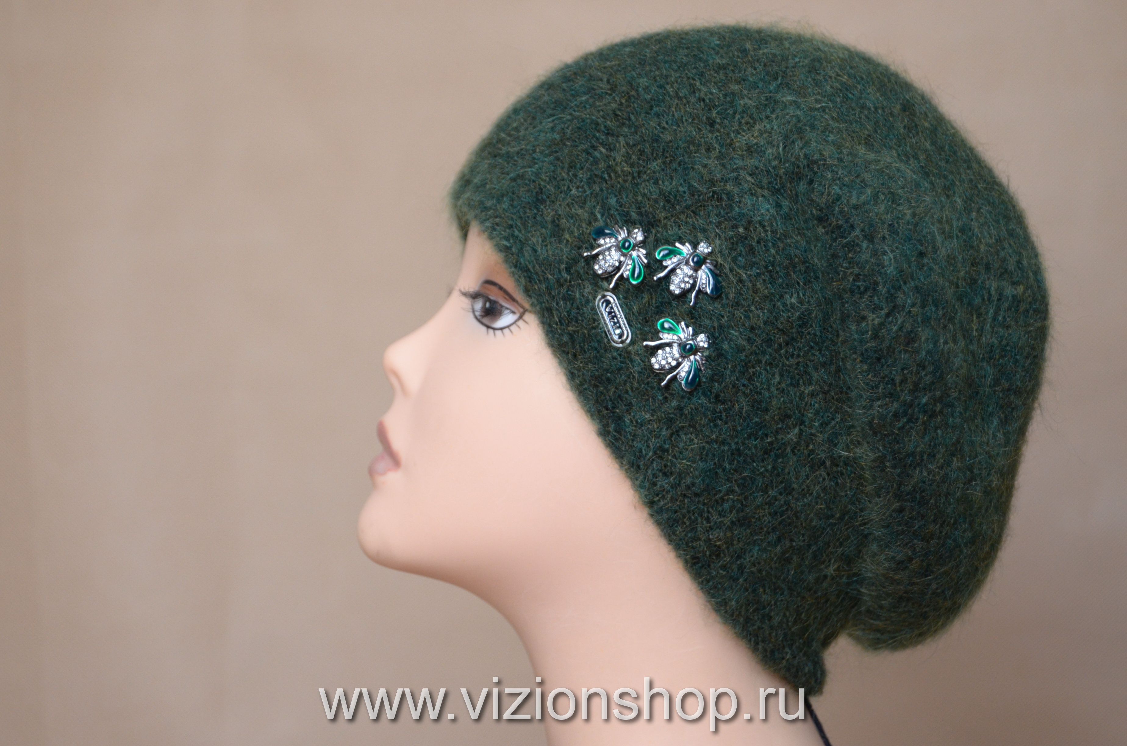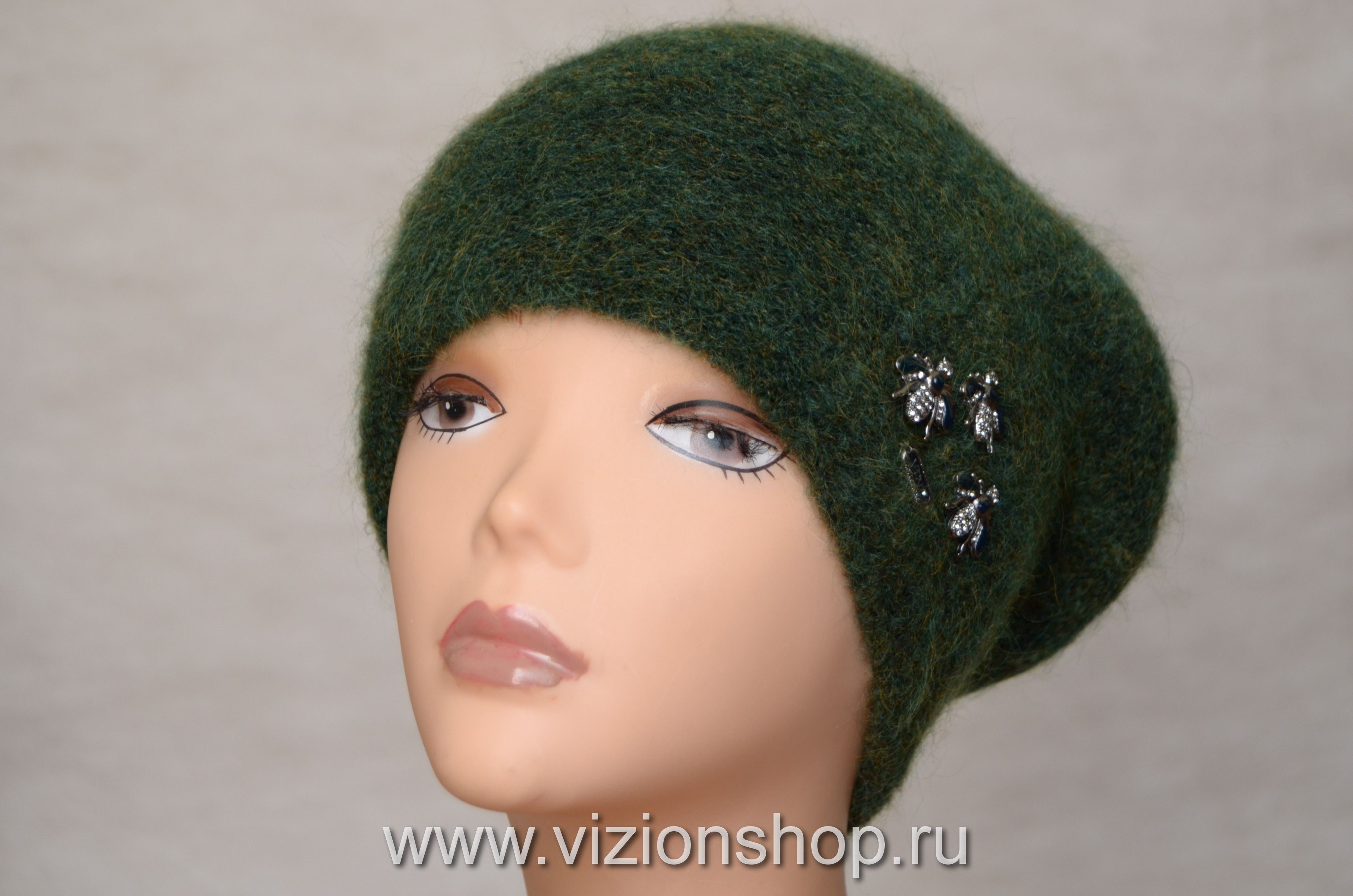 Берет женский зеленый с пчелкой Vizio Италия 6187 зимний вязаный берет купить в интернет магазинеитальянских беретов и шапок