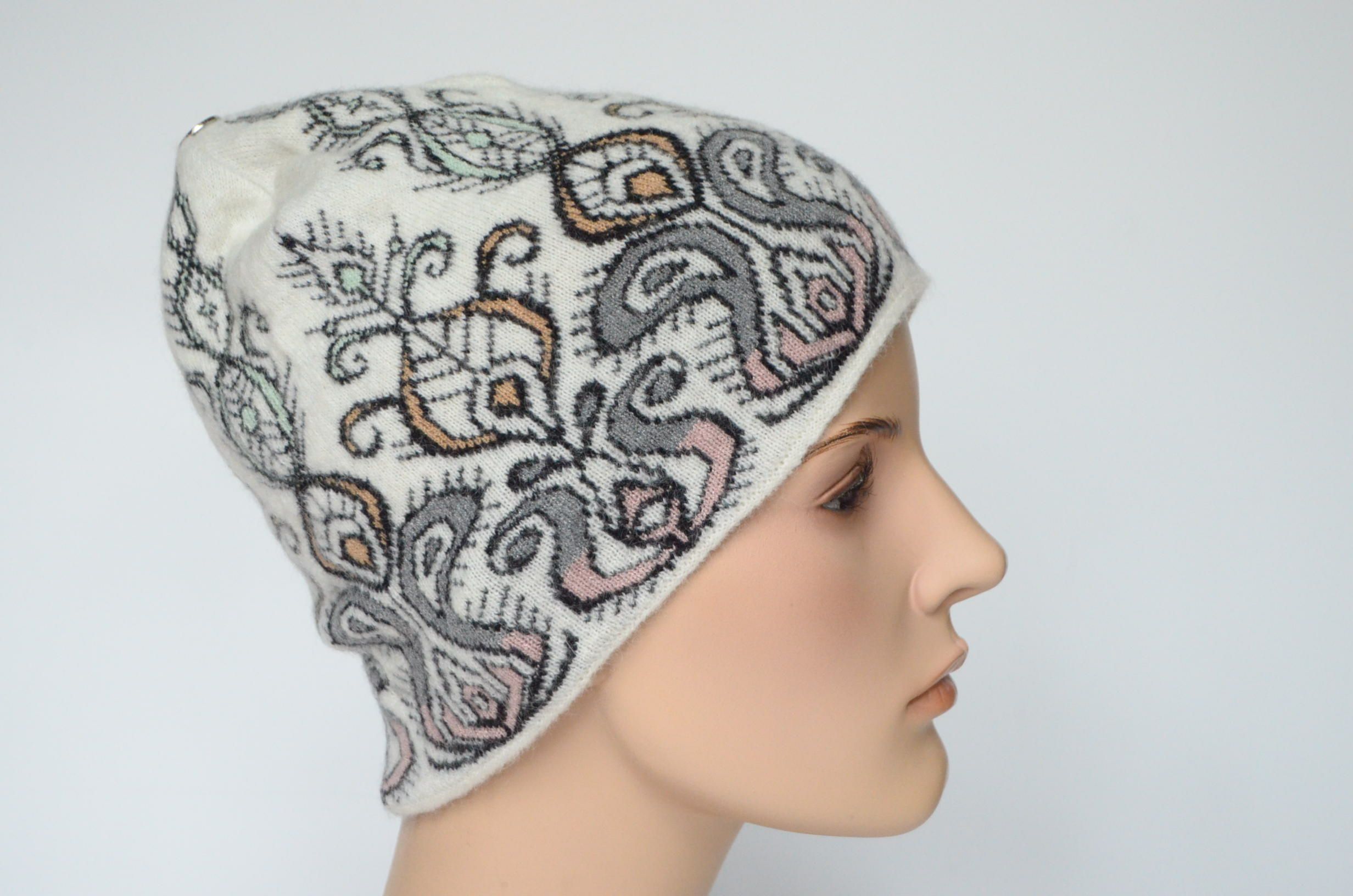 Купить жаккардовую женскую вязаную шапку 2023 - 2024 итальянского дизайнера Vizio Collezione в интернет магазине головных уборов Италии с доставкой по Москве И России