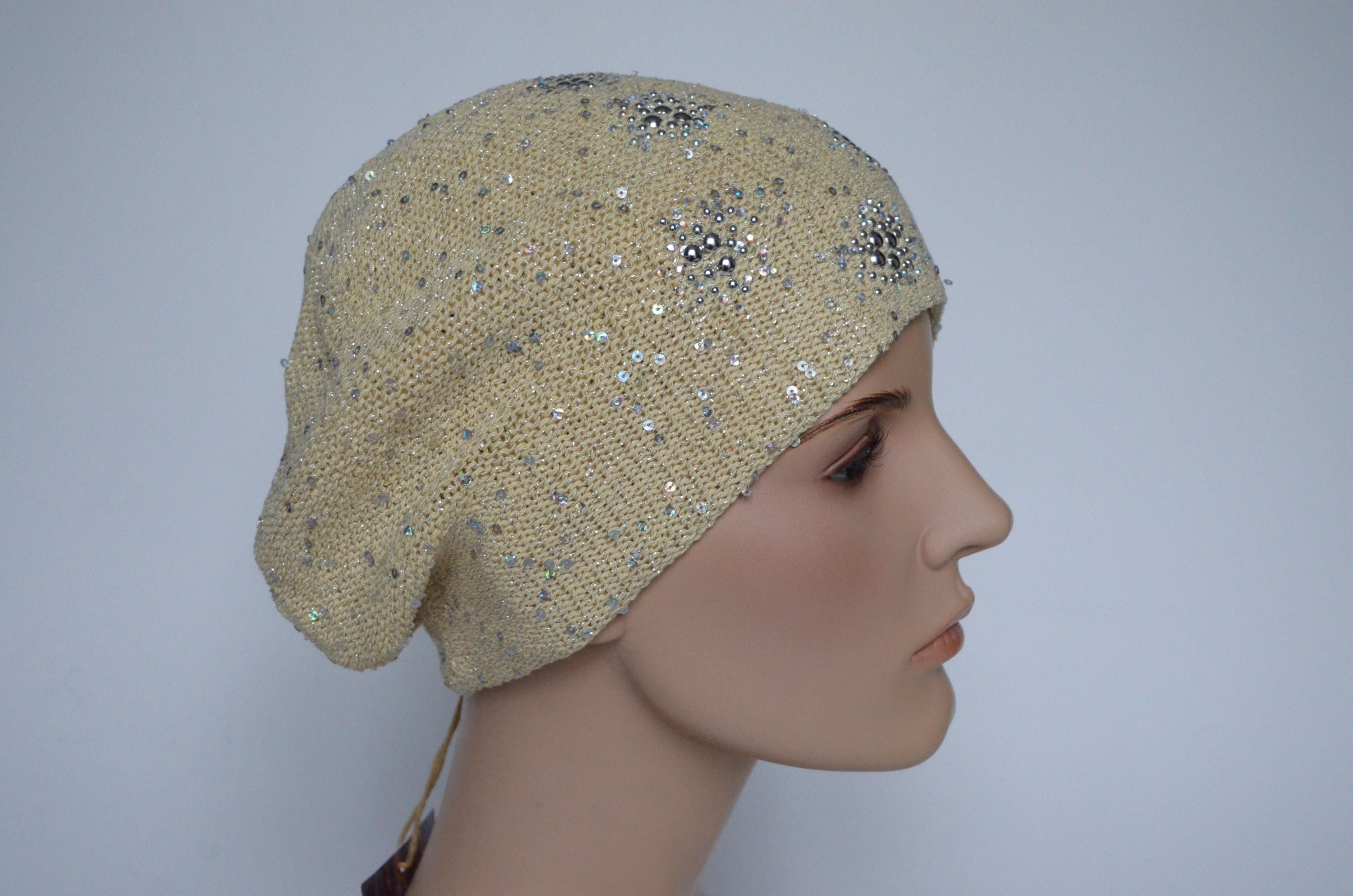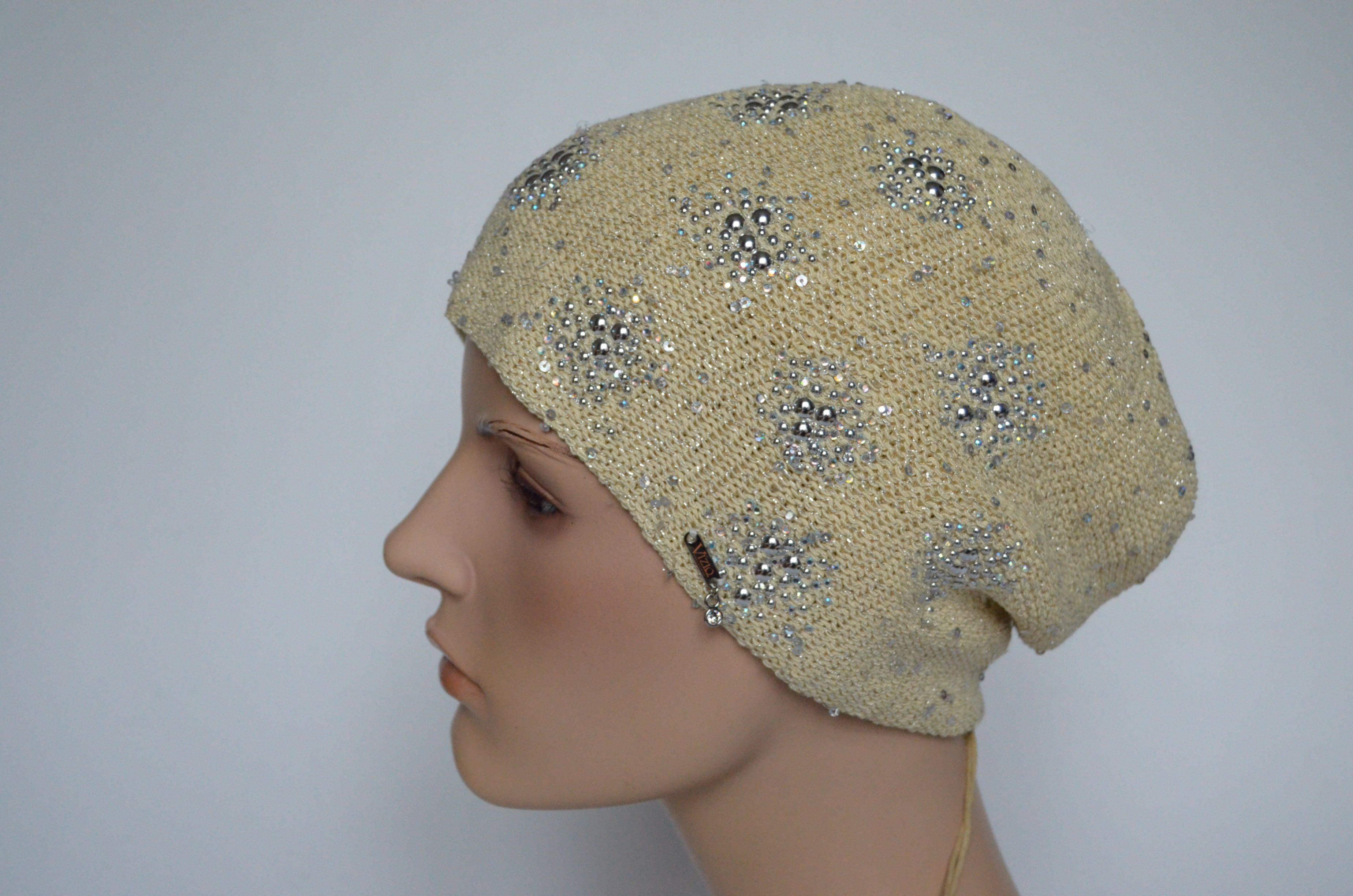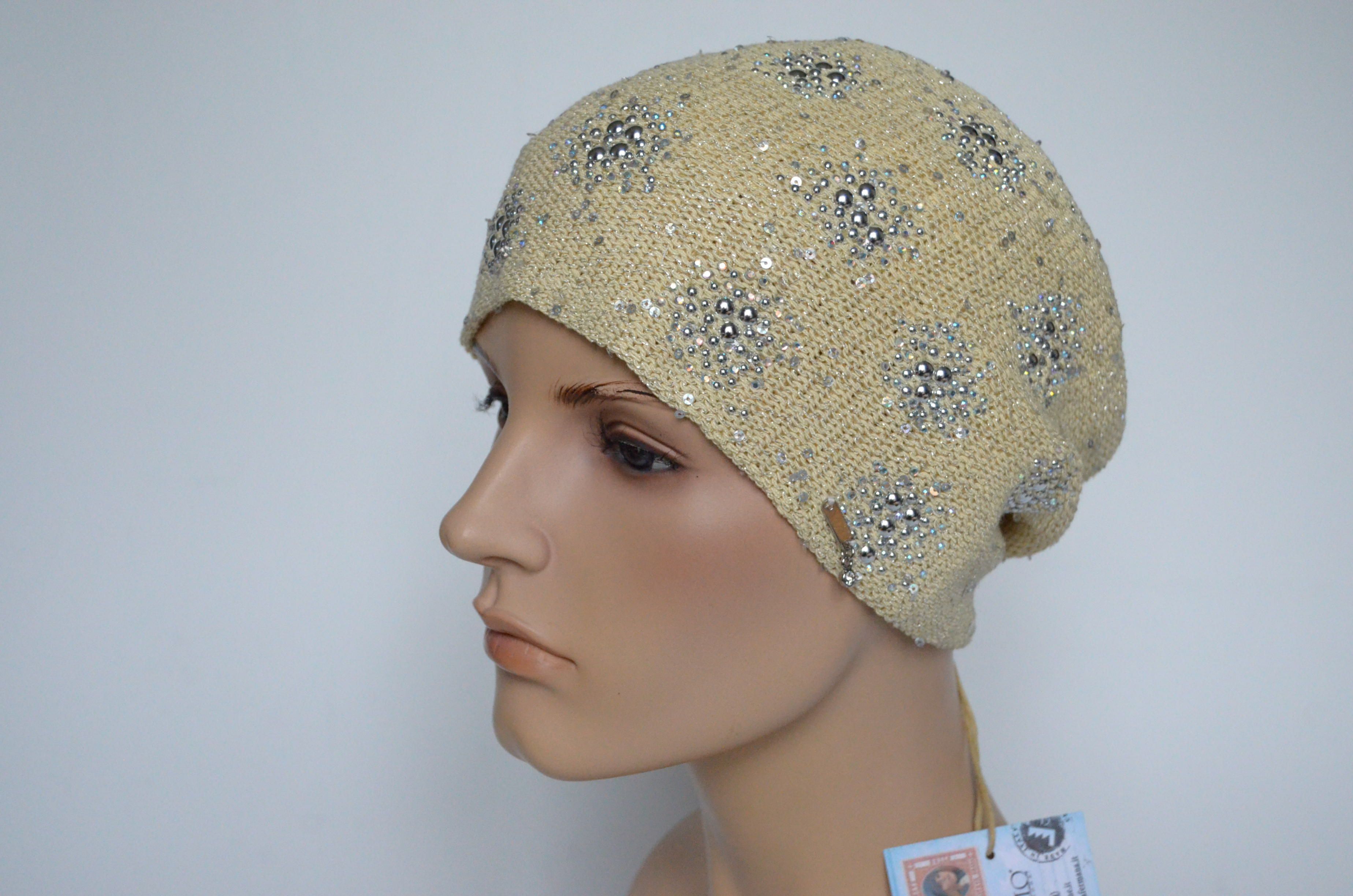 Демисезонный желтый вязаный берет с украшениями для женщин на лето - осень - весну Vizio Италия 6625 с вязаной подкладкой коллекция итальянских осенних и весених головных уборов.