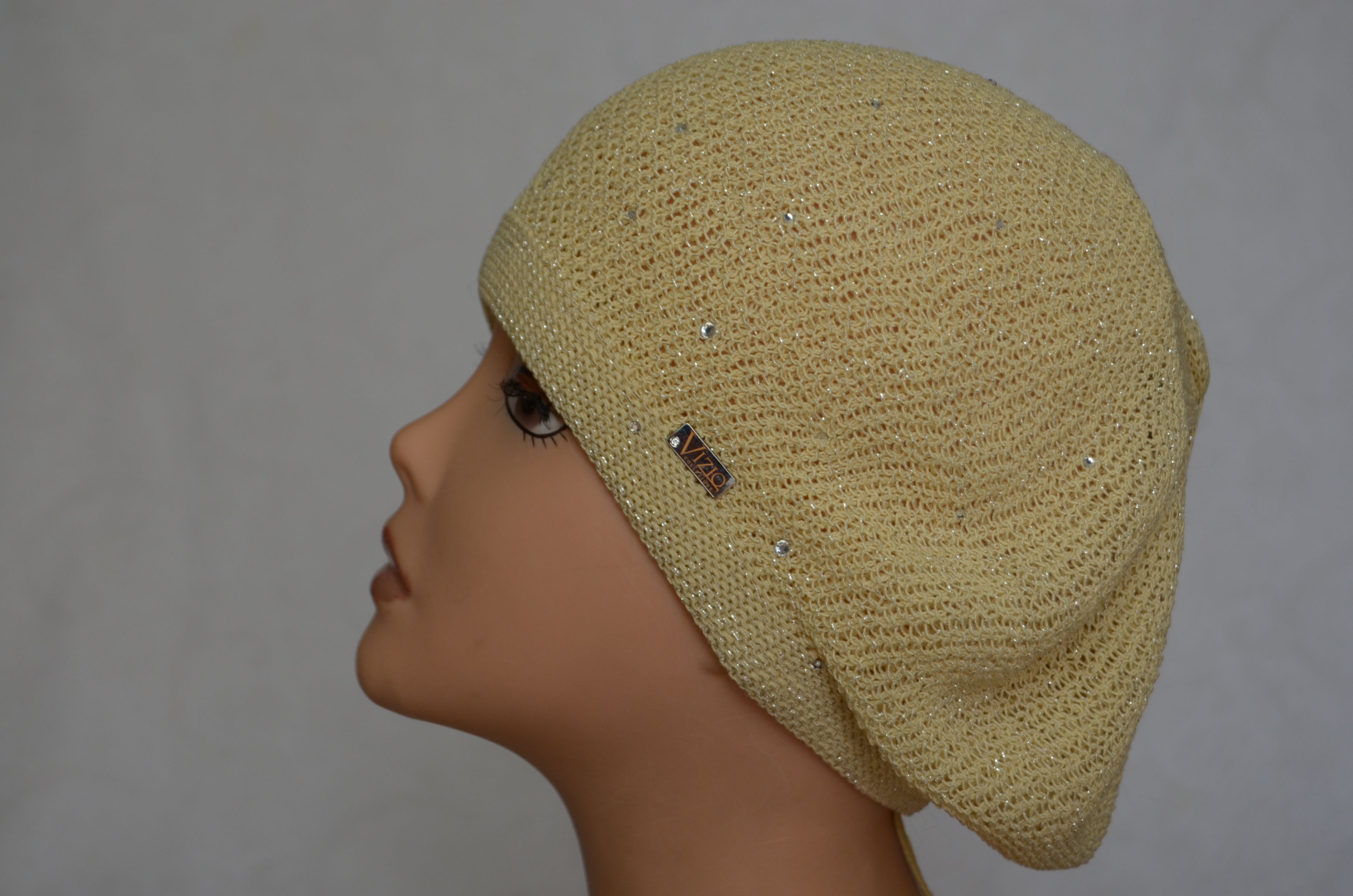 Купить желтый вязаный весенний осенний берет итальянского производителя женских головных уборов Vizio Collezione с доставкой по Москве и России в интернет магазине вязаных беретов и шапок из Италии Визио
