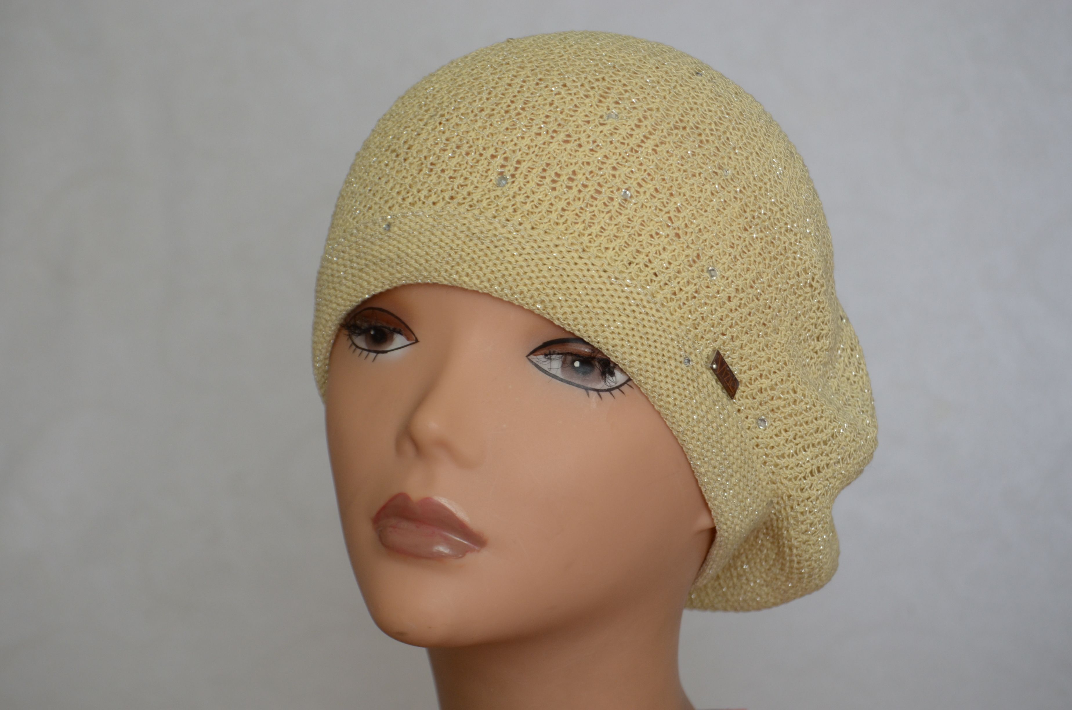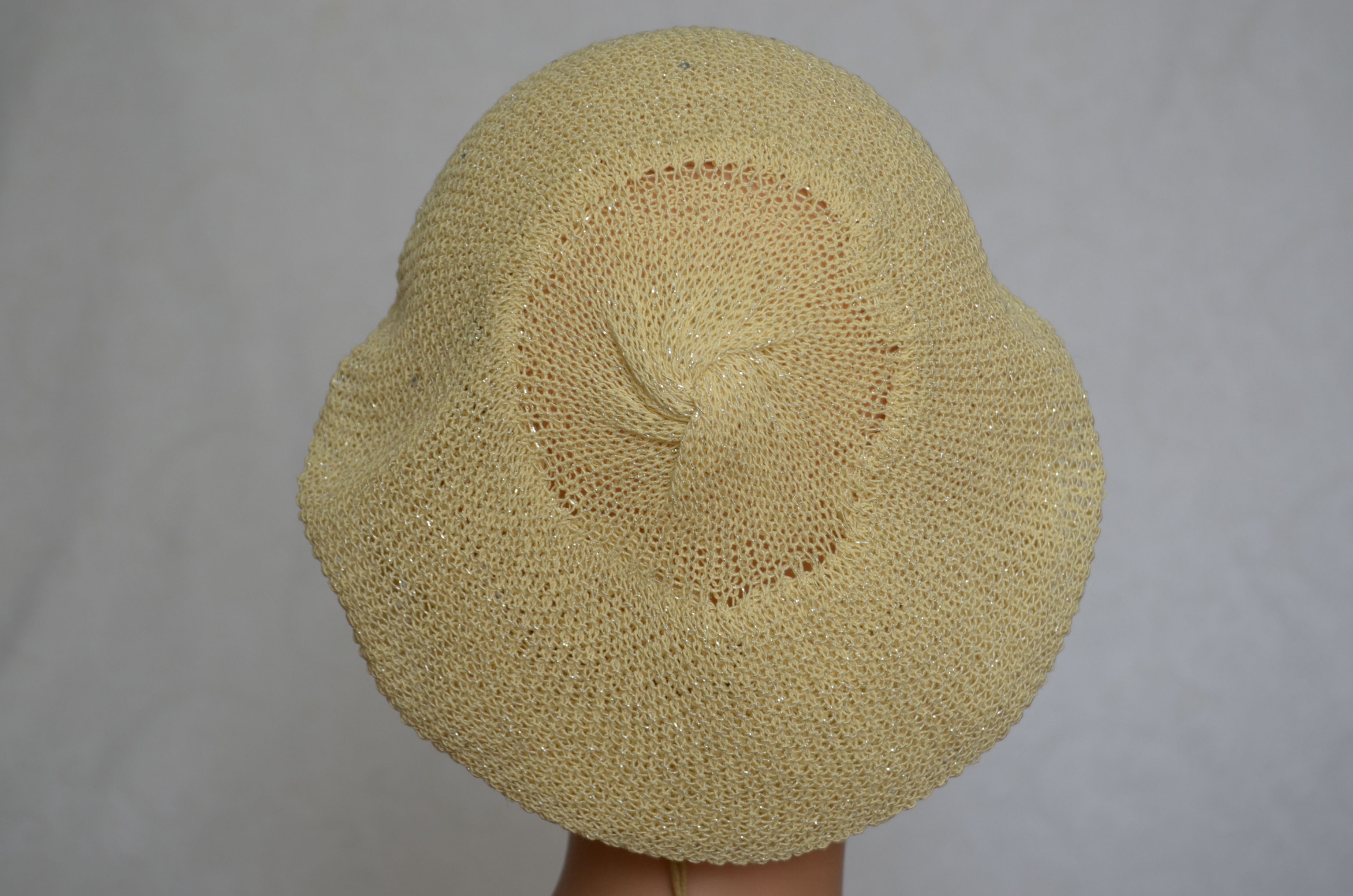 Желтый вязаный берет для женщин на лето - осень - весну Vizio Италия 6625 с вязаной подкладкой коллекция итальянских осенних и весених головных уборов.