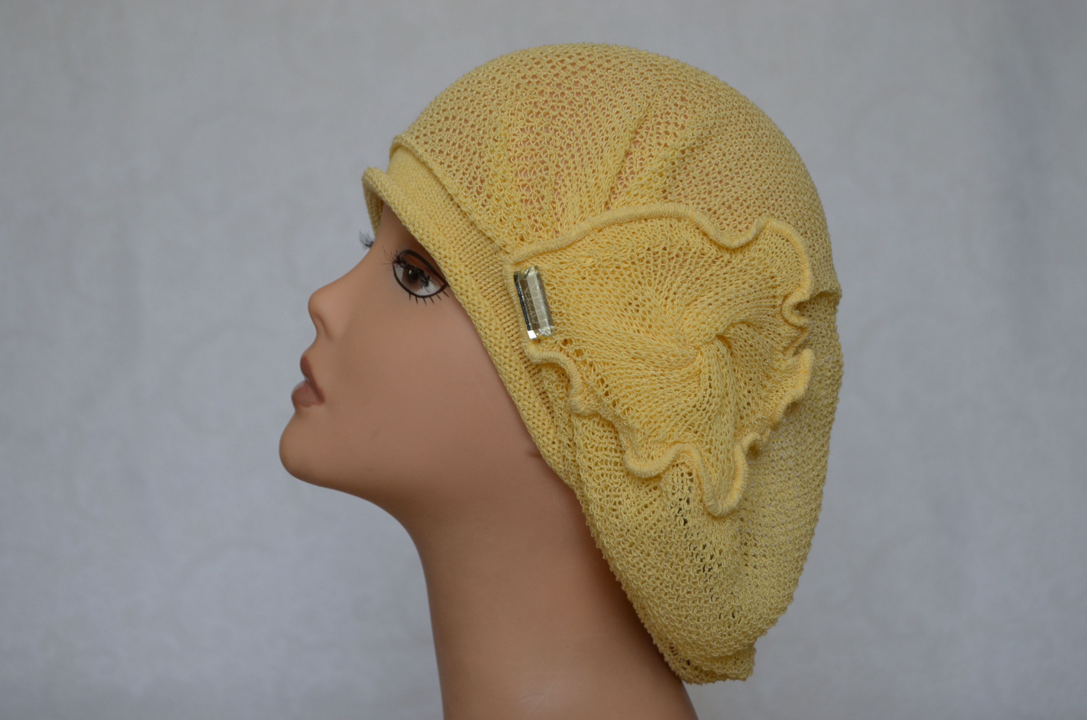 Желтый женский летний вязаный берет из хлопка Визио Италия 4810 коллекция итальянских беретов Vizio желтого цвета в интернет магазине модных головных уборов для женщин