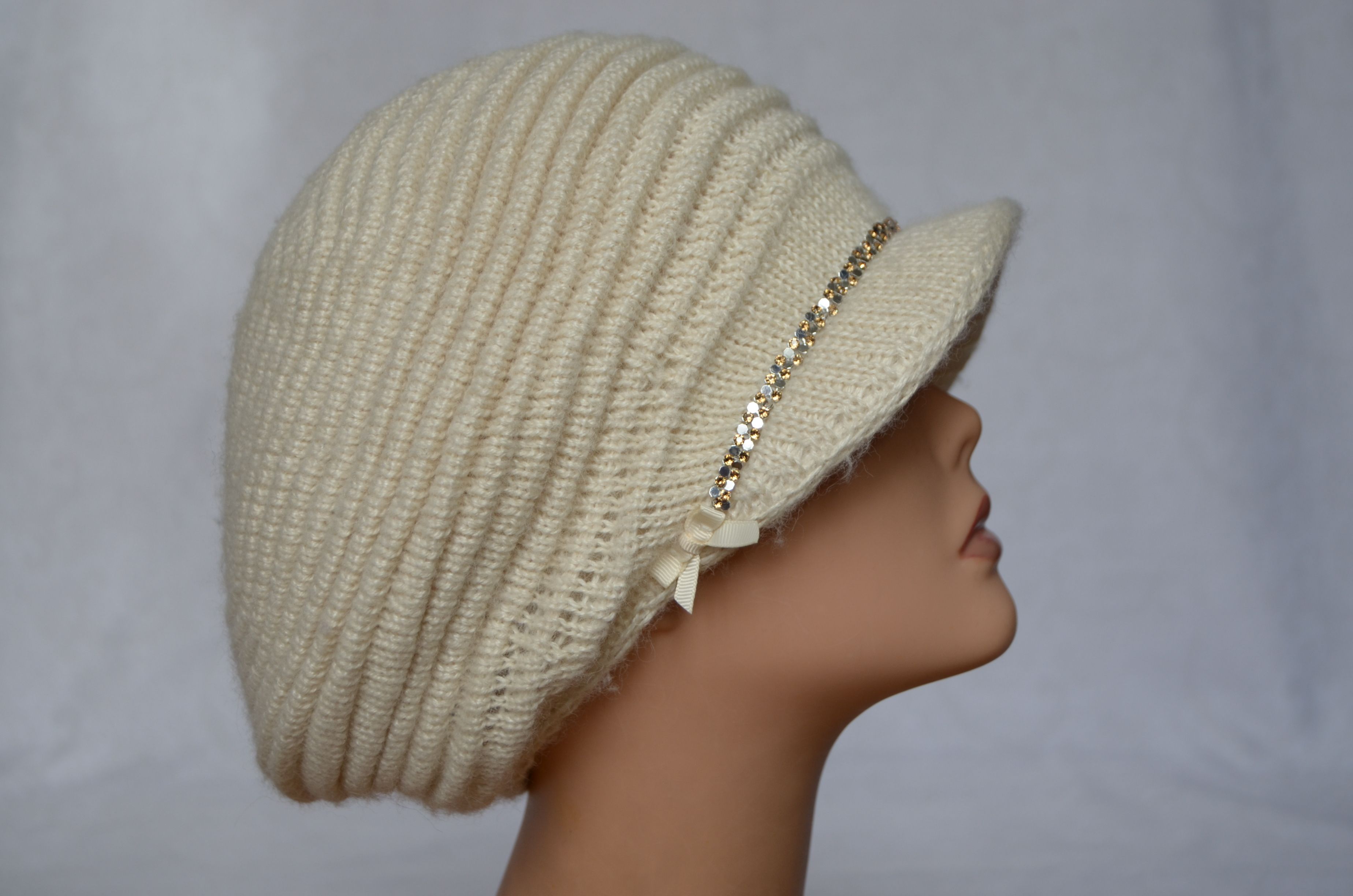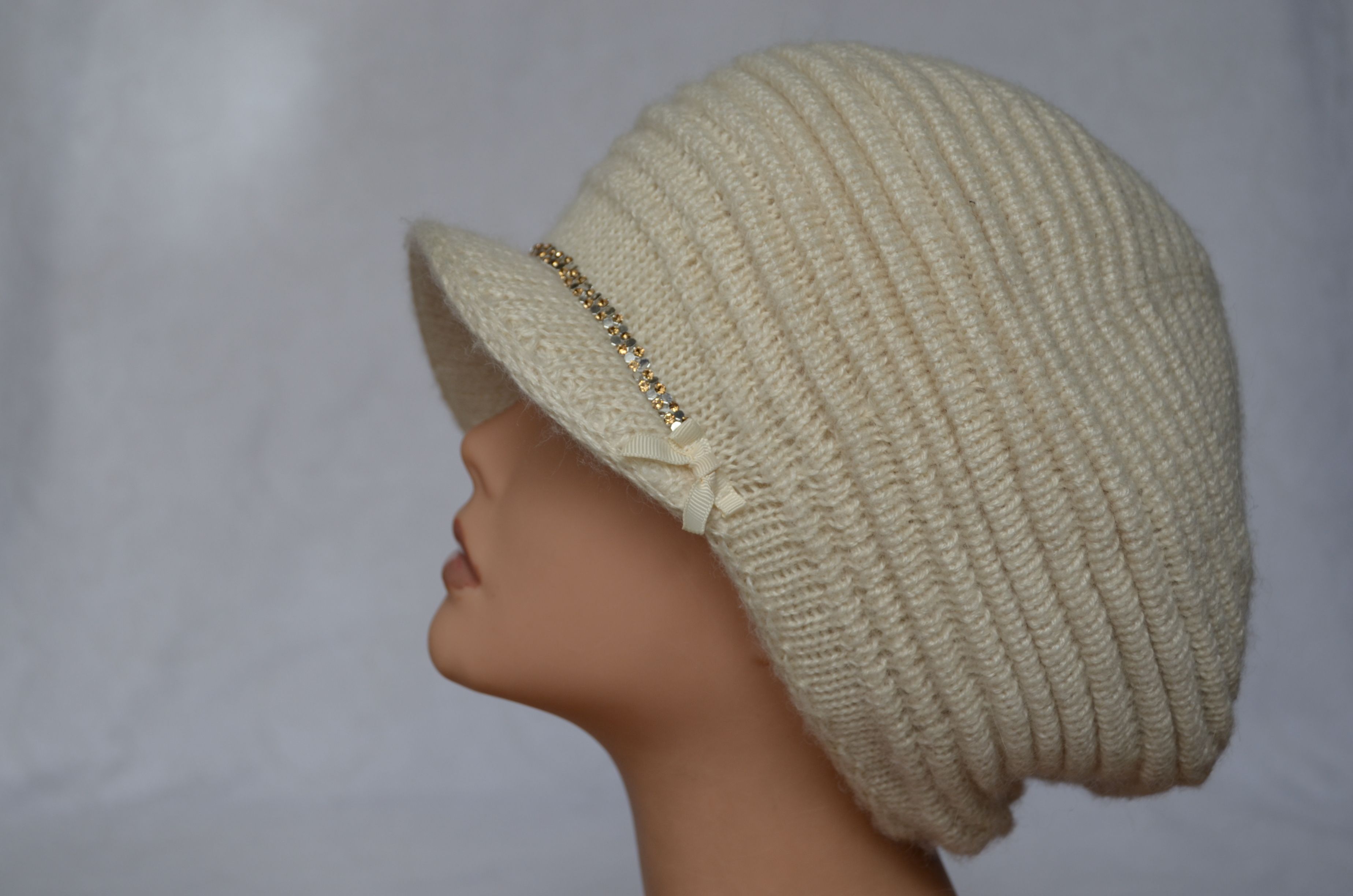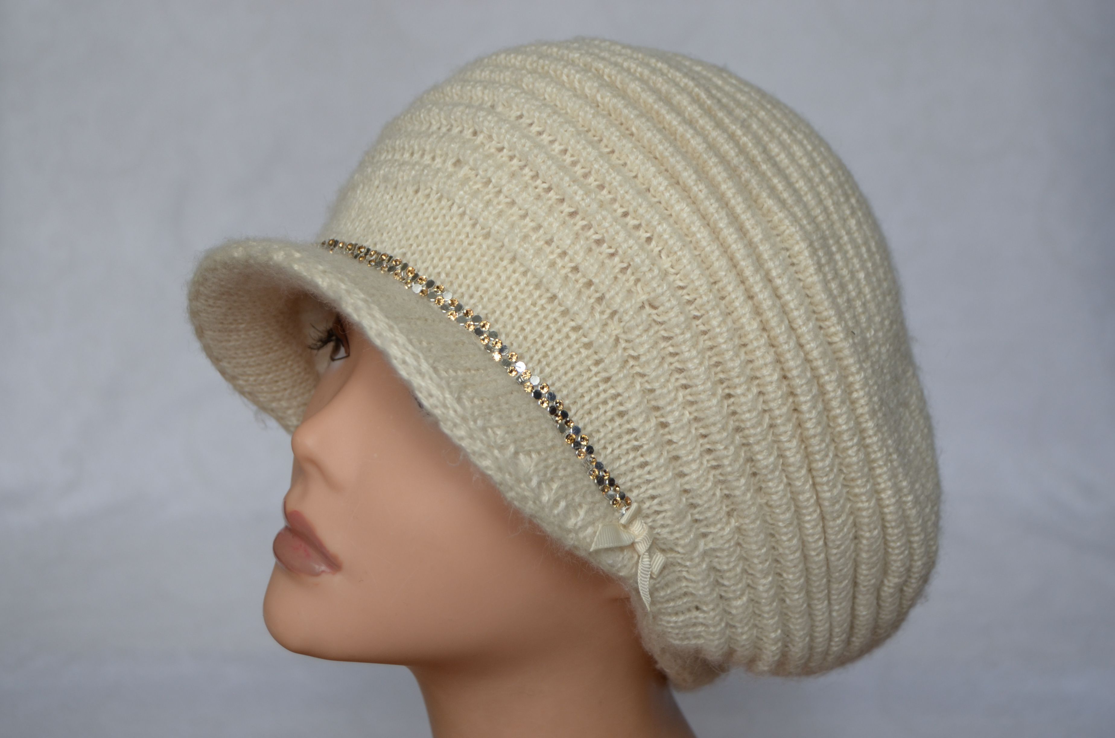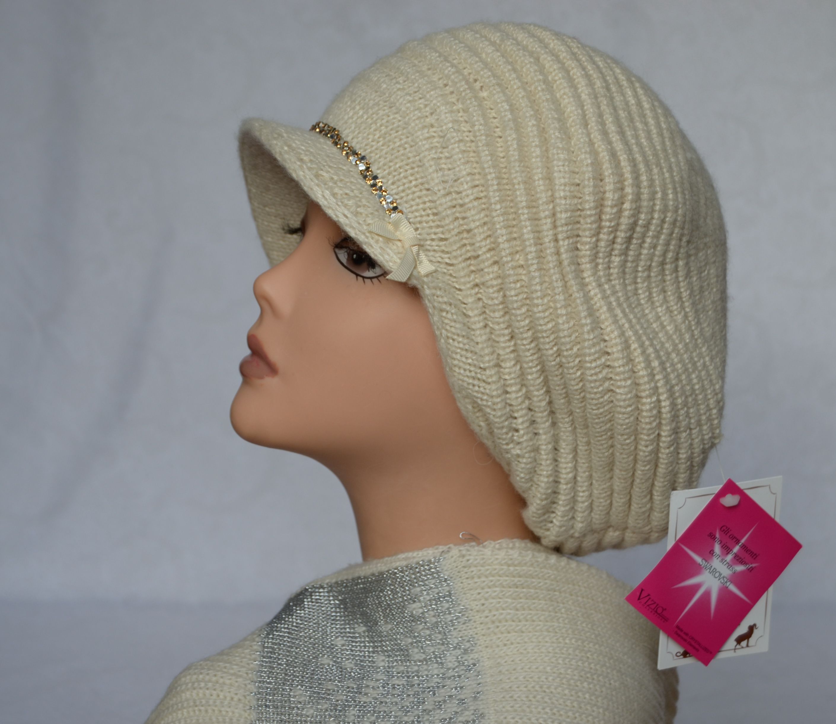 Женская вязаная кепка из альпака и шелка Vizio Италия 5003 белого цвета купить в магазине итальянских вязаных головных уборов Визио