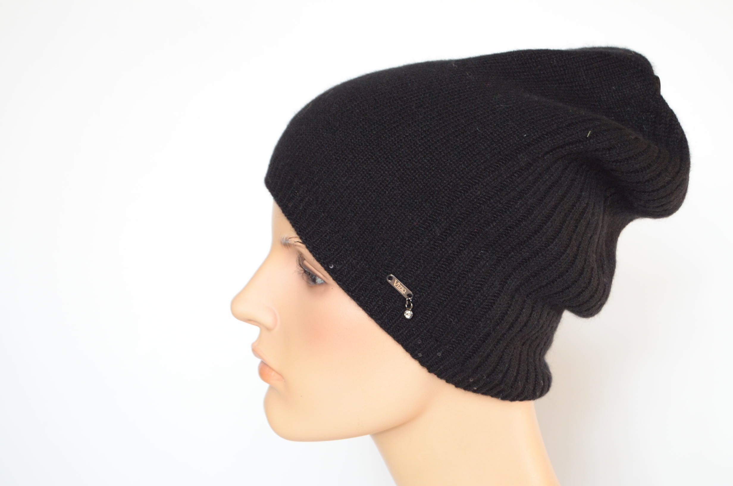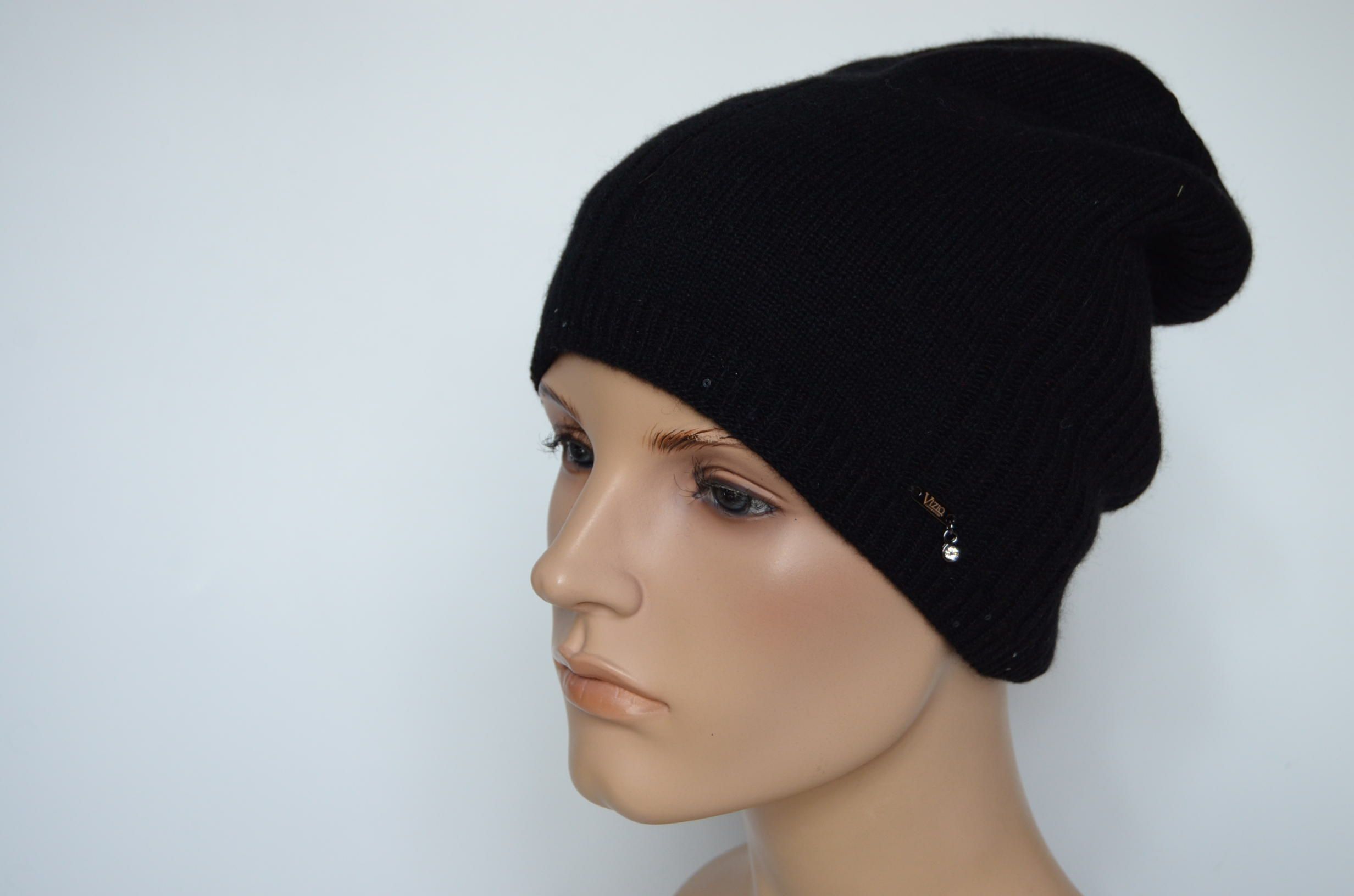 Купить женскую шапку вязаную из кашемира черного цвета Vizio Collezione Италия зима 2023 - 2024 в интернет магазине итальянских кашемировых головных уборов Визио