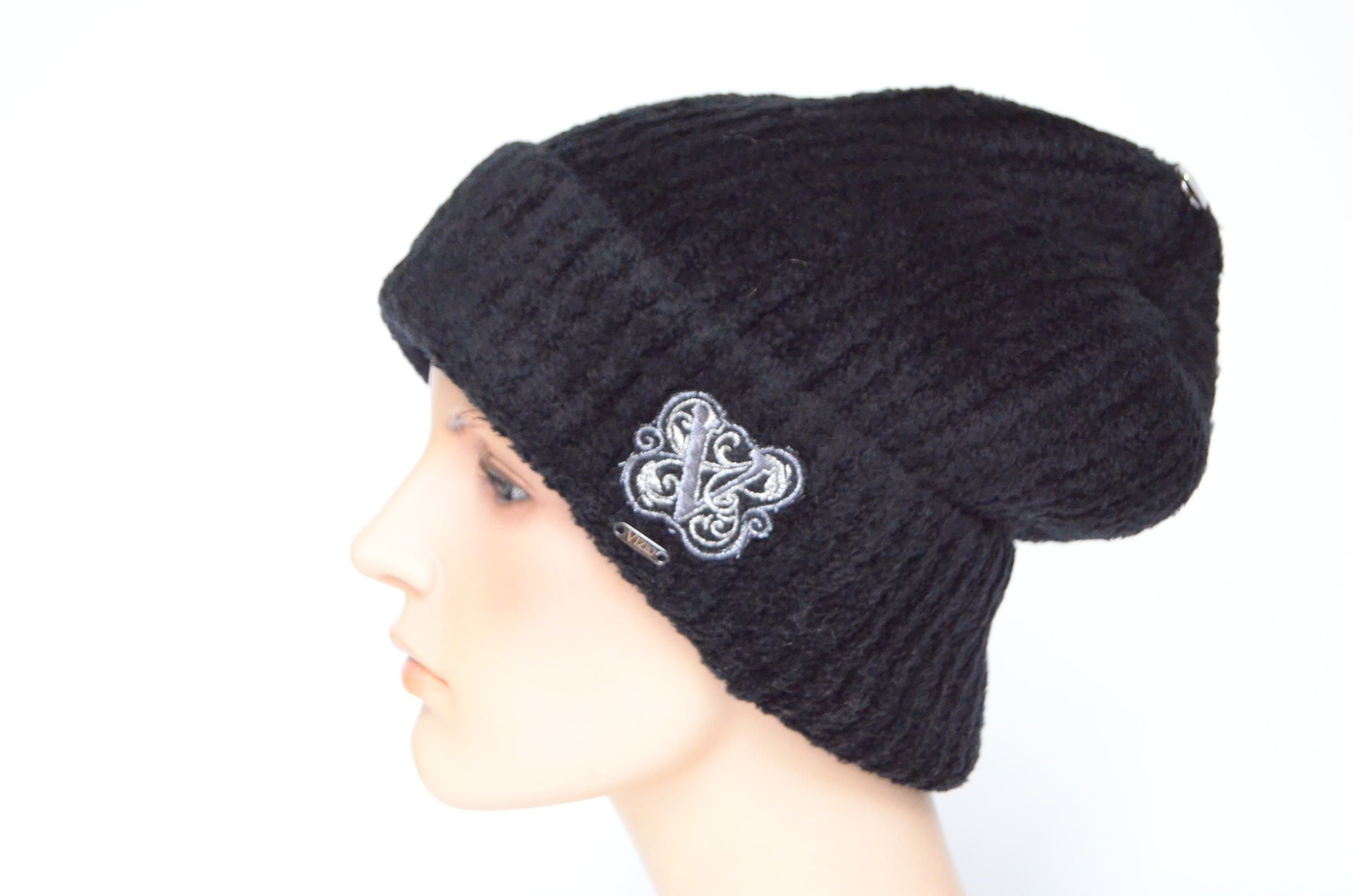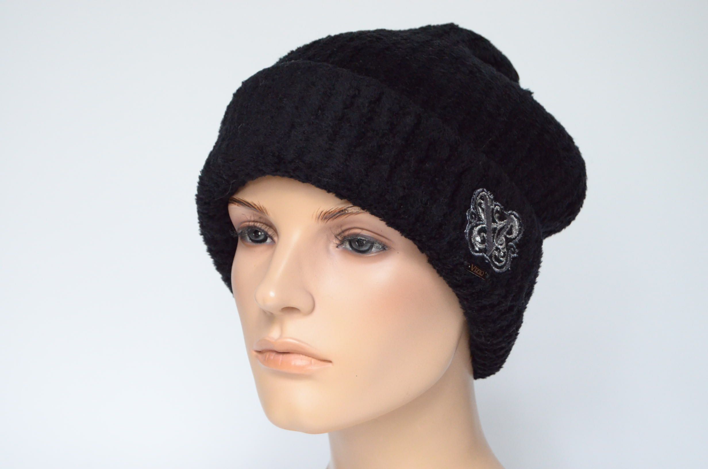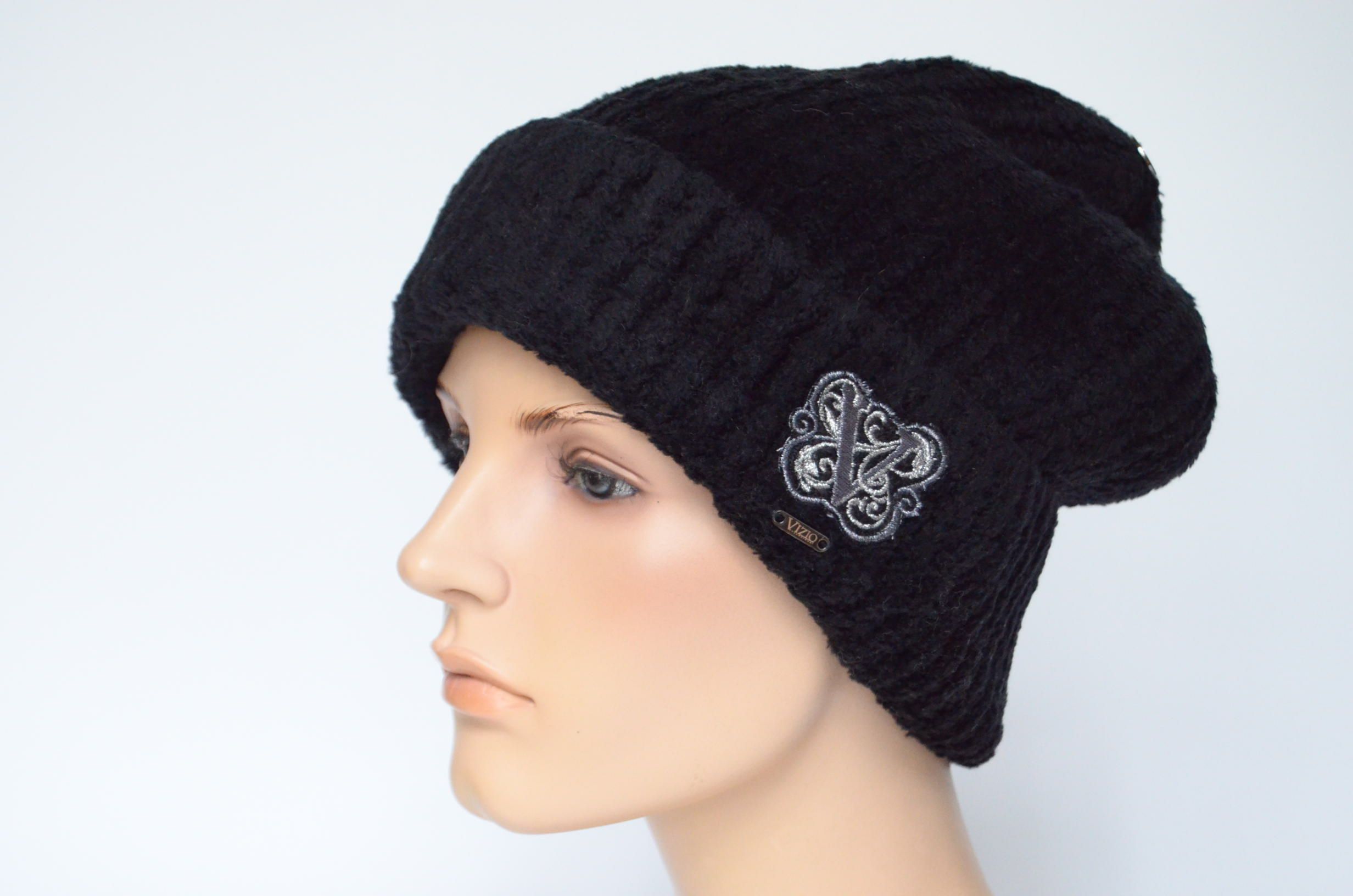 Шапка с отворотом кашемировая черного цвета Vizio 1112 CRYO зимняя однослойная коллекция итальянских шапок зима 2023 - 2024 купить в интернет магазине головных уборов Италии