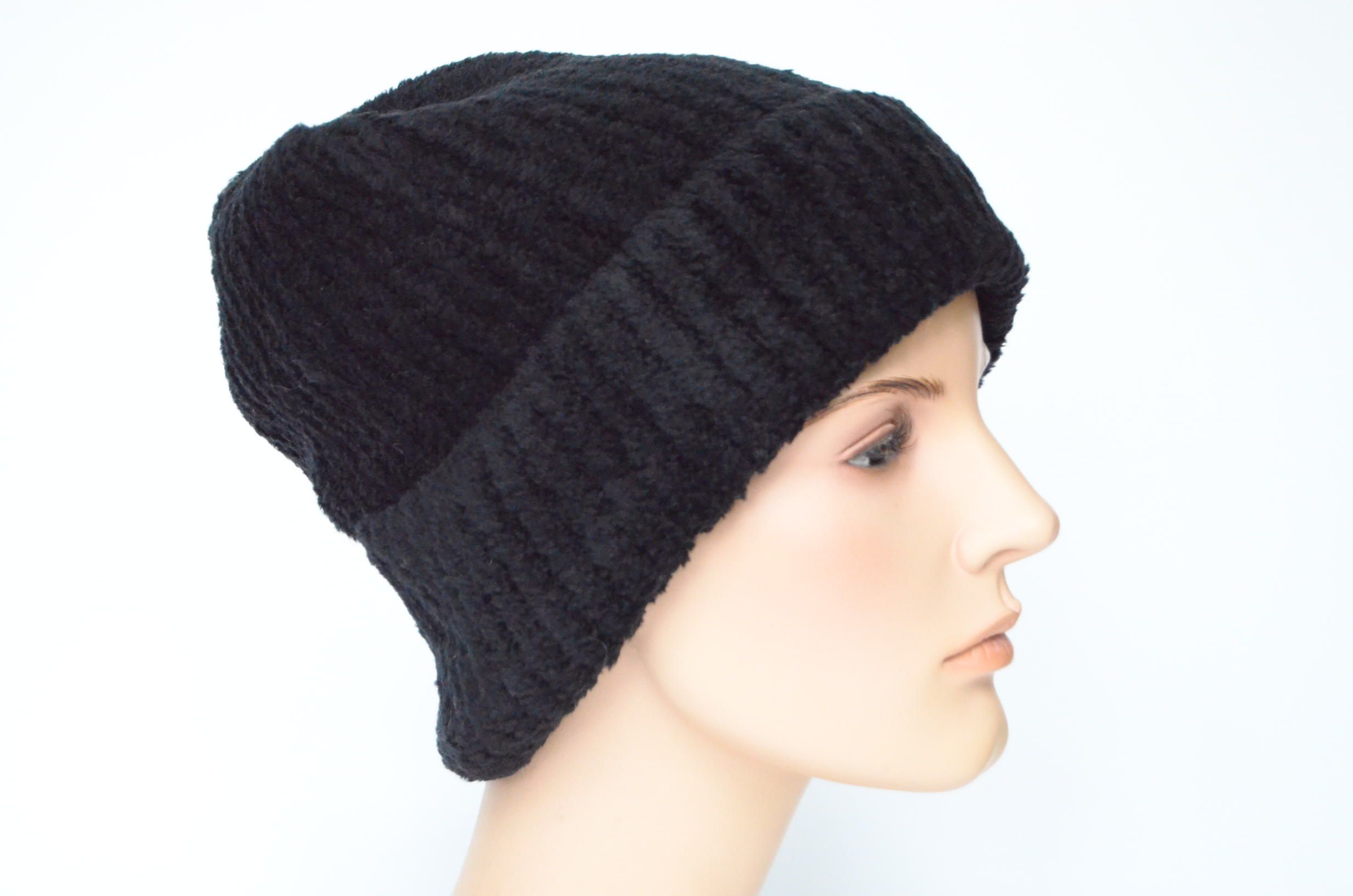 Женская зимняя шапка с отворотом вязаная из кашемира Италия Визио 1112 CRYO черного цвета из коллекции кашемировых головных уборов Vizio зима 2023 - 2024