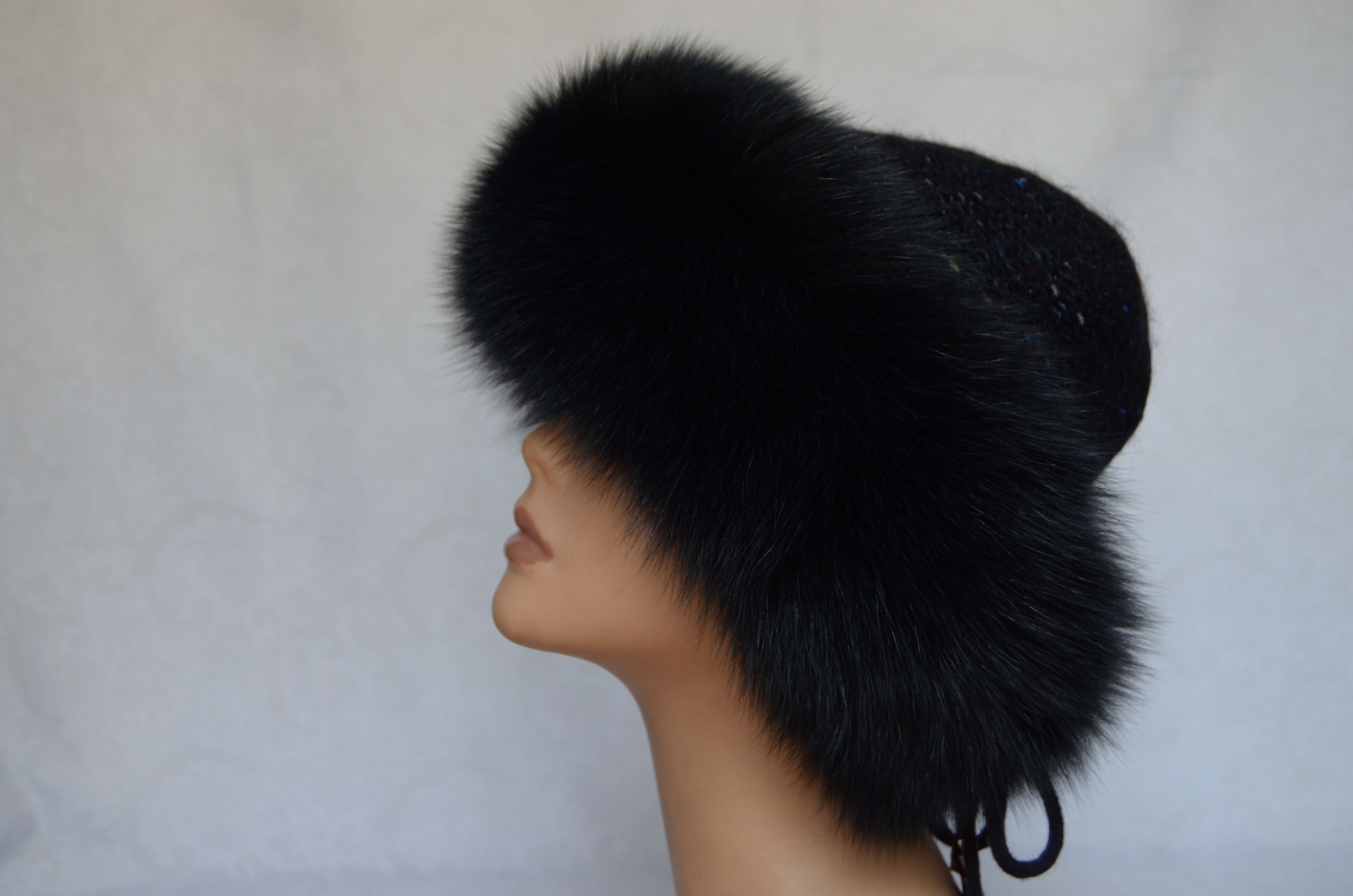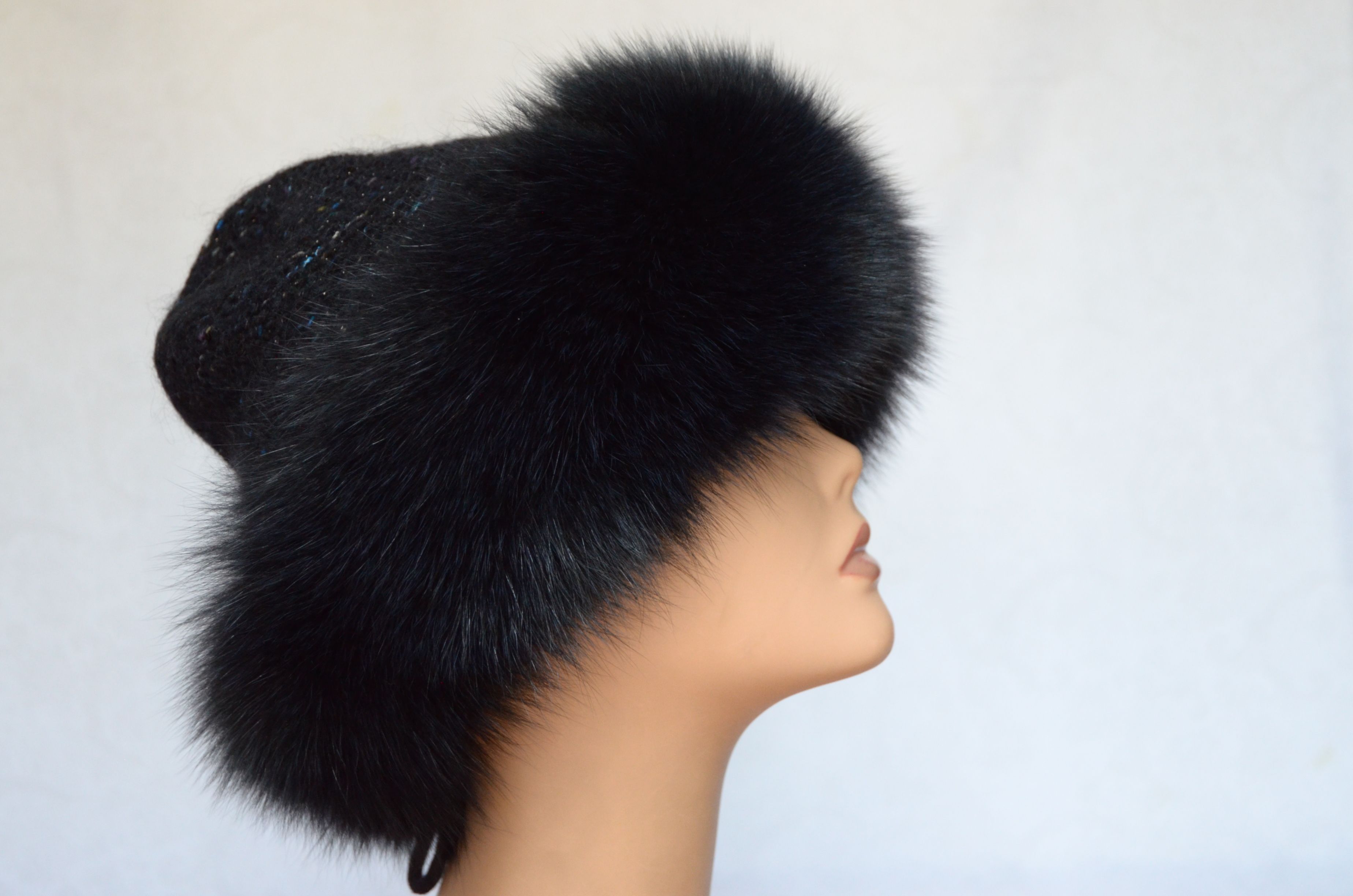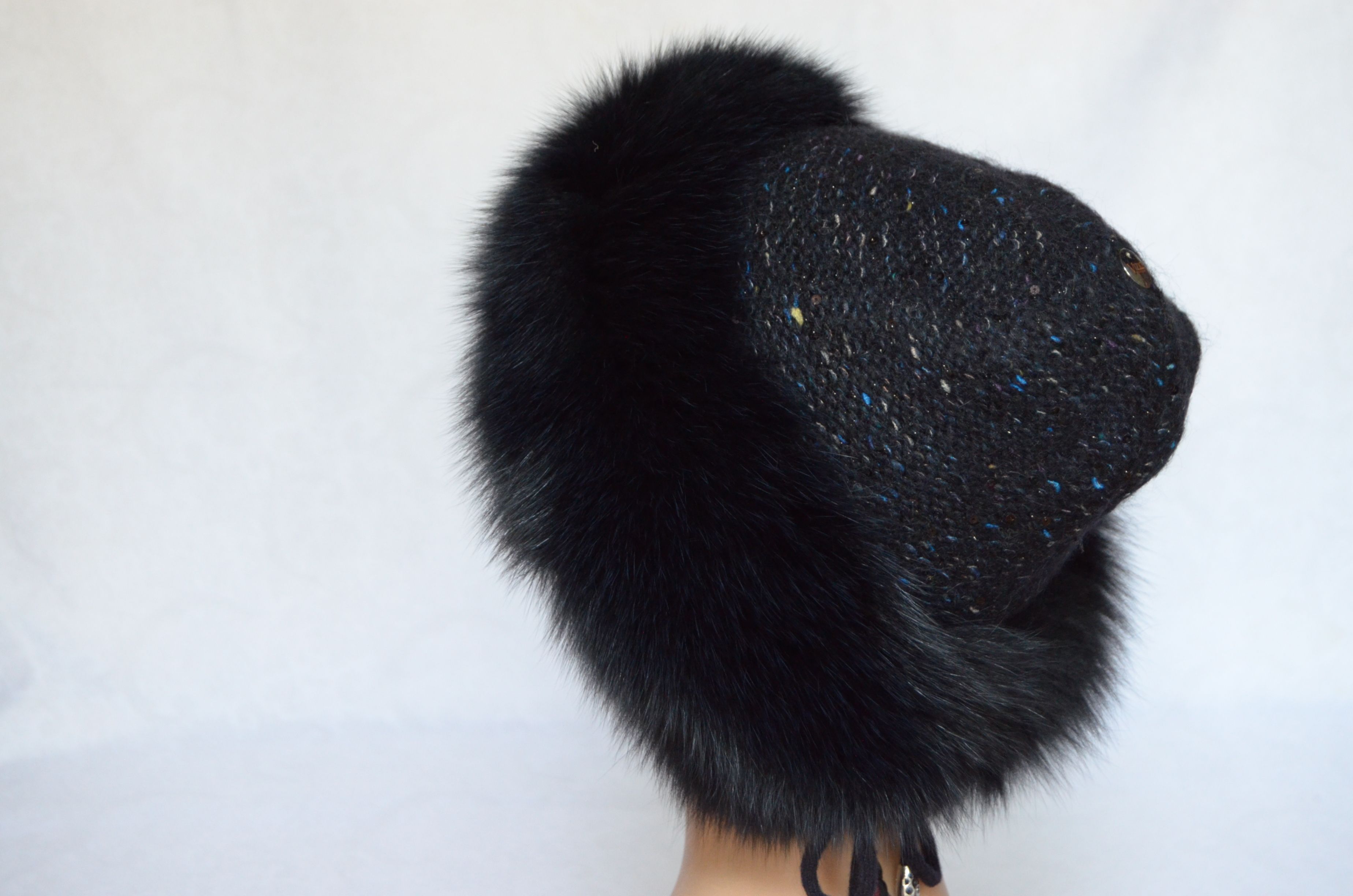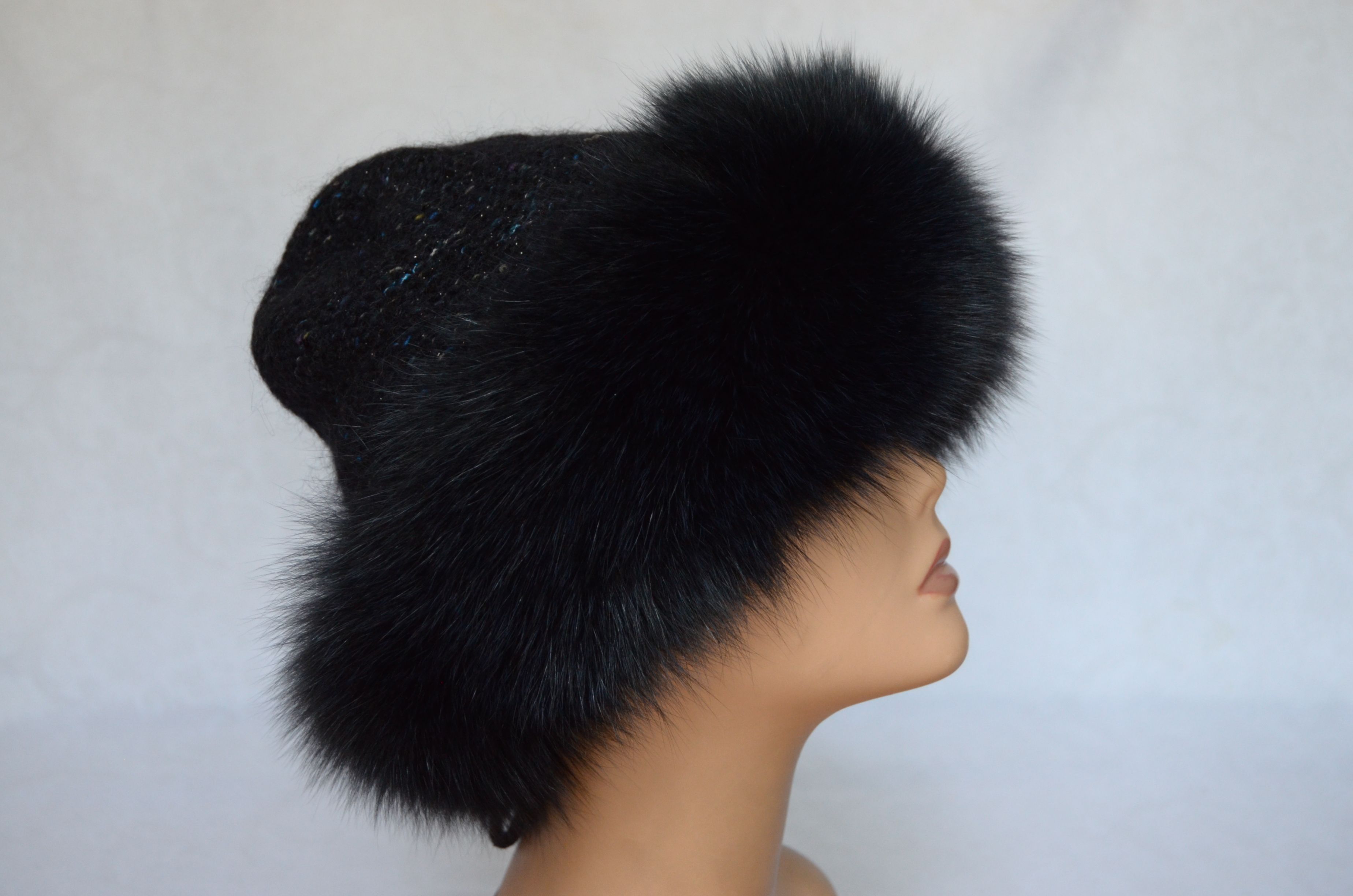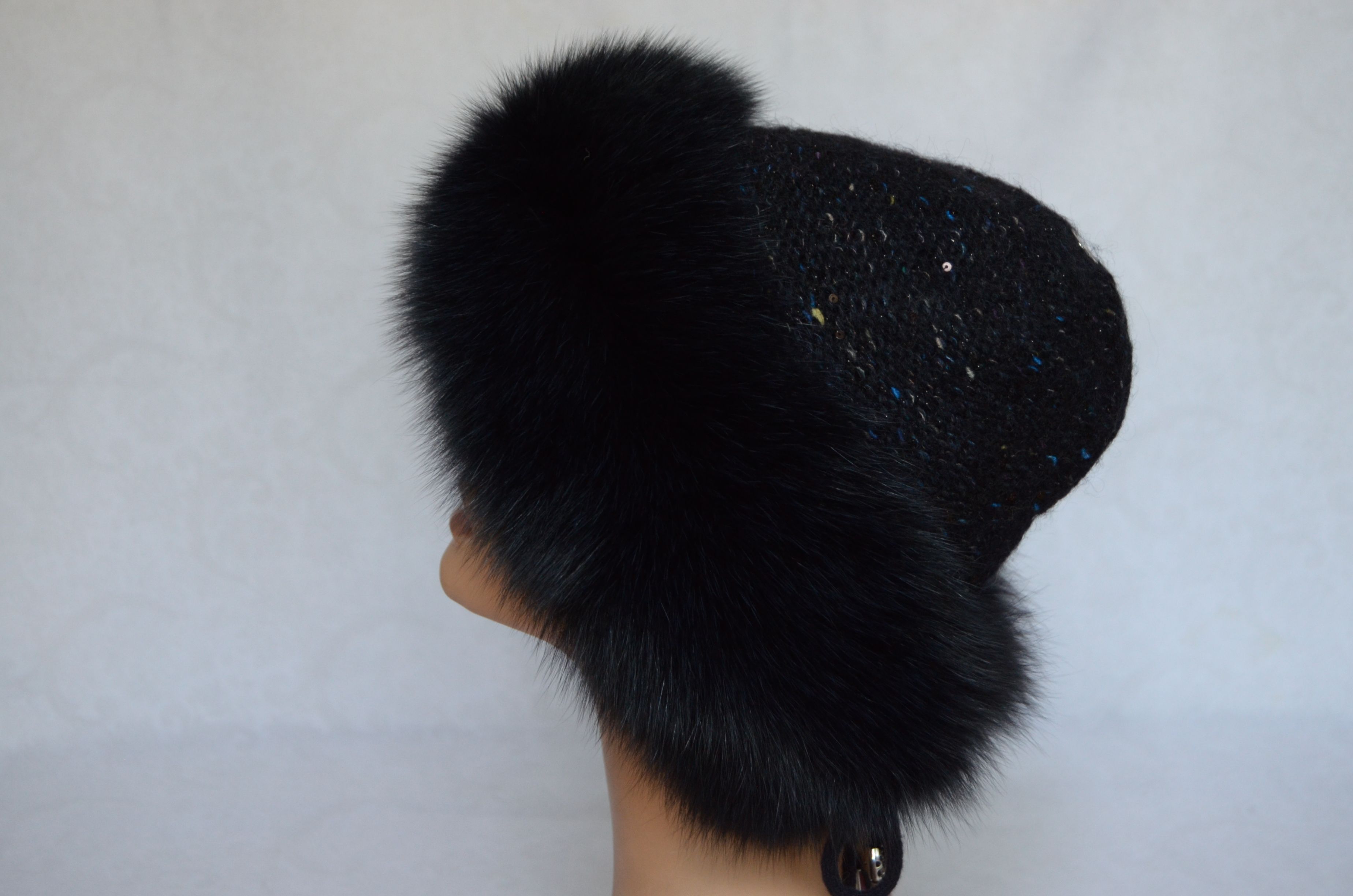 Меховая отделка вязаной шапки - мех песца