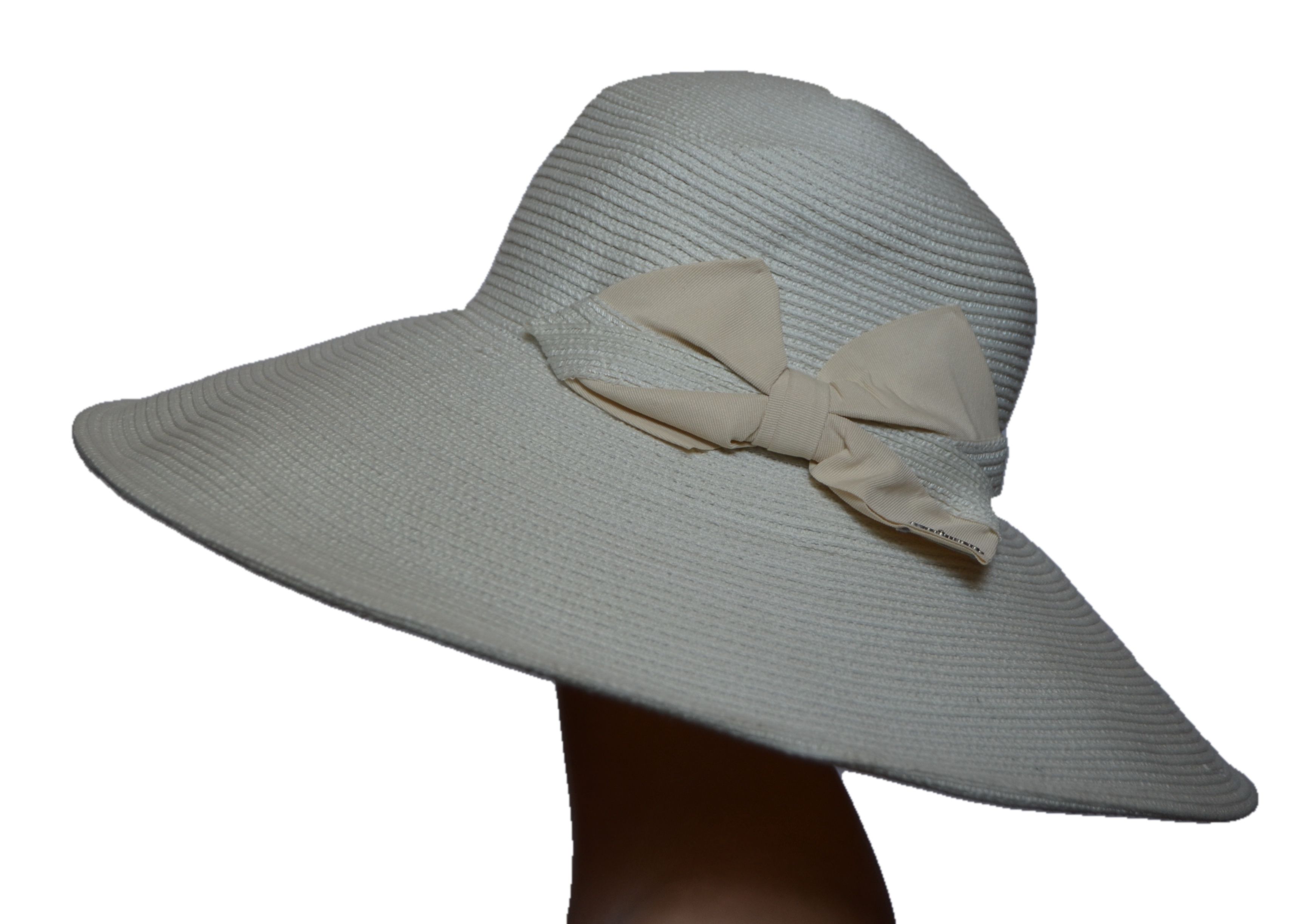 Del Mare шляпа молочного цвета летняя с широкими полями в интернет магазине женских шляп в Москве. Широкополая белая шляпа Дель Маре с украшением бантом