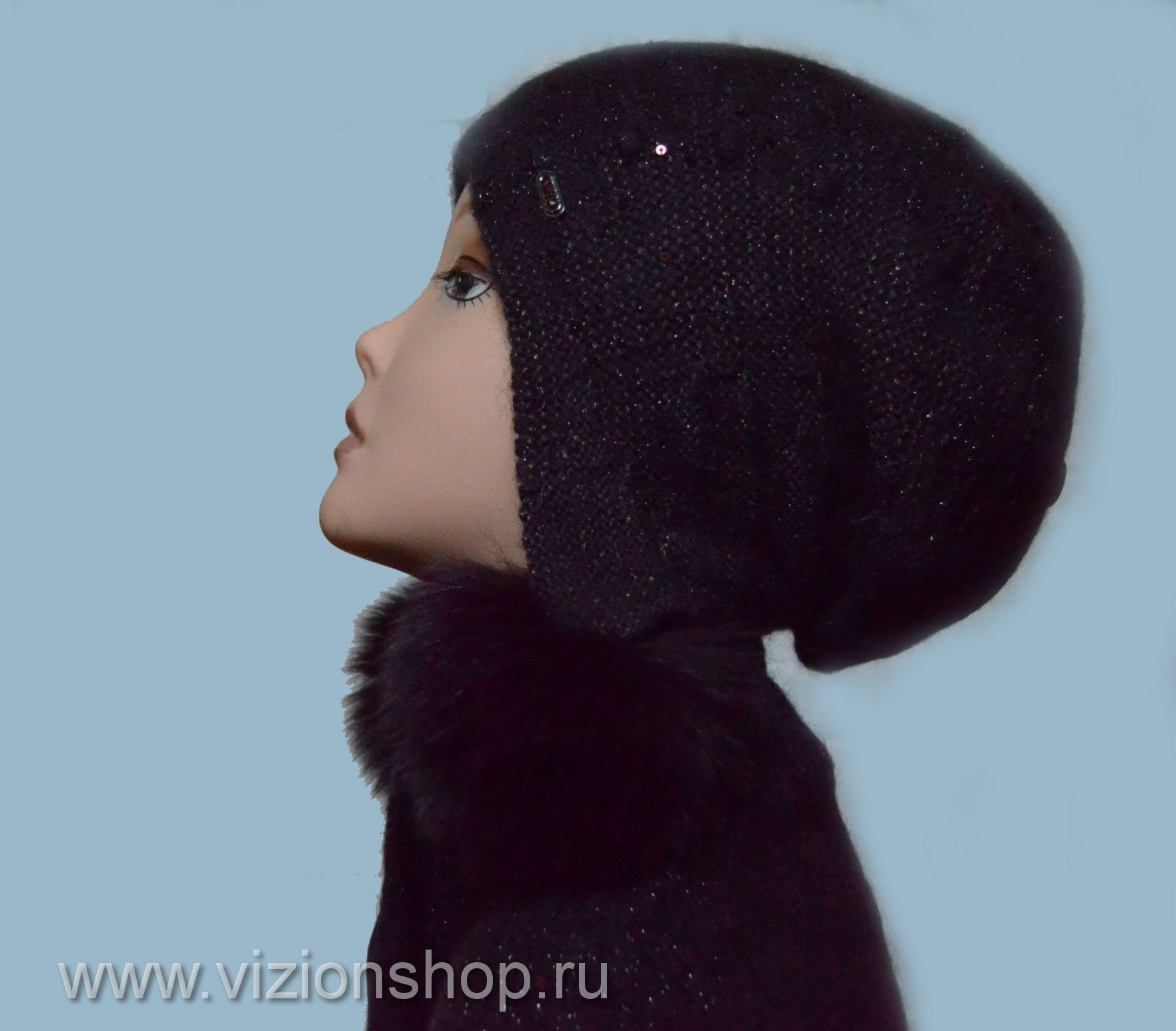 Состав вязаной шапки : мохер 25 %, шерсть 19 %, полиамид 15 %, полиэстер 14 %, эластан 2 %, вискоза 25 %, пайетки