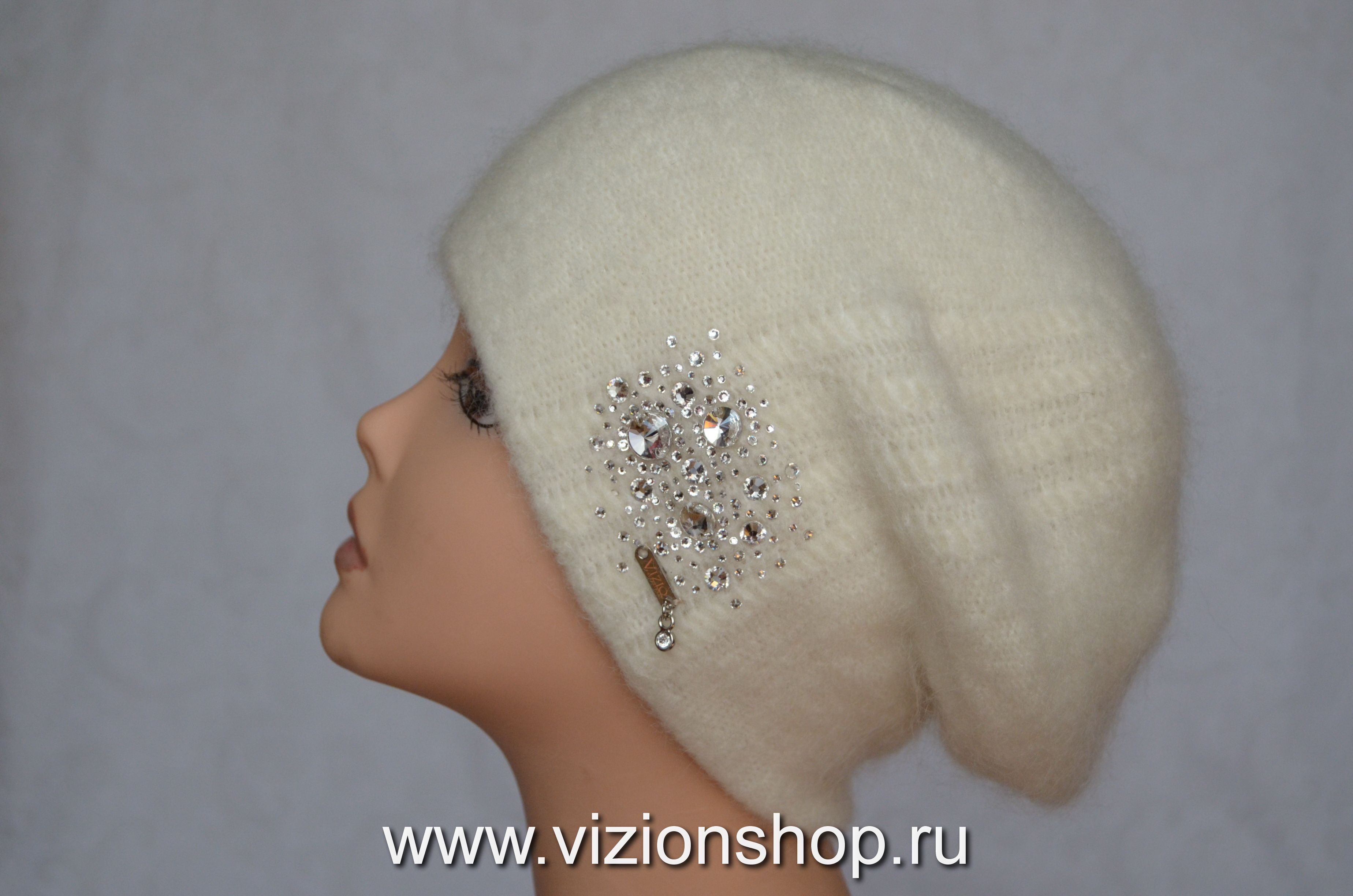 Берет женский белого цвета Vizio Италия 6485 зима 2019 - 2020 купить в интернет магазине итальянских беретов и шапок