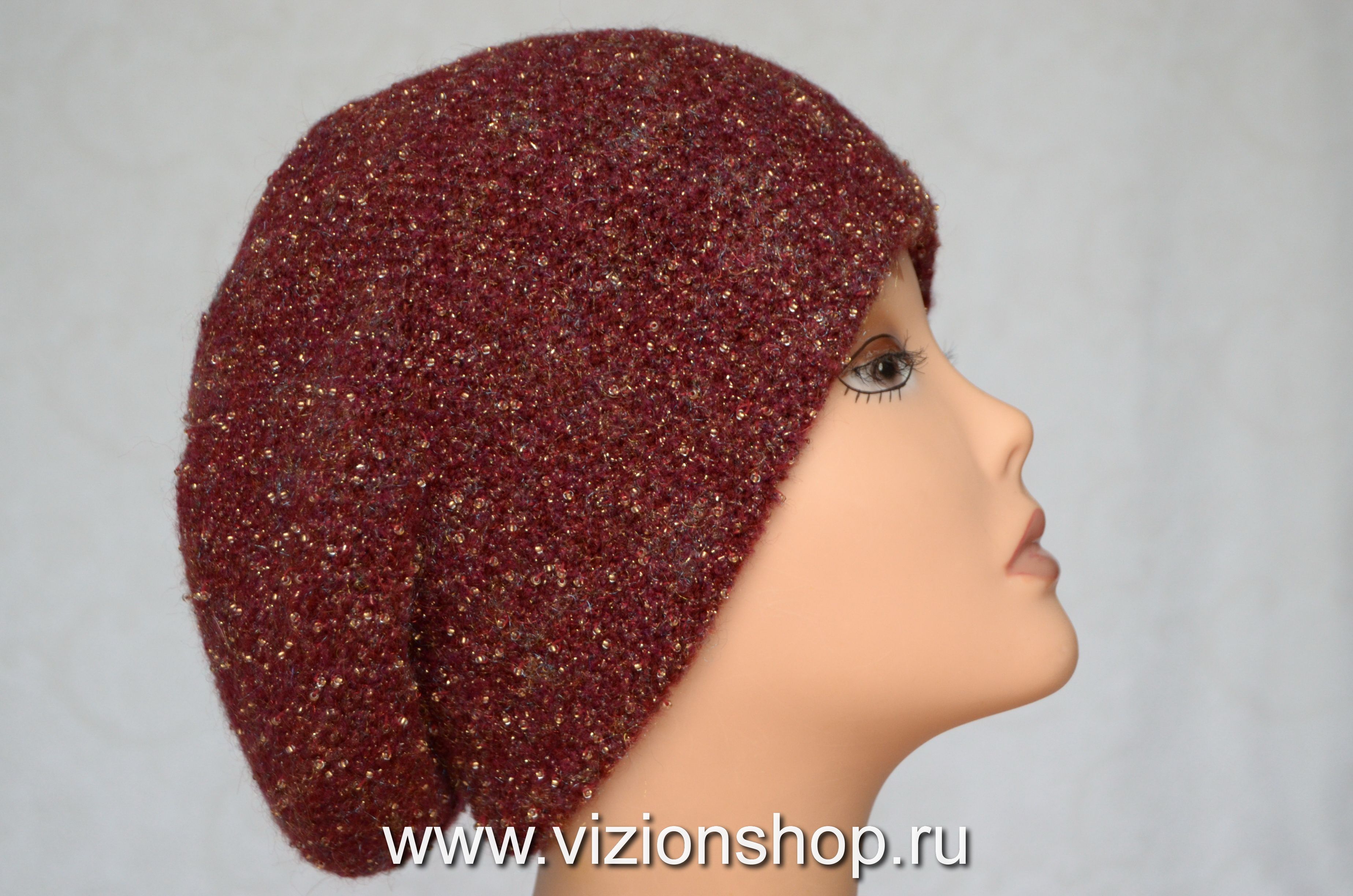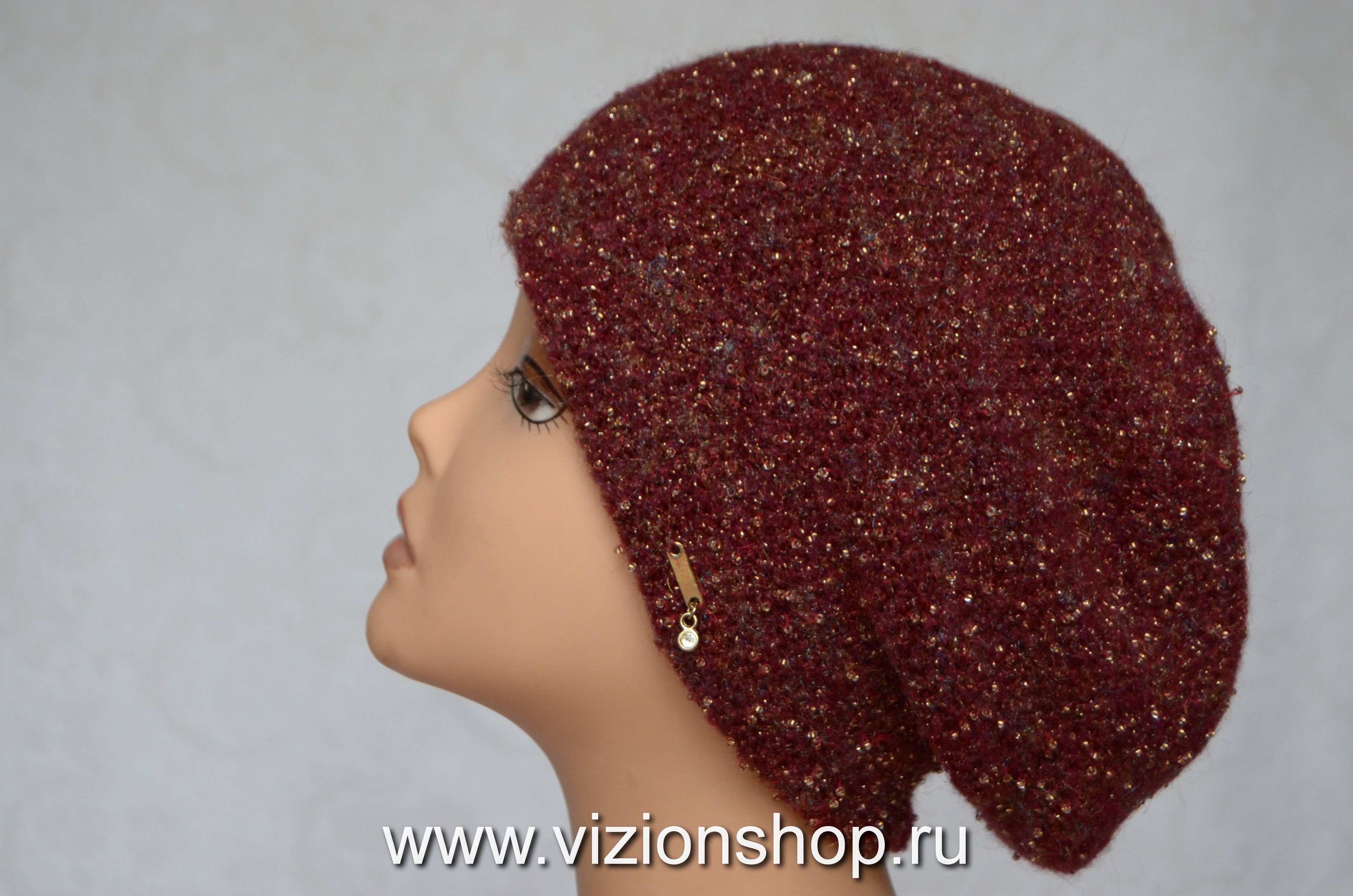 Берет бордовый вязаный для женщин зима 2019 - 2020 Vizio Италия 6532 купить в интернет магазине вязаных итальянских женских беретов Москва и Россия