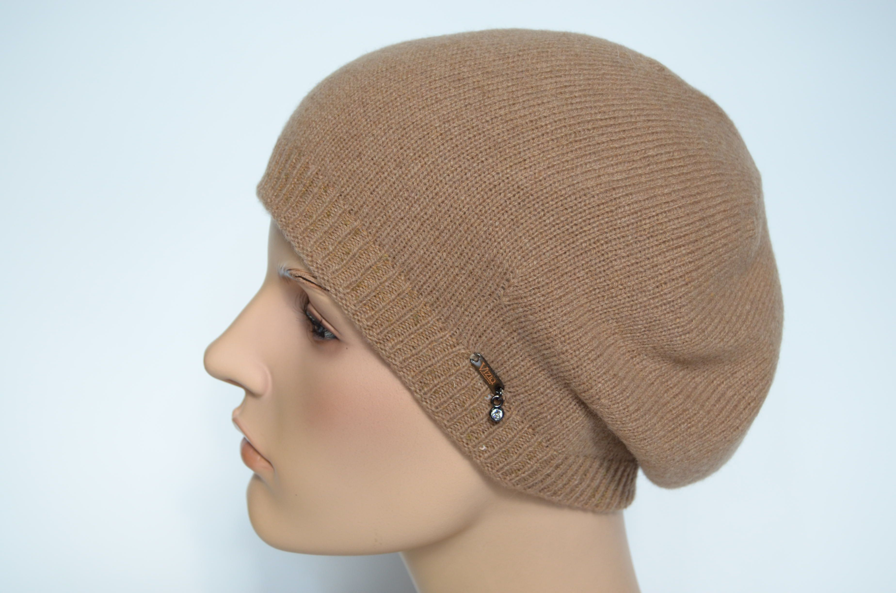 Приобрести женский светло - коричневый берет из кашемира Италия Визио Вы можете в магазине вязаных головных уборов Vizio Collezione в Москве или с доставкой по России на сайте интернет магазина итальянских шапок, беретов, кепок, шляп и шарфов Vizio