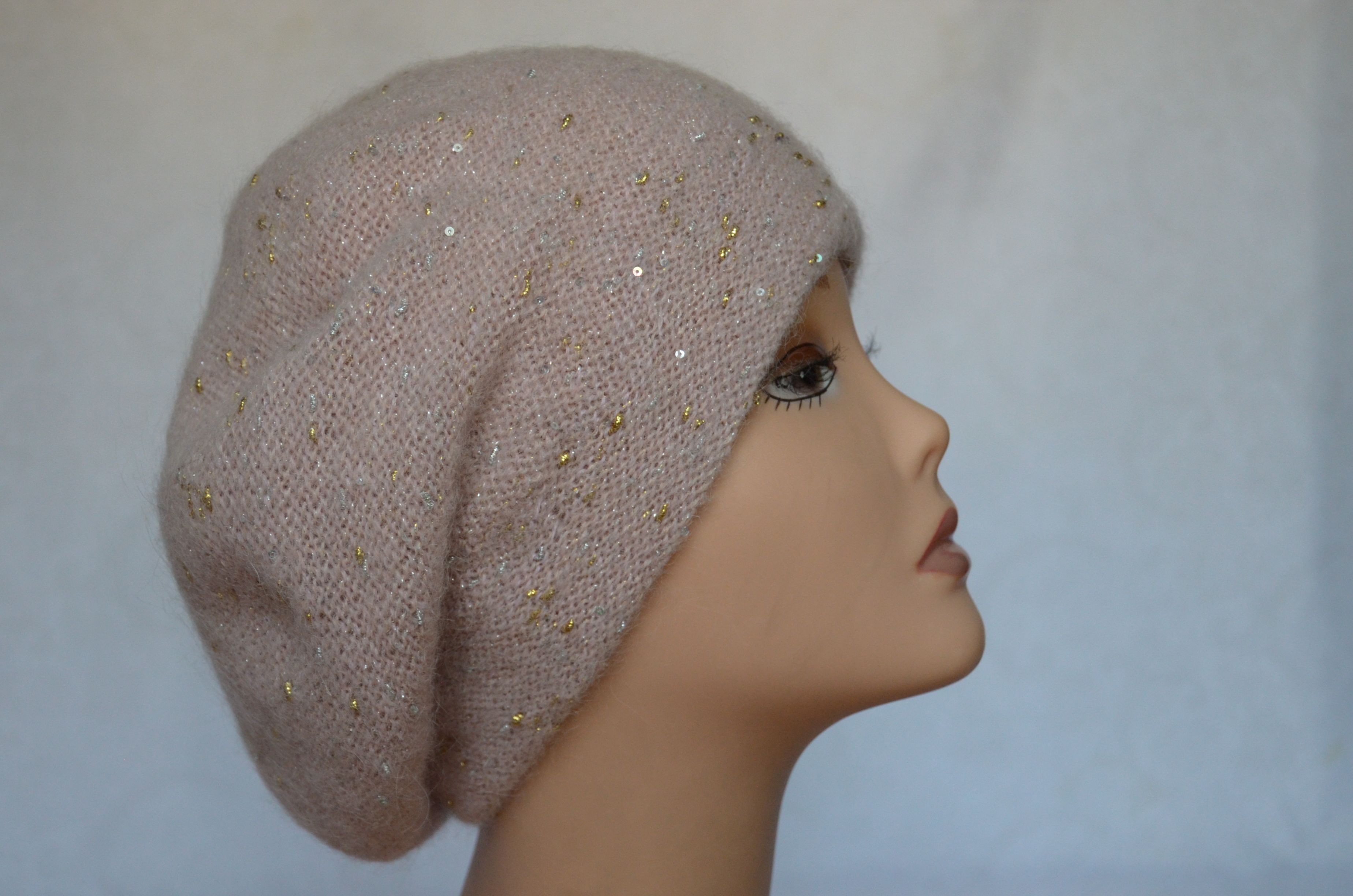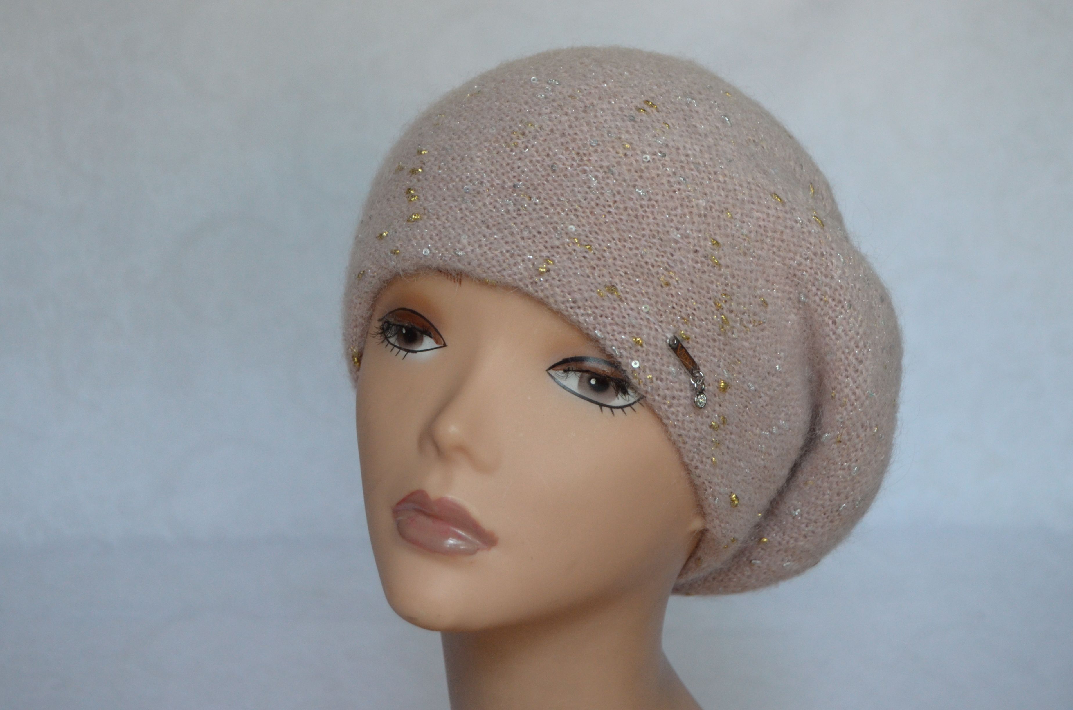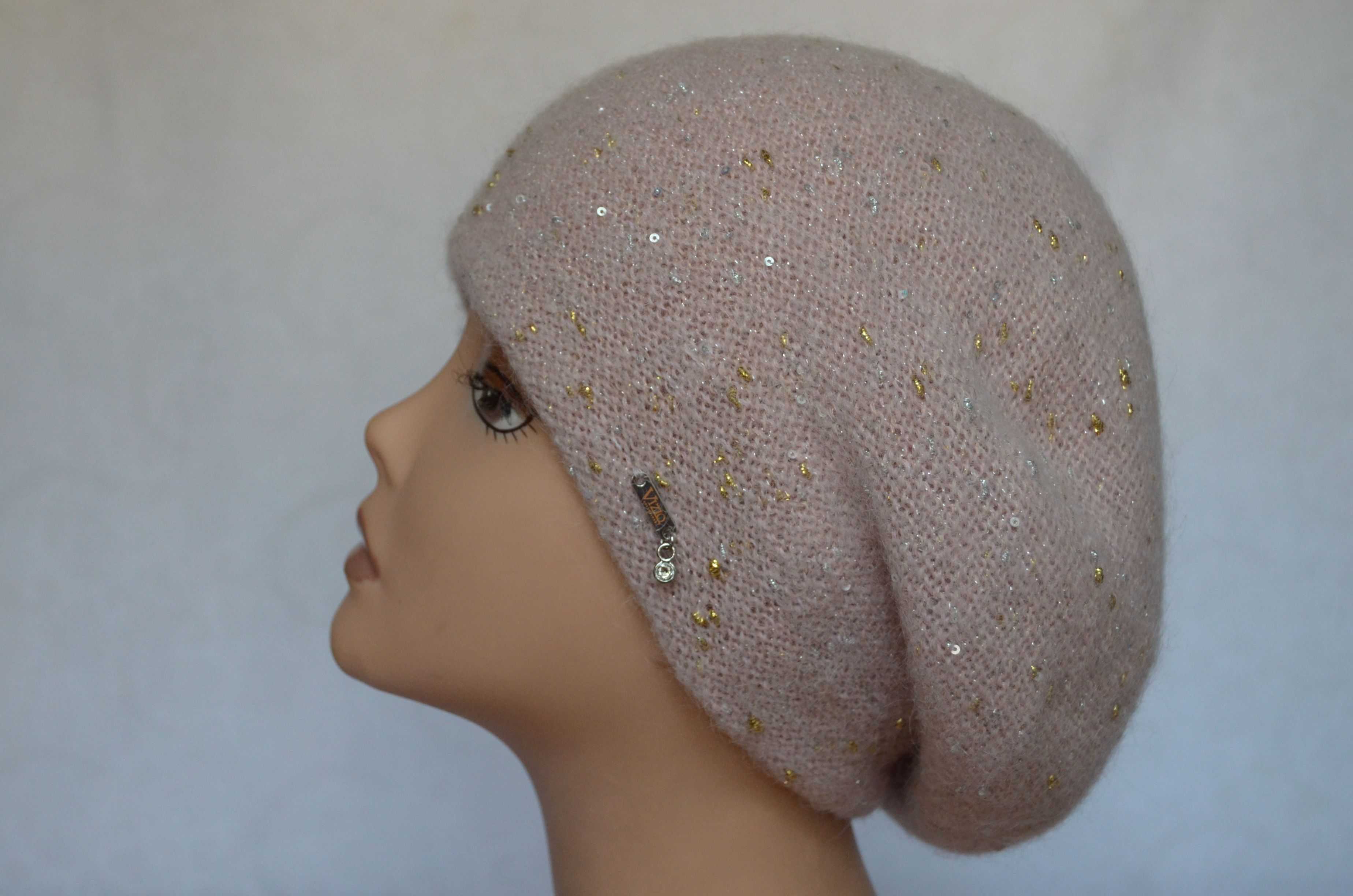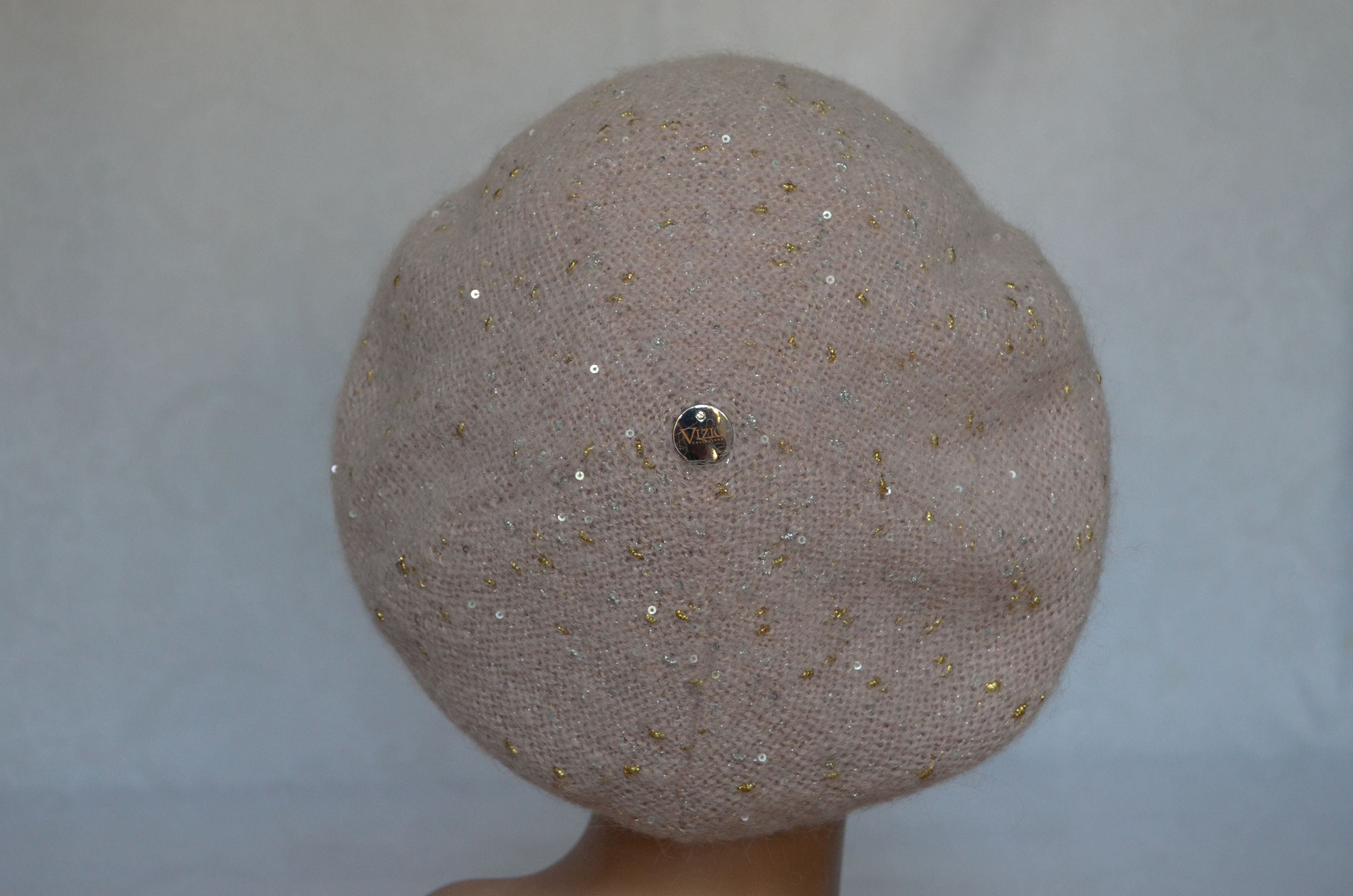 Женский персиковый берет вязаный с мелкими пайетками Vizio Италия 6705 купить в интернет магазине итальянских головных уборов для женщин с бесплатной доставкой по Москве и России