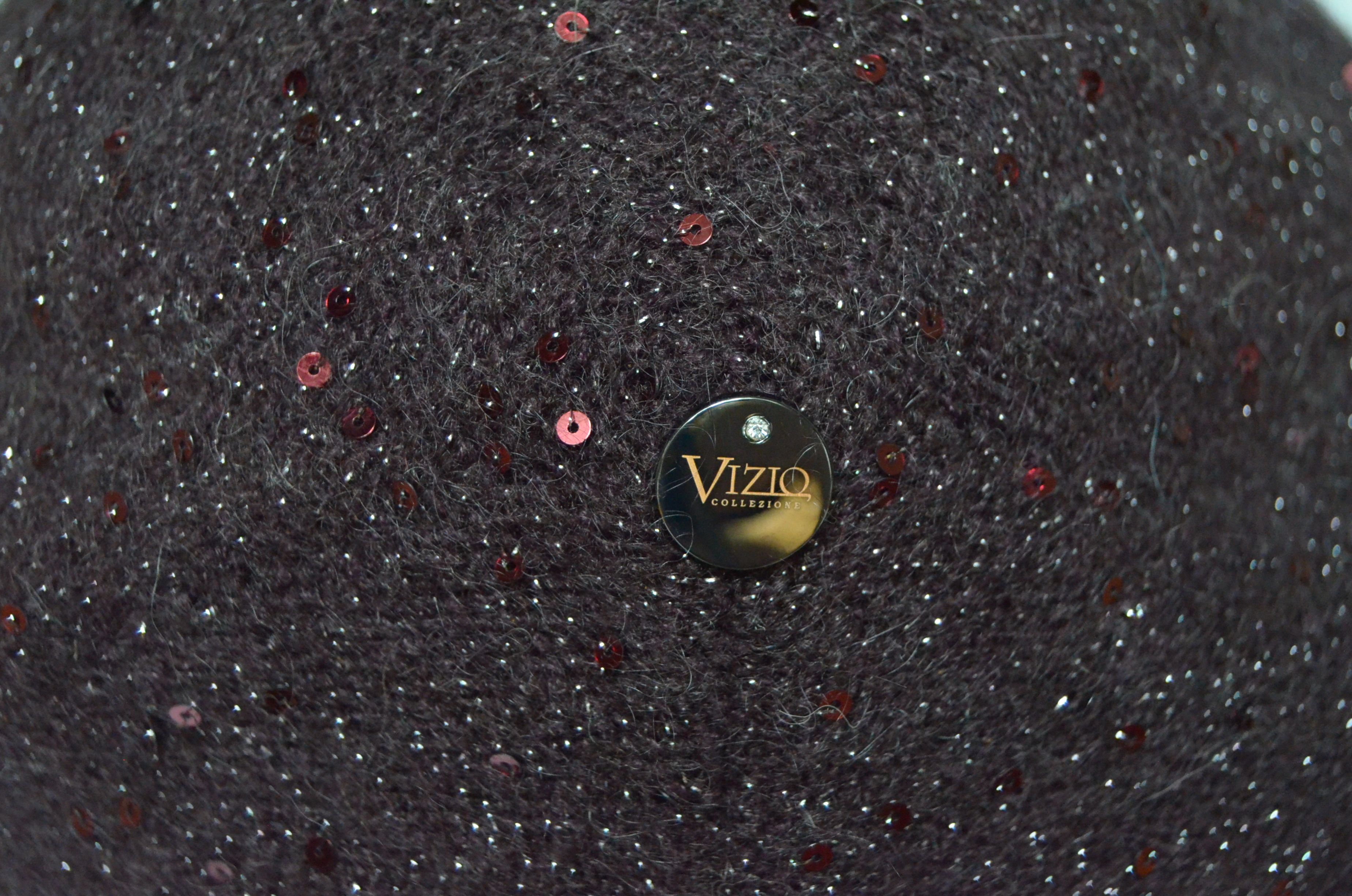 Сливовый винный берет для женщин вязаный Vizio Италия 6943 новая коллекция классических беретов и шапок с пайетками Визио