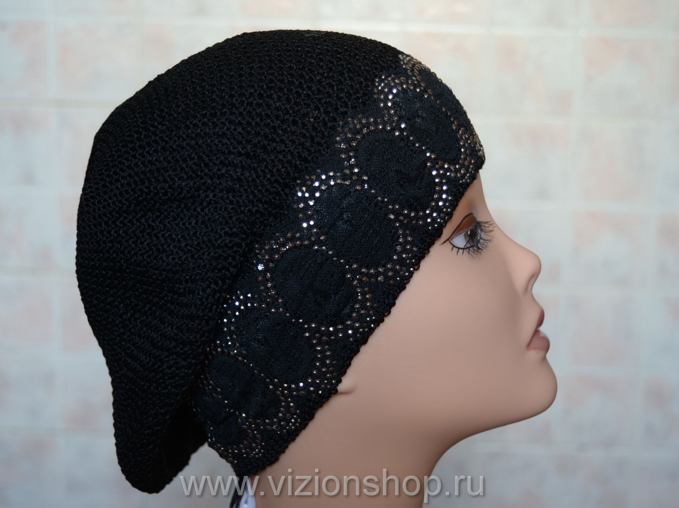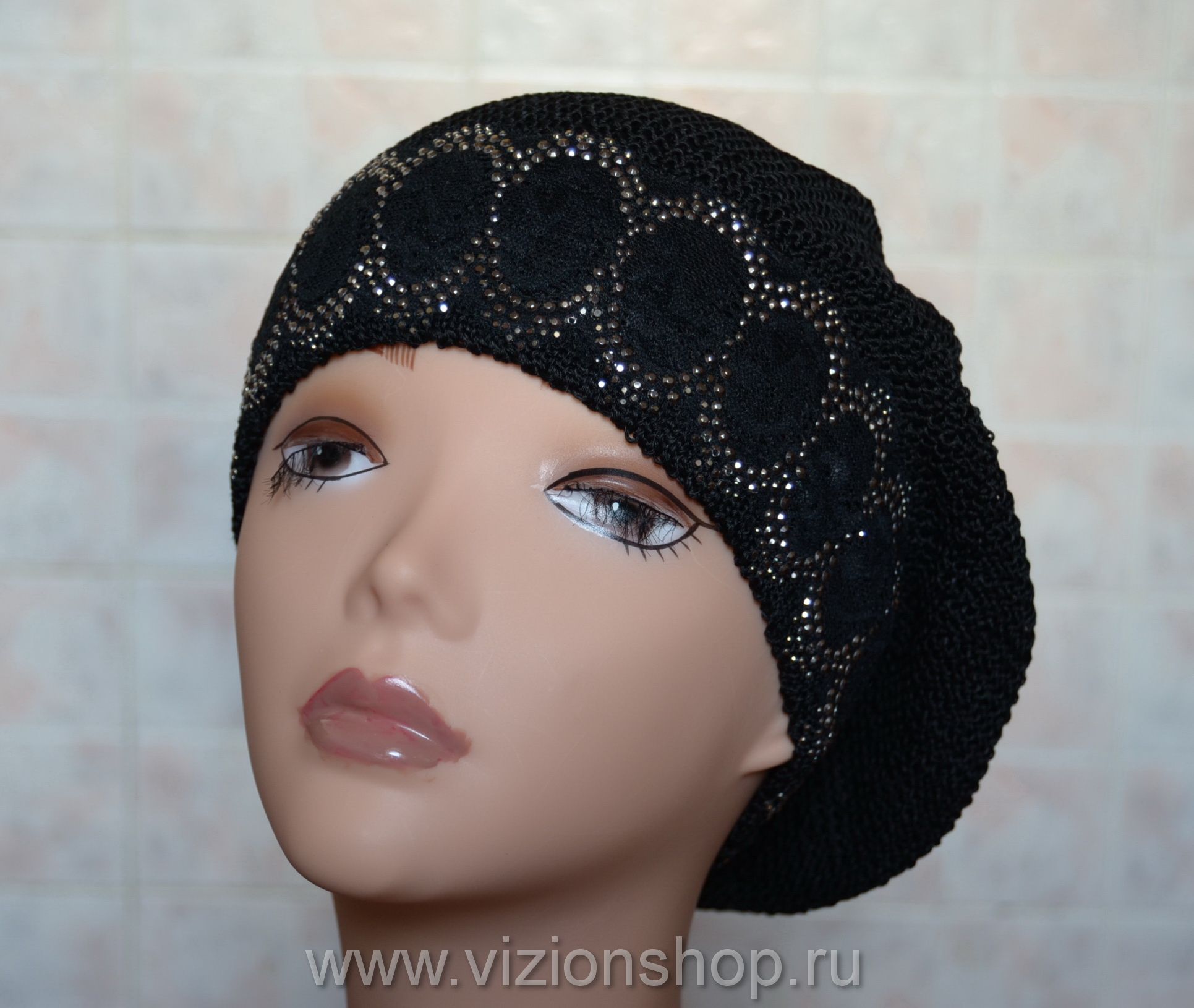 Берет черный с кружевом Vizio 4813 коллекция головных уборов с кружевом Vizio италия