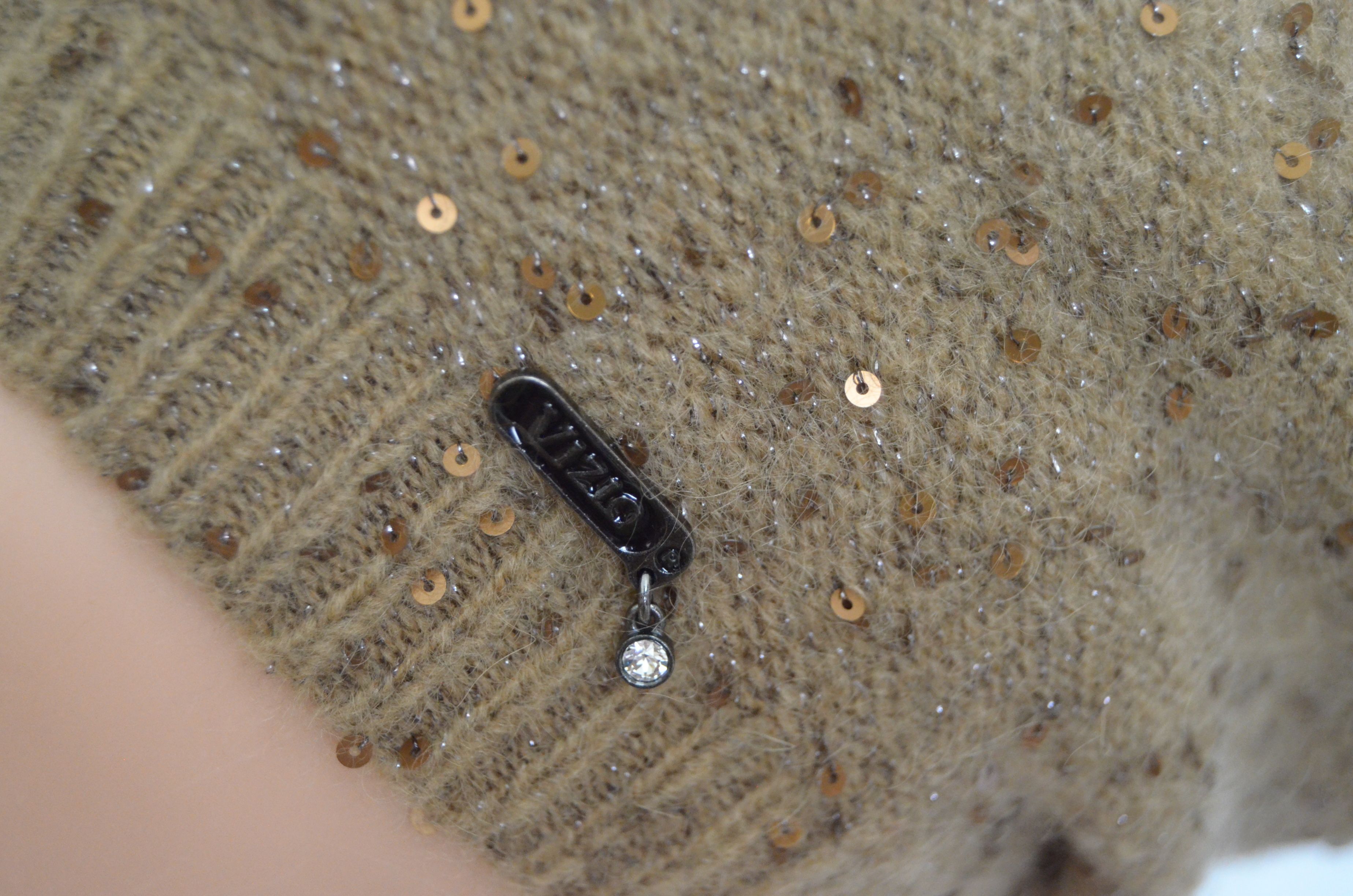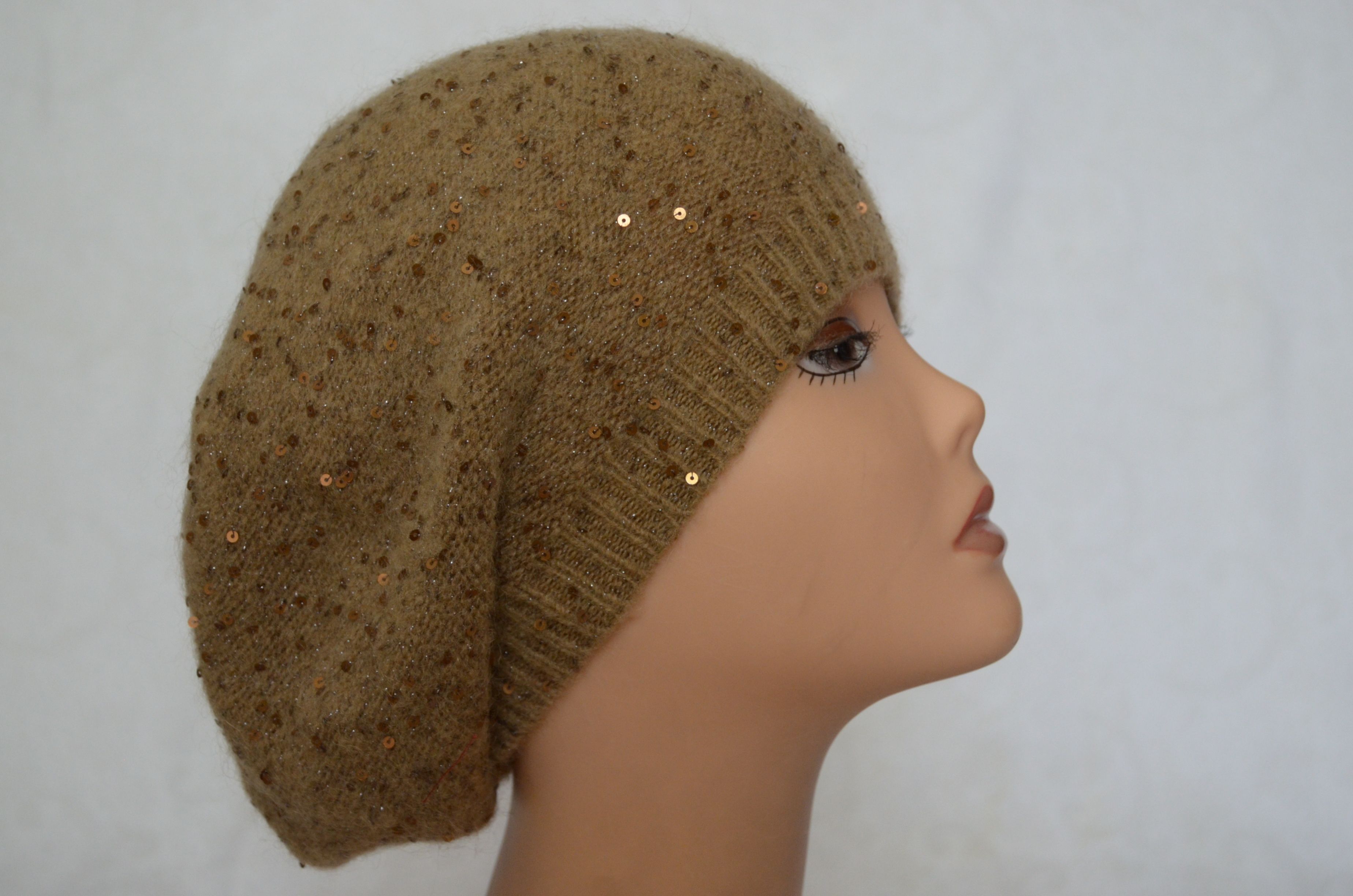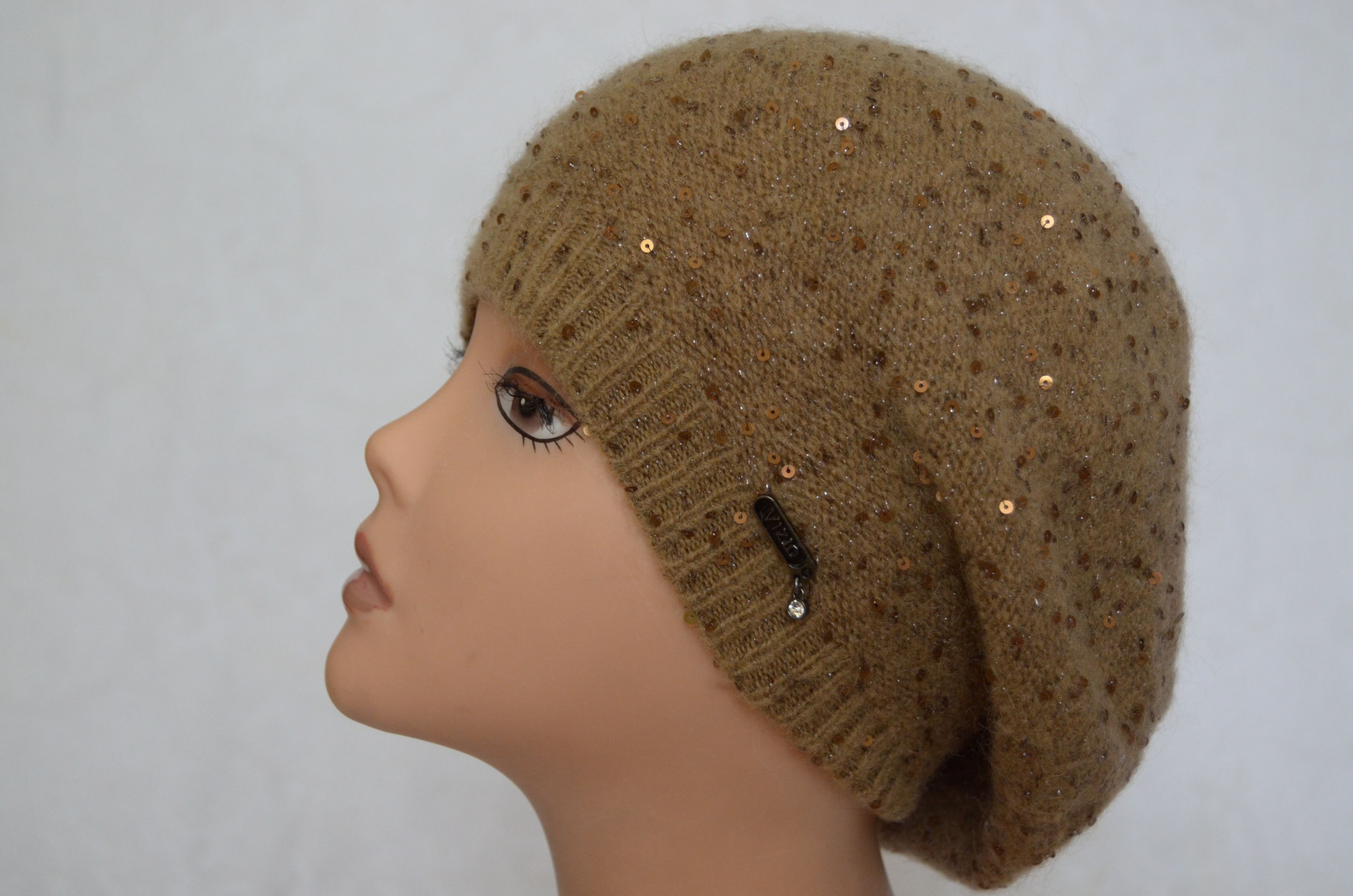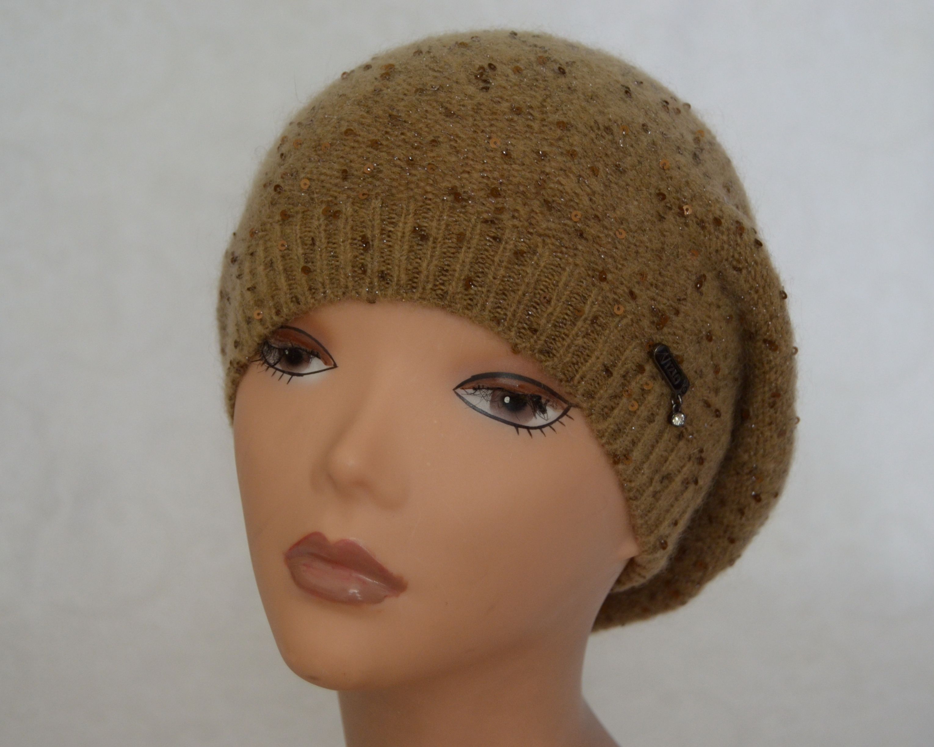 Вязаный берет с пайетками однослойный Vizio Италия 5306 горчичный купить в интернет магазине итальянских шапок и беретов Визио