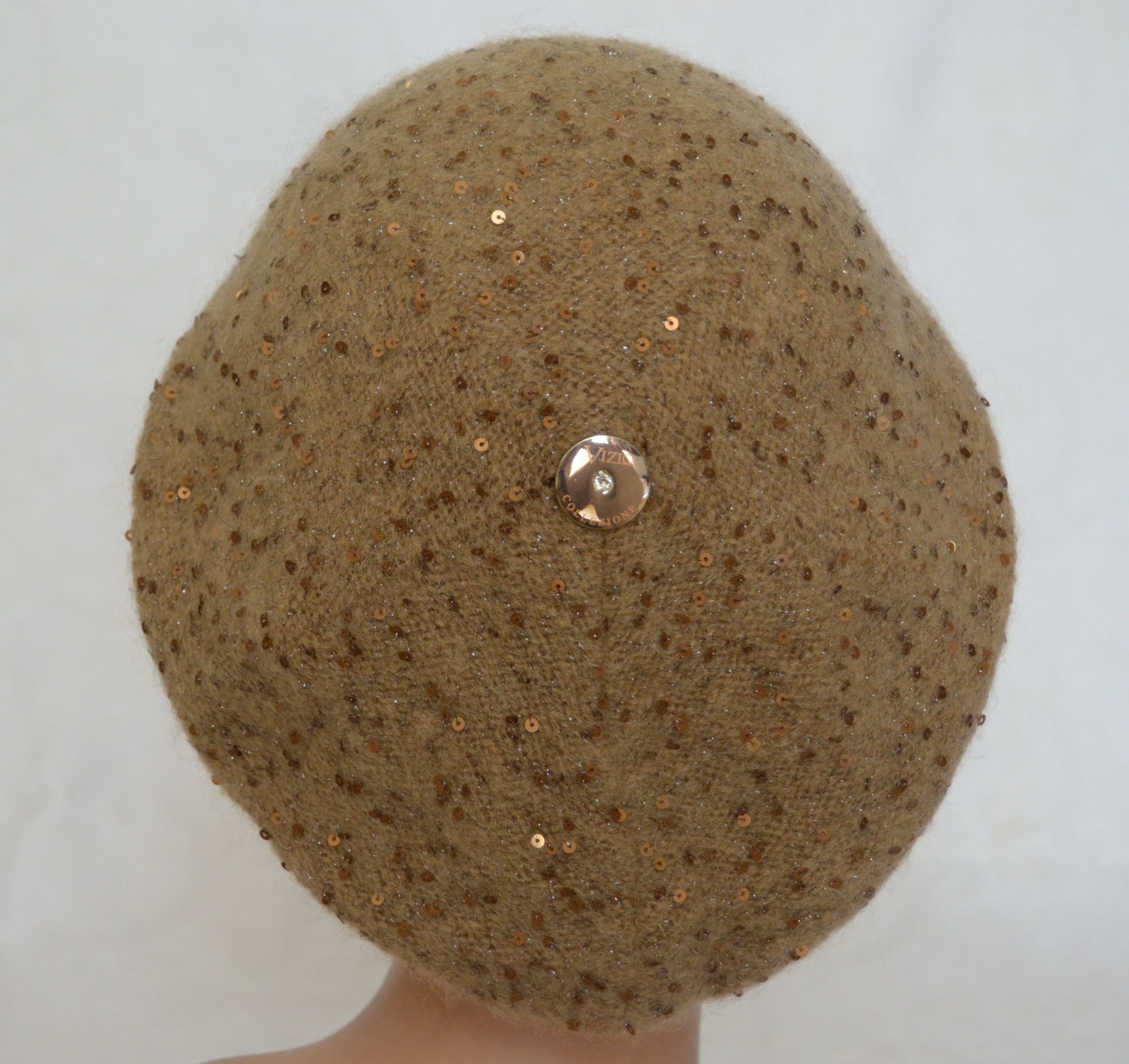 Женский берет тонкий с пайетками итальянского производителя Vizio 5306 горчичного цвета коллекция головных уборов Визио осень - зима - весна в интернет магазине вязаных беретов и шапок Италии Визио