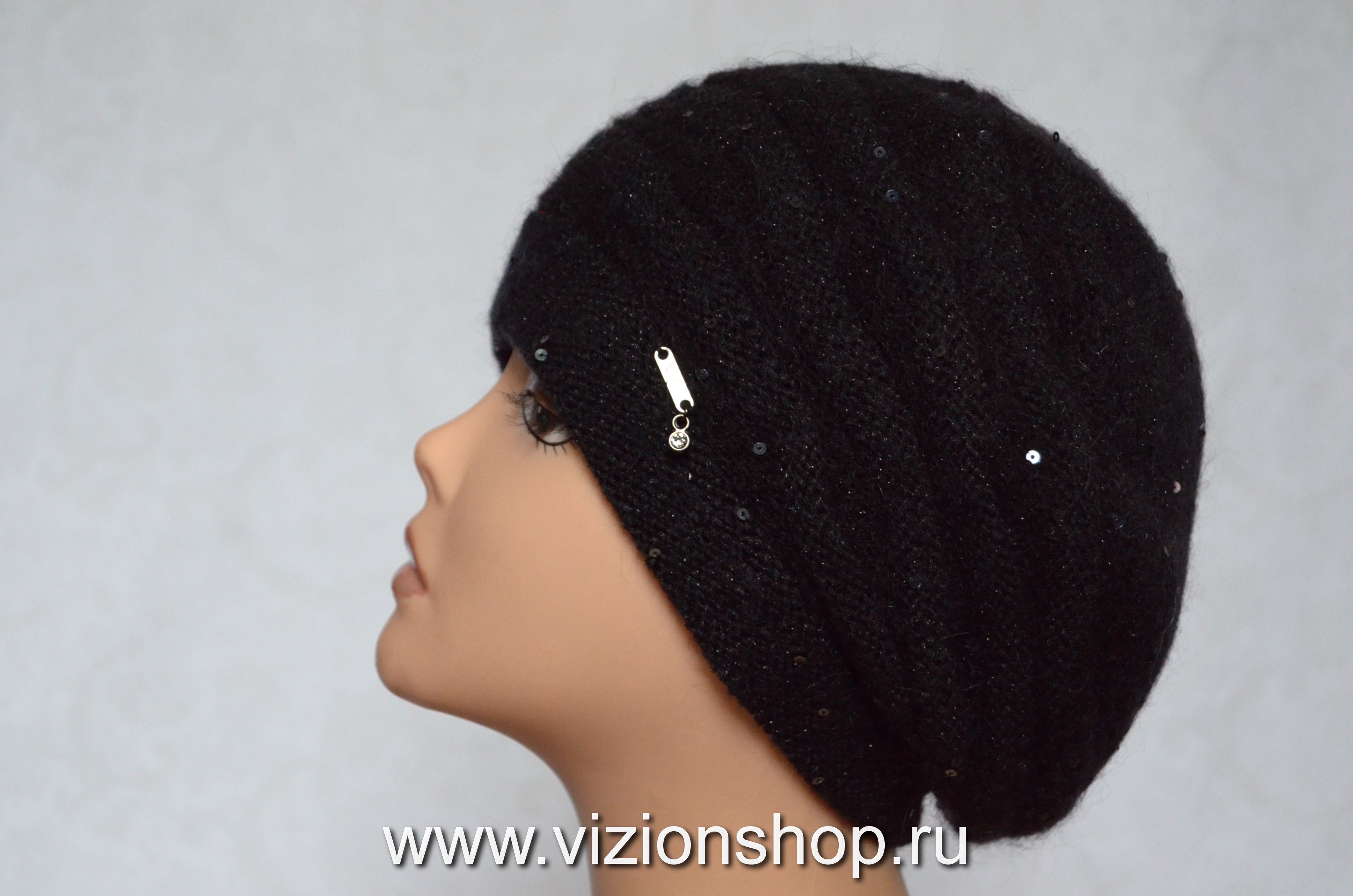 Головной убор с пайетками вязаный для женщин Визио Vizio 6447 коллекция итальянских вязаных женских беретов и шапок с пайетками осень - зима 2019 - 2020 купить в интернет магазине женских головных уборов Москва и Россия