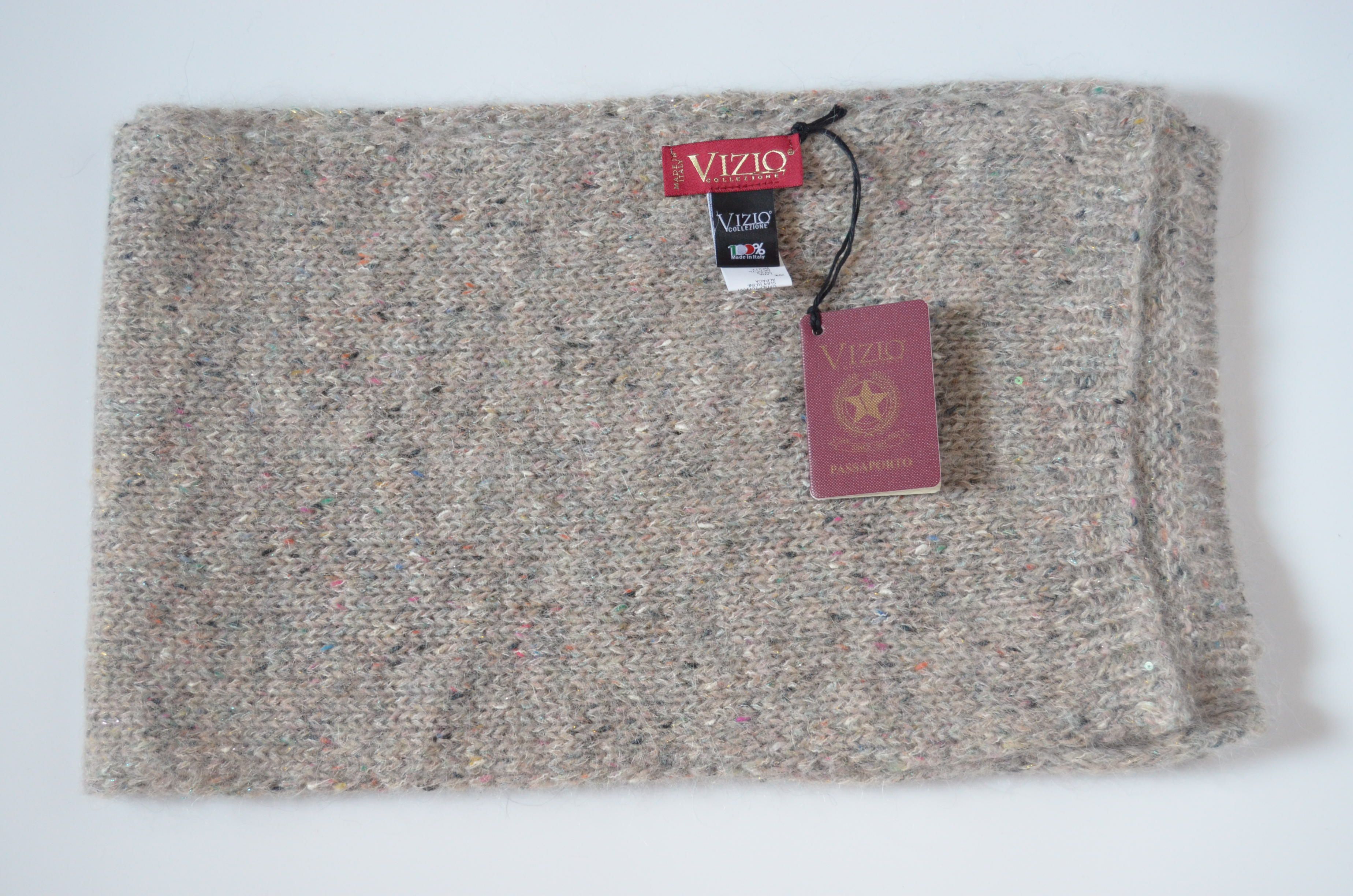 Приобрести бежевый меланжевый вязаный шарф Vizio с пайетками Вы можете в интернет магазине головных уборов и шарфов Италии Визио с бесплатной доставкой по Москве и России