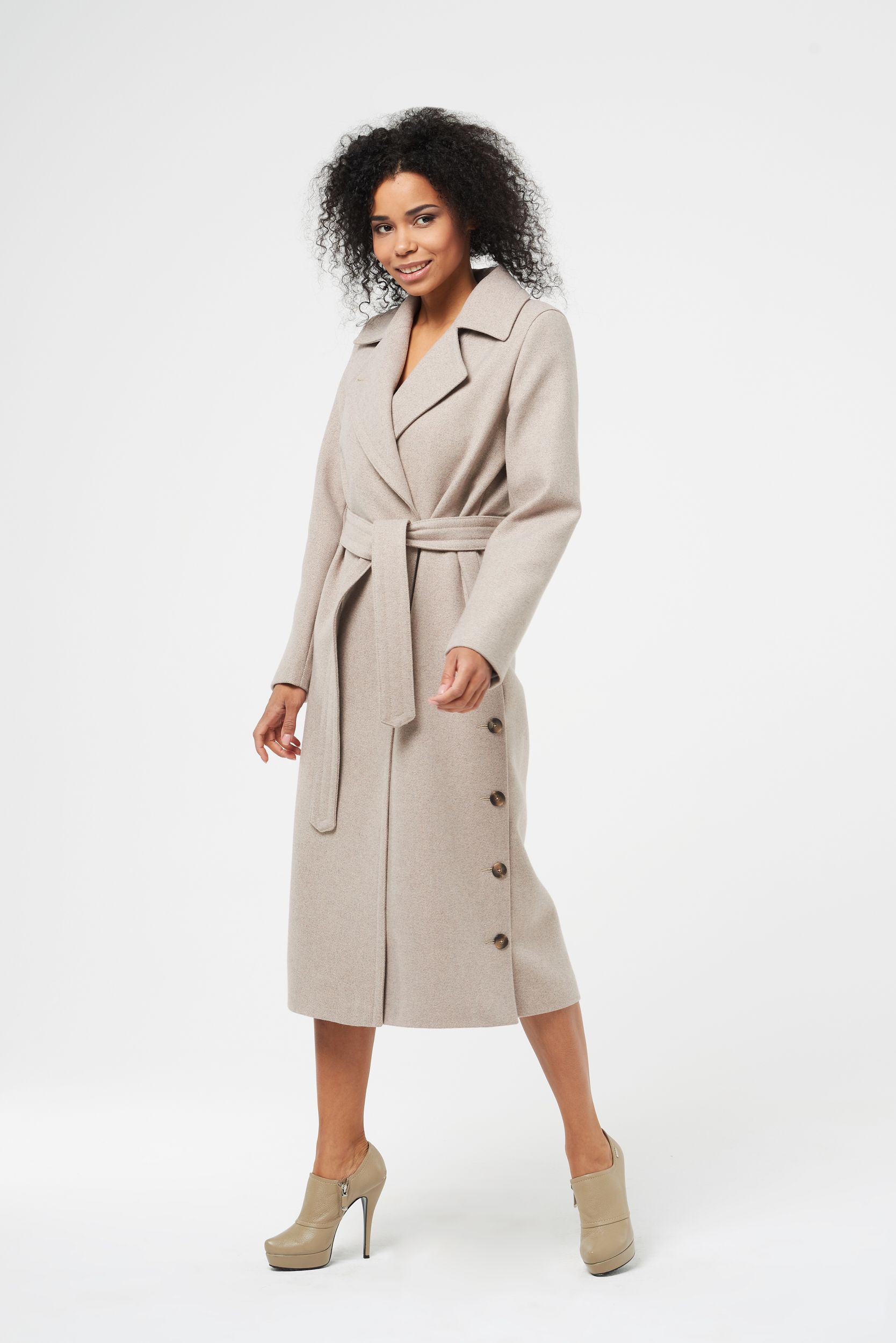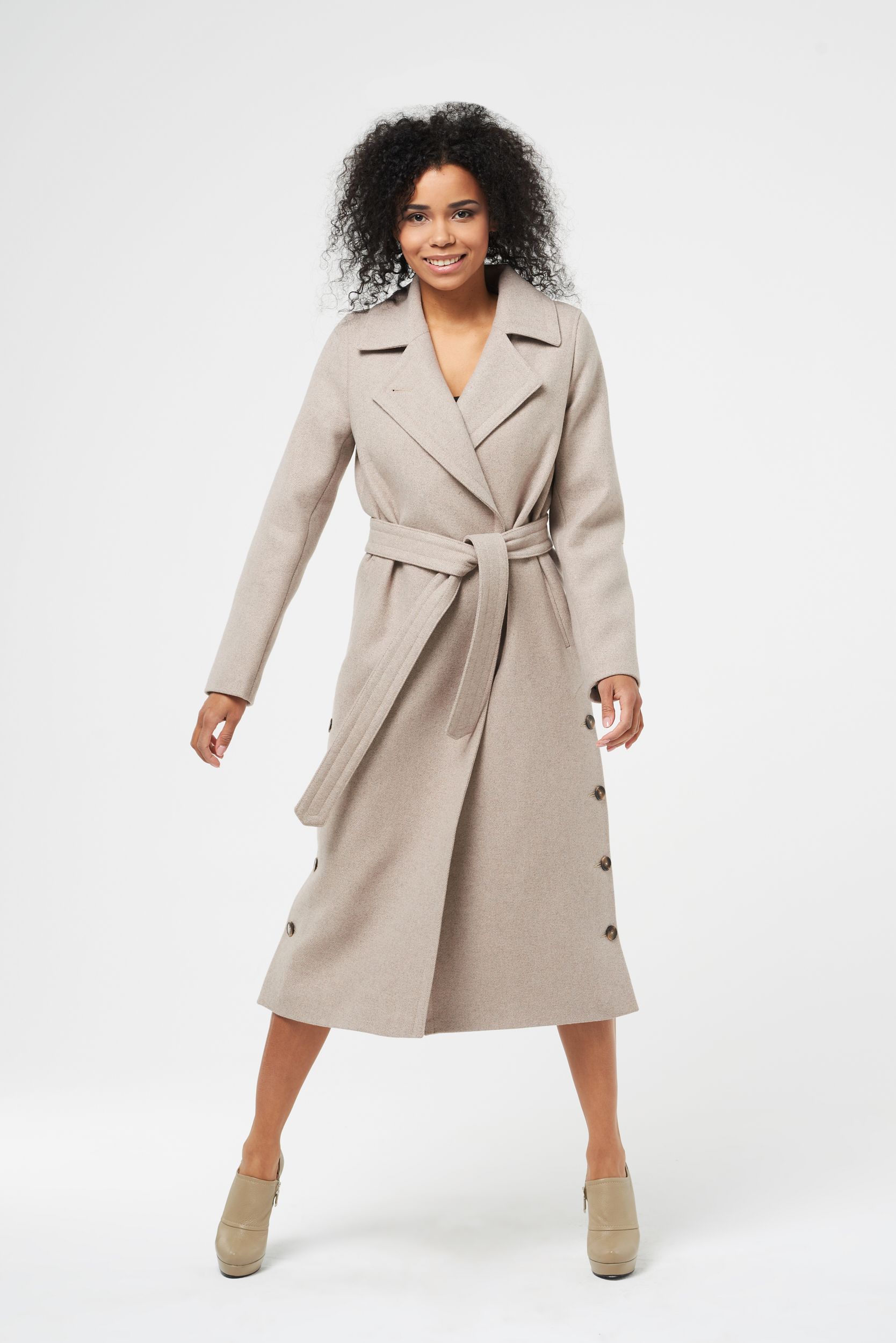 Женское шерстяное пальто с боковыми шлицами на пуговицах Флирт 587 купить в магназине пальто в Москве