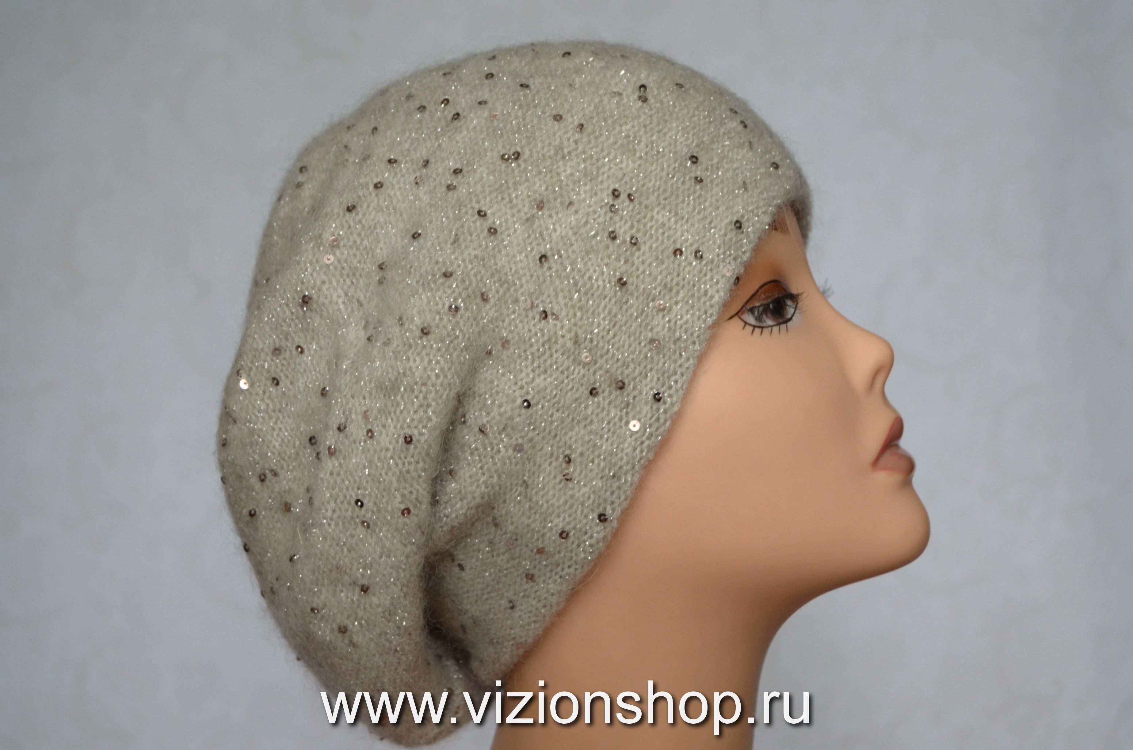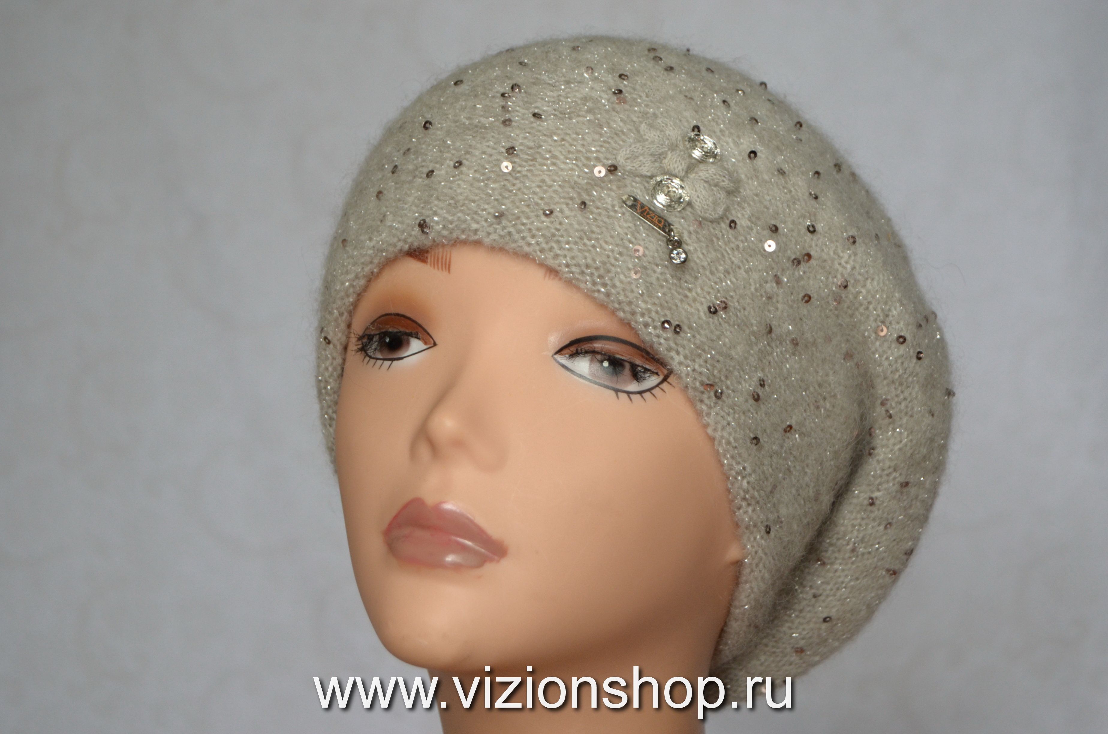 Берет зимний вязаный женский Италия Визио Vizio 6457 бежевый новая коллекция вязаных беретов осень - зима 2019 - 2020 купить в интернет магазине женских головных уборов