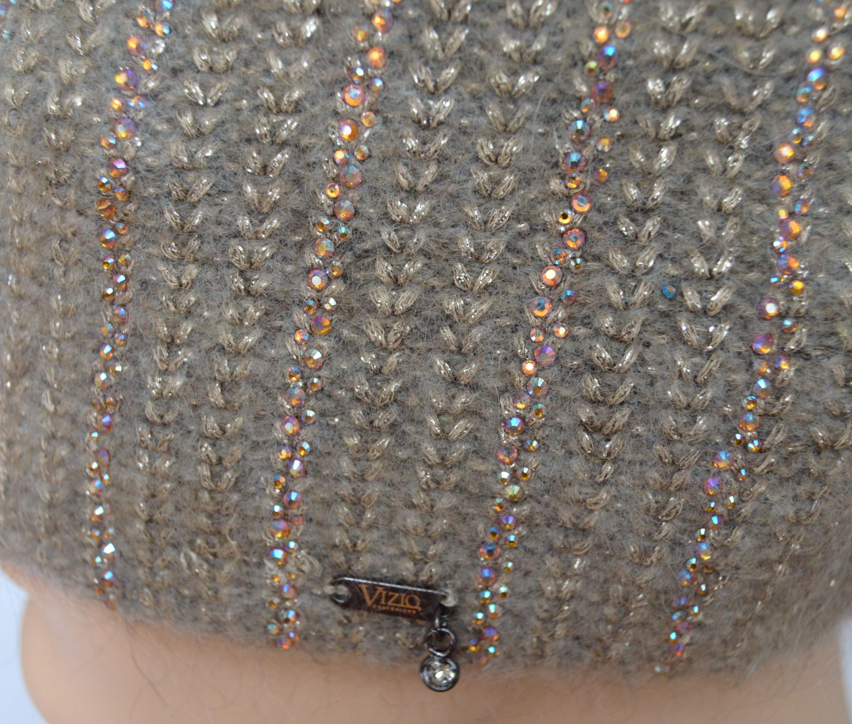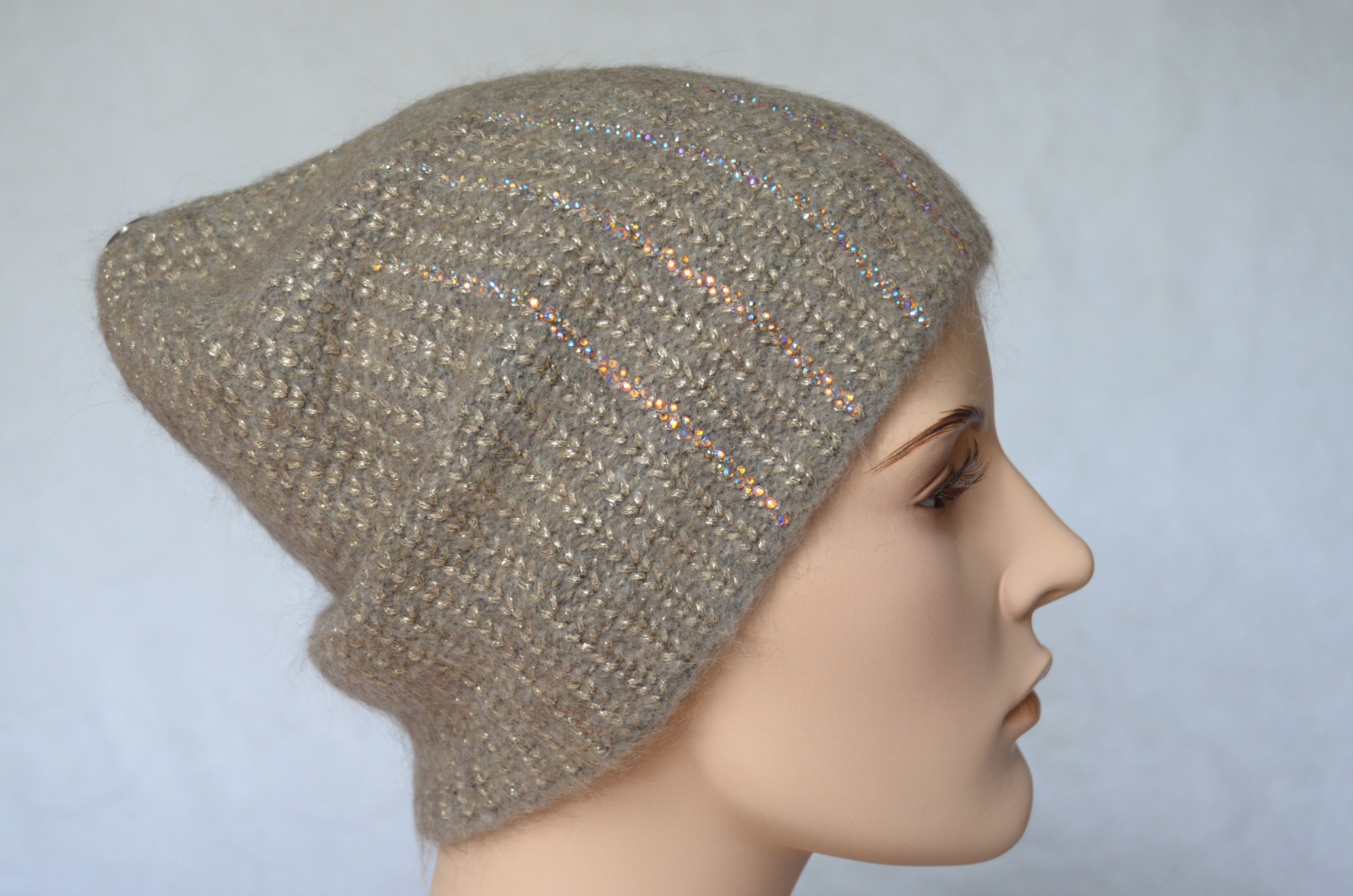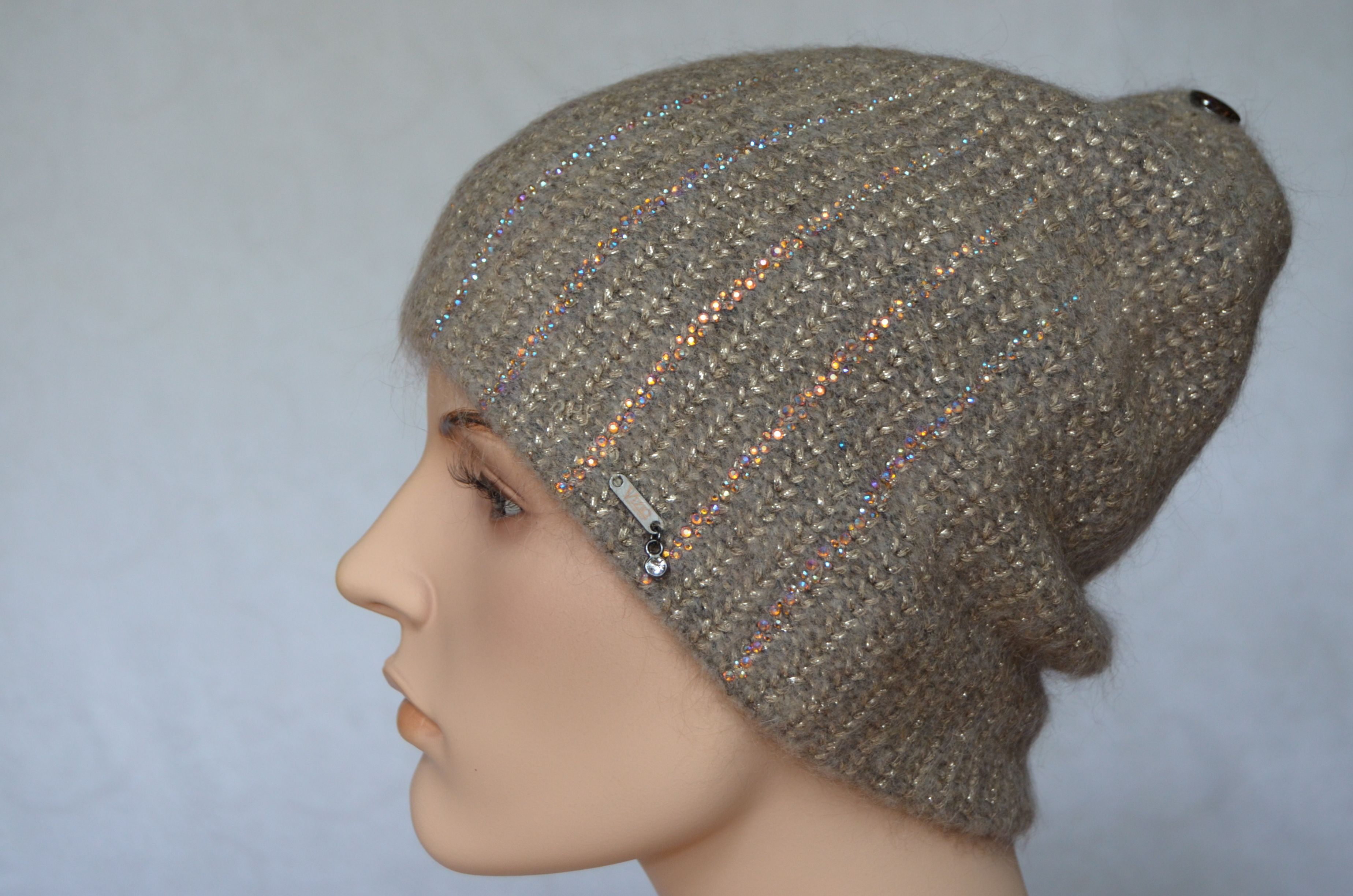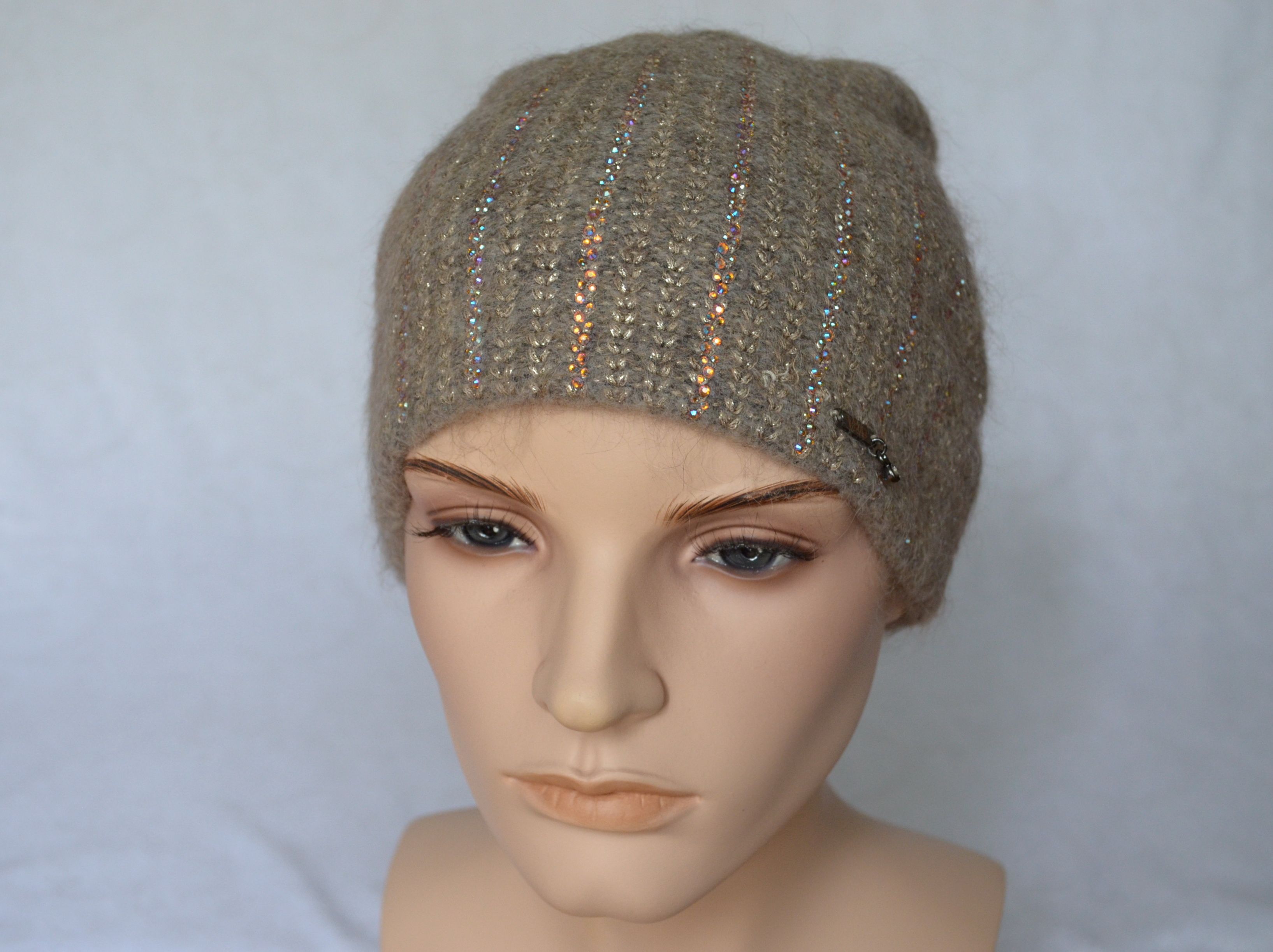 Приобрести зимнюю вязаную шапку с украшениями Визио Италия осень - зима 2021 - 2022 Вы можете в розничном интернет магазине итальянских женских головных уборов Vizio Collezione с доставкой по Москве и России