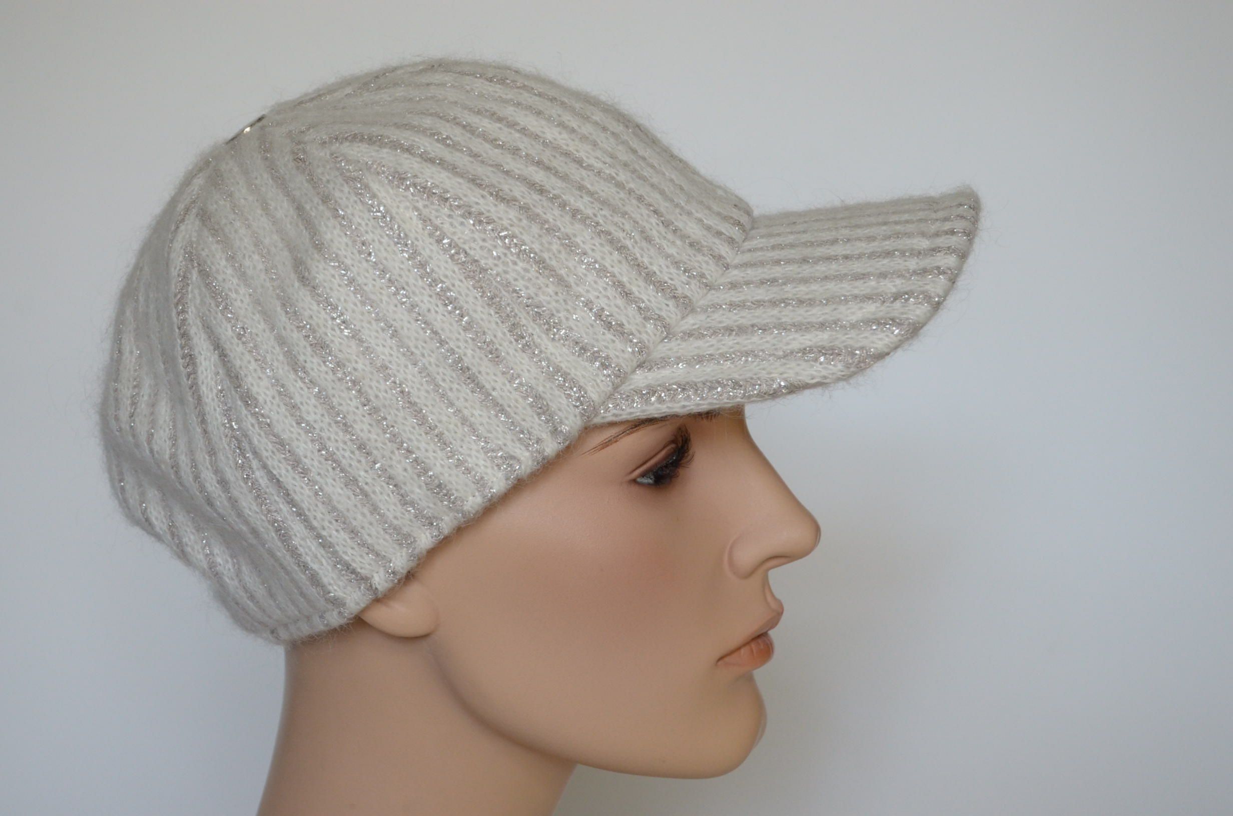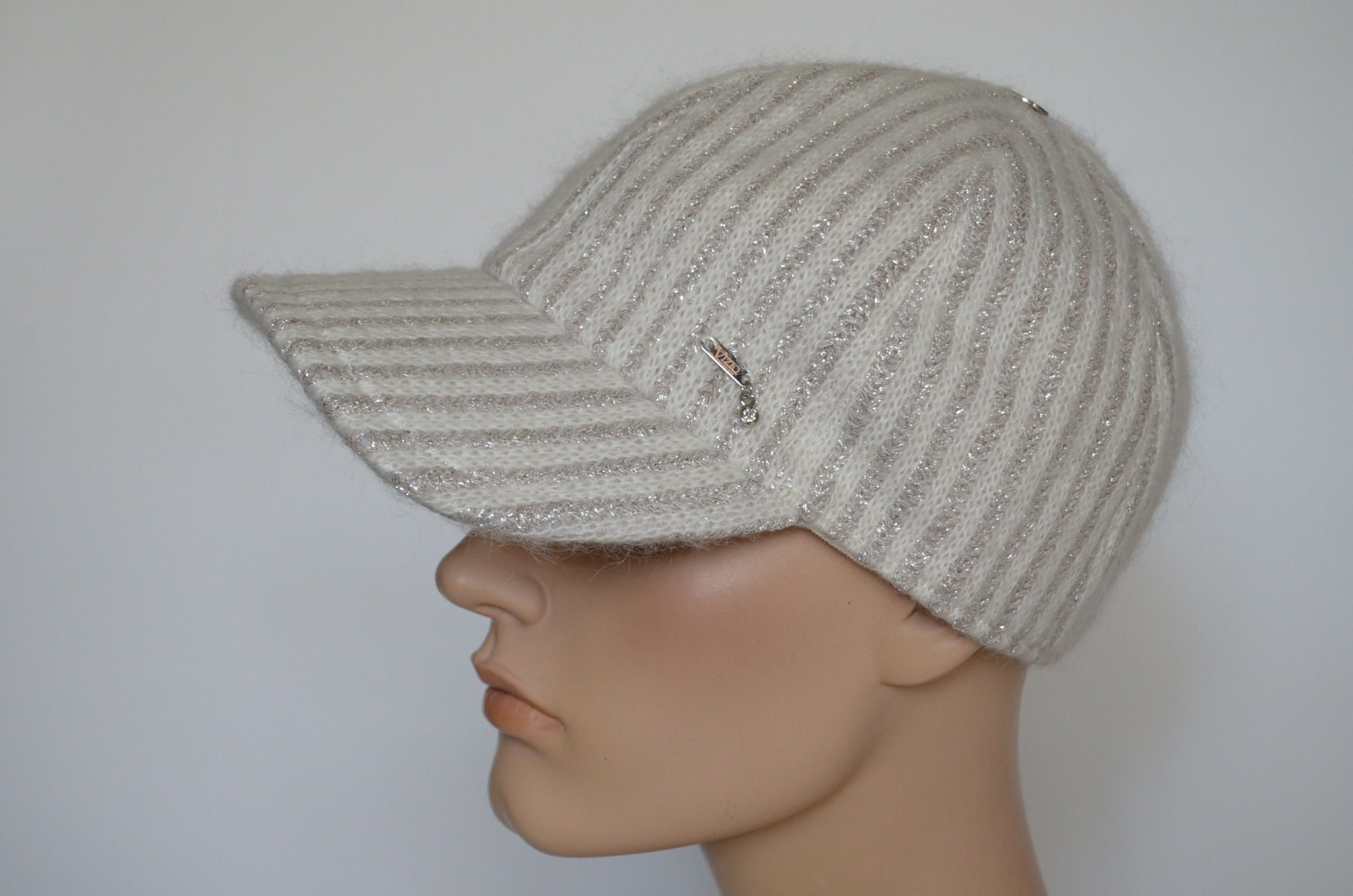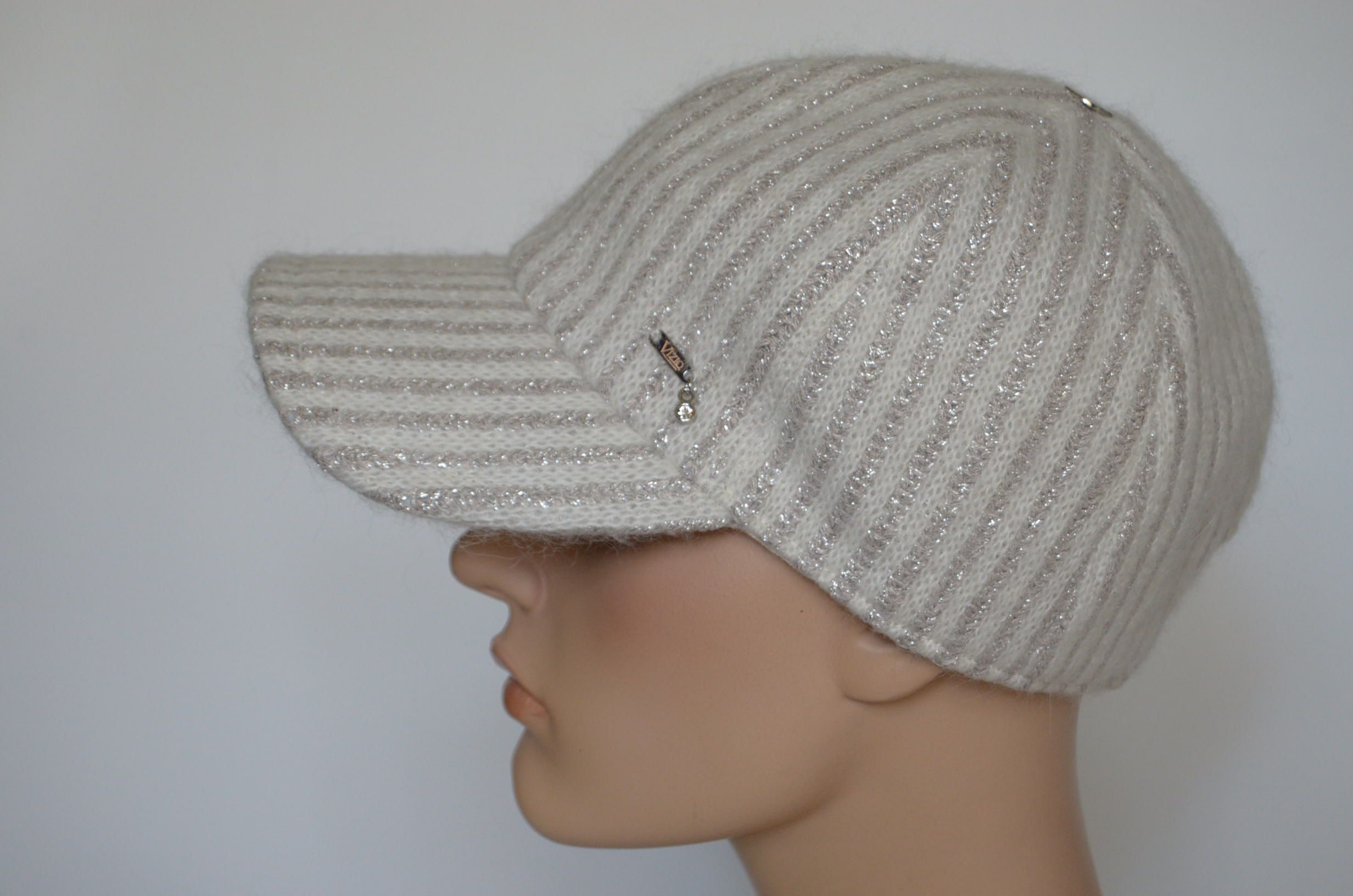 Купить зимнюю белую вязаную бейсболку женскую 2023 - 2024 Италия Визио в интернет магазине итальянских женских бейсболок Vizio Collezione